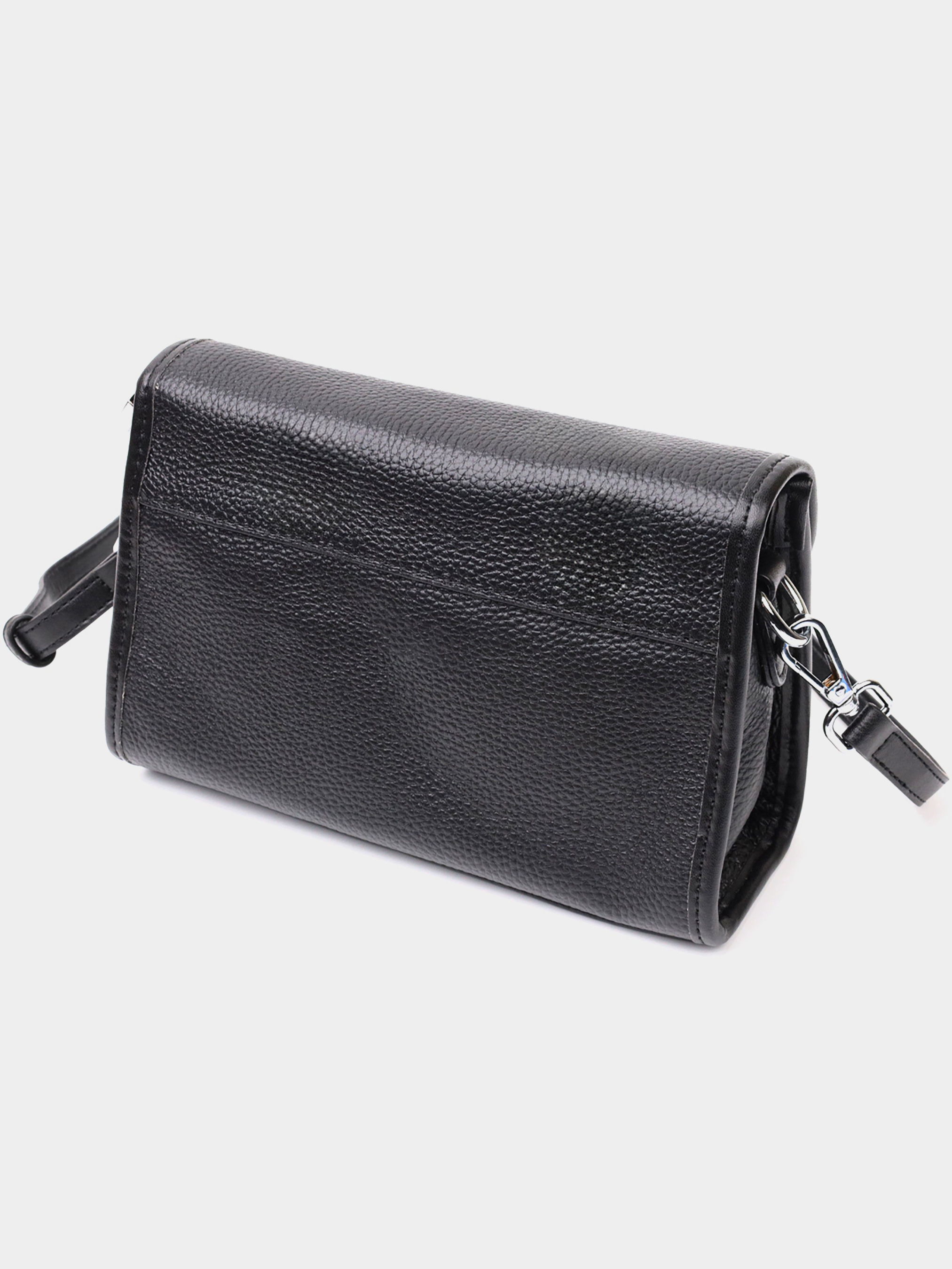 Колір: чорний; Матеріал: натуральна шкіра; Розмір (ШхВхГ, см): 20,5х14х8,5 см; Країна виробник: Китай. Бренд: Vintage. Особливості: - закривається на блискавку та на клапан на магніті; - усередині: основне відділення, потайна кишеня на блискавці; - шкіряний ремінь, що знімається регульований. Компактна сумочка в чорному кольорі, яка закривається на блискавку і стильний напівкруглий клапан на магніті. Виріб пошитий з якісної натуральної м'якої шкіри, яка довго носиться і не втрачає свого первісного вигляду. Аксесуар складається з основного відділення та потайної кишені на блискавці. Носити сумку можна під рукою, на плечі і через плече, для цього є шкіряний ремінь, що знімається регульований. У виробі використано якісну фурнітуру срібного кольору. Універсальний варіант сумки, який підійде для вечора, а також відмінно підійде на кожен день.