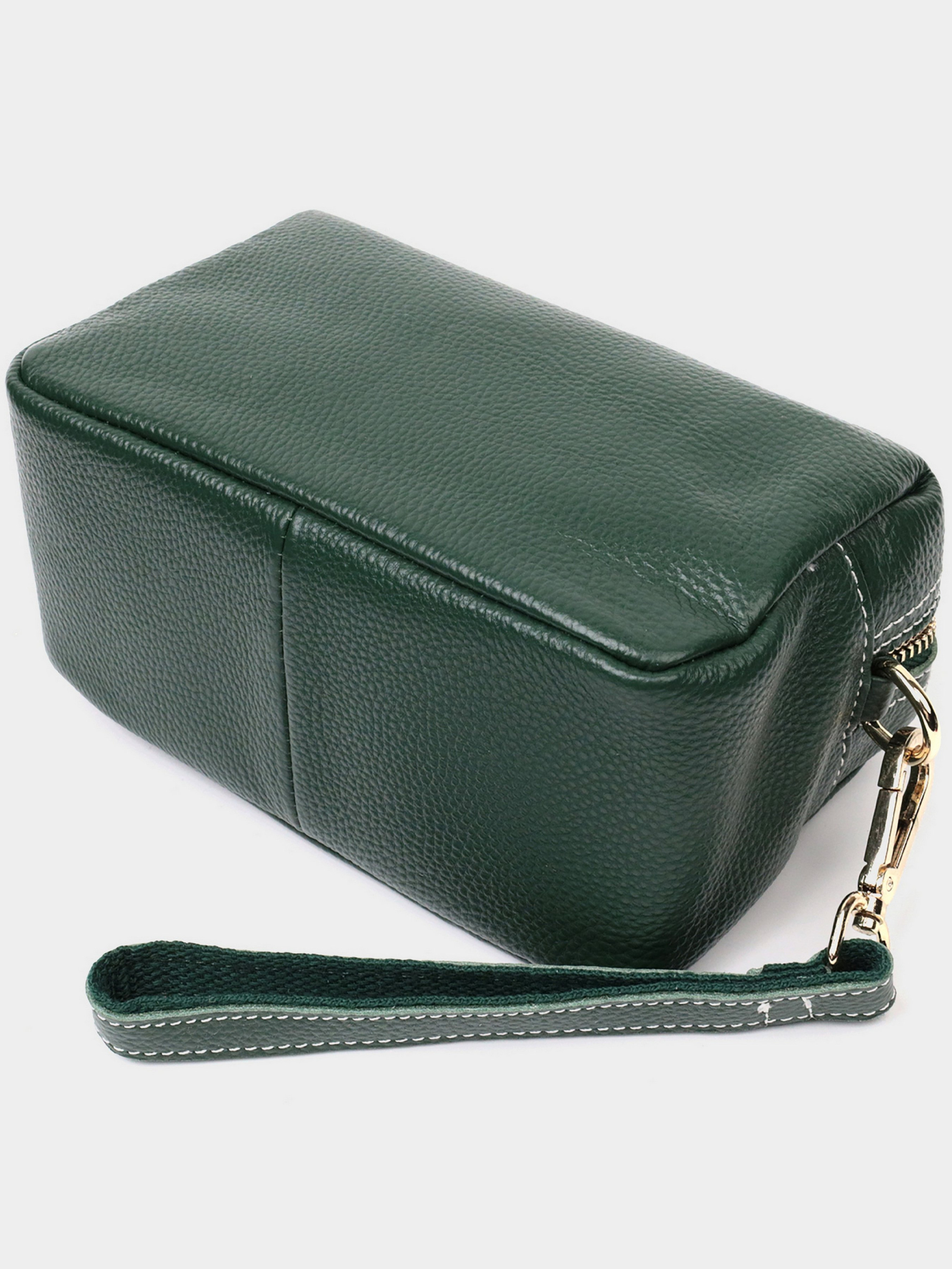 Колір: зелений; Матеріал: натуральна шкіра; Розмір (ШхВхГ, см): 19х11х9 см; Країна виробник: Китай. Бренд: Vintage. Особливості: - закривається на блискавку; - одне основне відділення; - знімний шкіряний кистьовий ремінь; - знімний шкіряний плечовий ремінь. Модна сумка-клатч із двома шкіряними ремінцями з якісної натуральної шкіри, яка довго носиться і не втрачає свого первісного вигляду. Аксесуар складається із одного основного відділення. Носити сумку можна в руці, на зап'ясті, на плечі і через плече, для цього є шкіряний знімний плечовий ремінь, а також знімний шкіряний кистьовий ремінь. У виробі використано якісну фурнітуру кольору жовтого золота. Універсальний варіант сумки як на вечір так і як сумочка на кожен день.