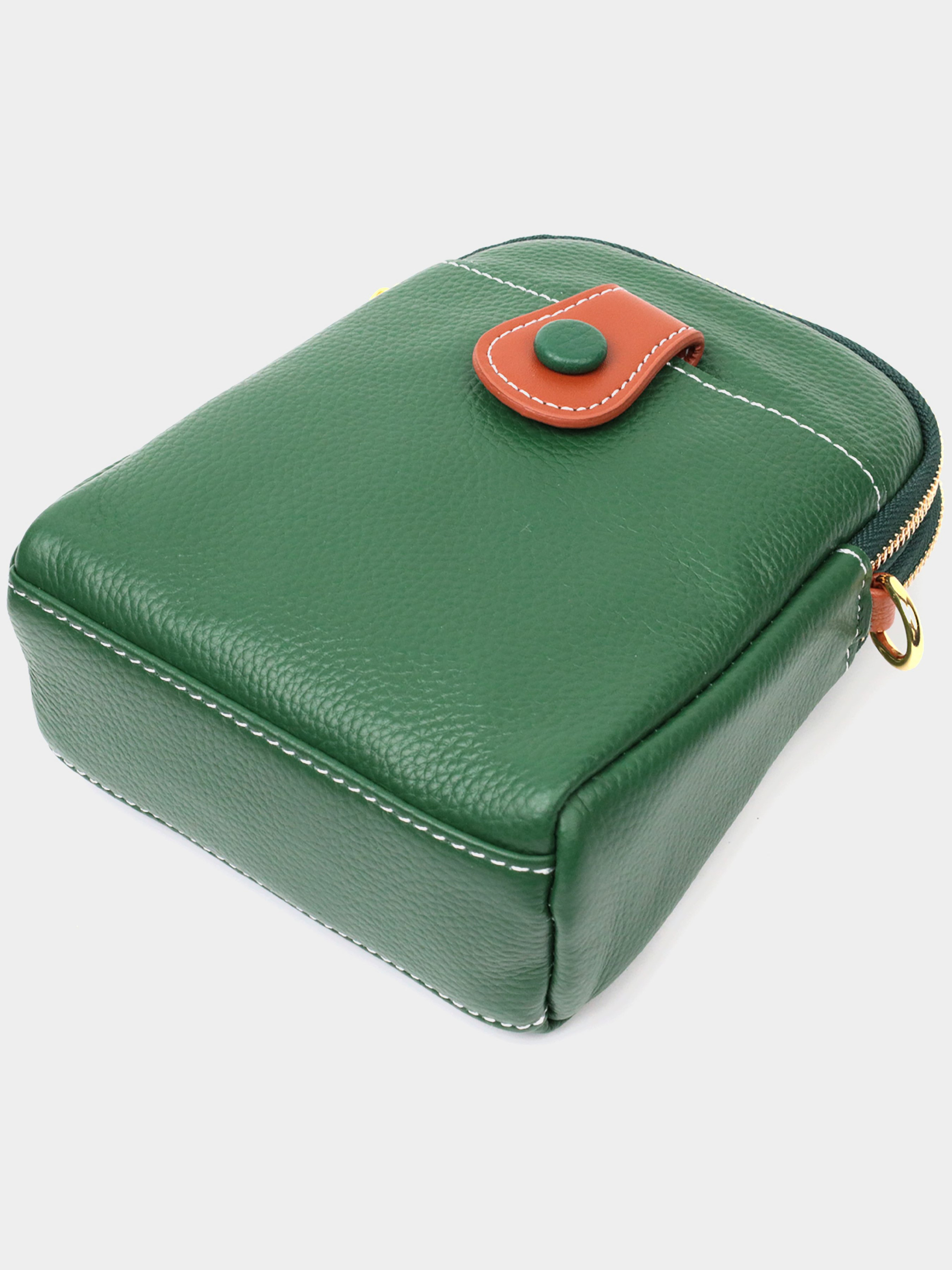 Колір зелений; Матеріал: натуральна шкіра; Розмір (ШхВхГ, см): 14,5х18х5,5 см; Країна виробник: Китай. Бренд: Vintage. Особливості: - закривається на блискавку; - два основні відділення на блискавках, усередині яких: потайна кишеня на блискавці та кишеня відкритого типу; - накладна кишеня, що закривається хлястиком на магніт, на лицьовій стороні; - знімний шкіряний ремінь. Сумка трапецієподібної форми для стильних та незалежних жінок з натуральної шкіри з високим показником якості та зносостійкості. На лицьовій стороні розташована накладна кишеня, що закривається хлястиком на магніт, хлястик і знімний плечовий ремінь коричневого кольору, що надає сумці стилю. Аксесуар складається з двох відділень, що закриваються на блискавки, всередині яких знаходиться потайна кишеня на блискавці та кишеня відкритого типу. Носити сумку можна на плечі і через плече, для цього є шкіряний ремінь, що знімається. У виробі використано якісну фурнітуру кольору жовтого золота. Універсальний варіант сумки як на вечір так і як сумочка на кожен день.