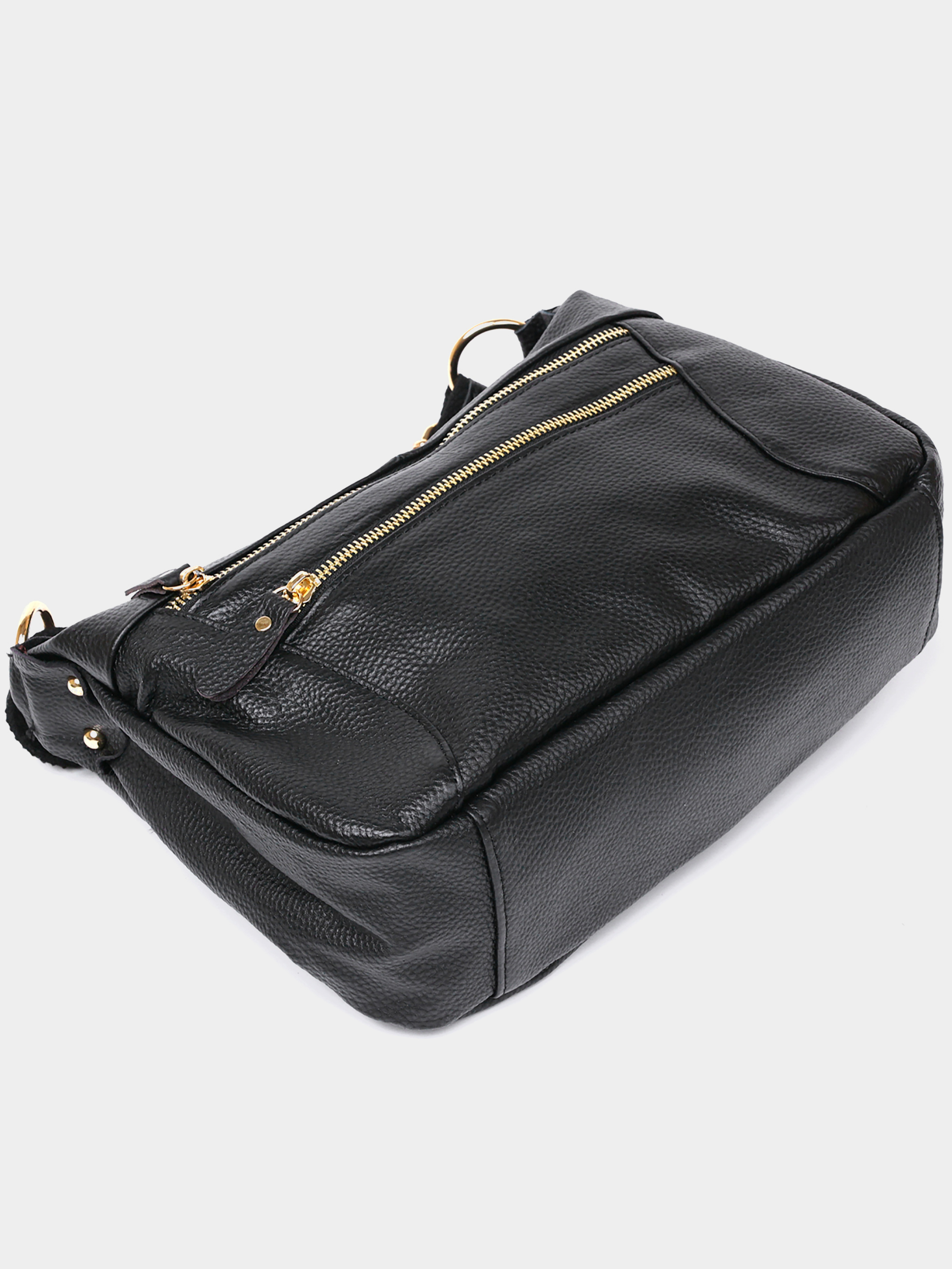 Колір чорний; Матеріал: натуральна шкіра; Розміри (ШхВхГ, см): 30х20х9 см Країна виробник: Китай. Бренд: Vintage. Опис: - 1 основне відділення на блискавці; - 2 кишені для телефону; - кишеня на блискавці; - на зовнішній стороні 2 кишені на блискавці; - на тильній стороні кишеня на блискавці; - текстильний ремінь зі шкіряною накладкою для перенесення на плечі. Практична жіноча сумка невеликого розміру із натуральної високоякісної шкіри із зернистою фактурою. Має універсальний чорний колір та фурнітуру під золото. Внутрішнє наповнення представлене у вигляді місткого відділення на блискавці, кишень для телефону та інших дрібних речей. На зовнішній стороні також є місткі кишені.