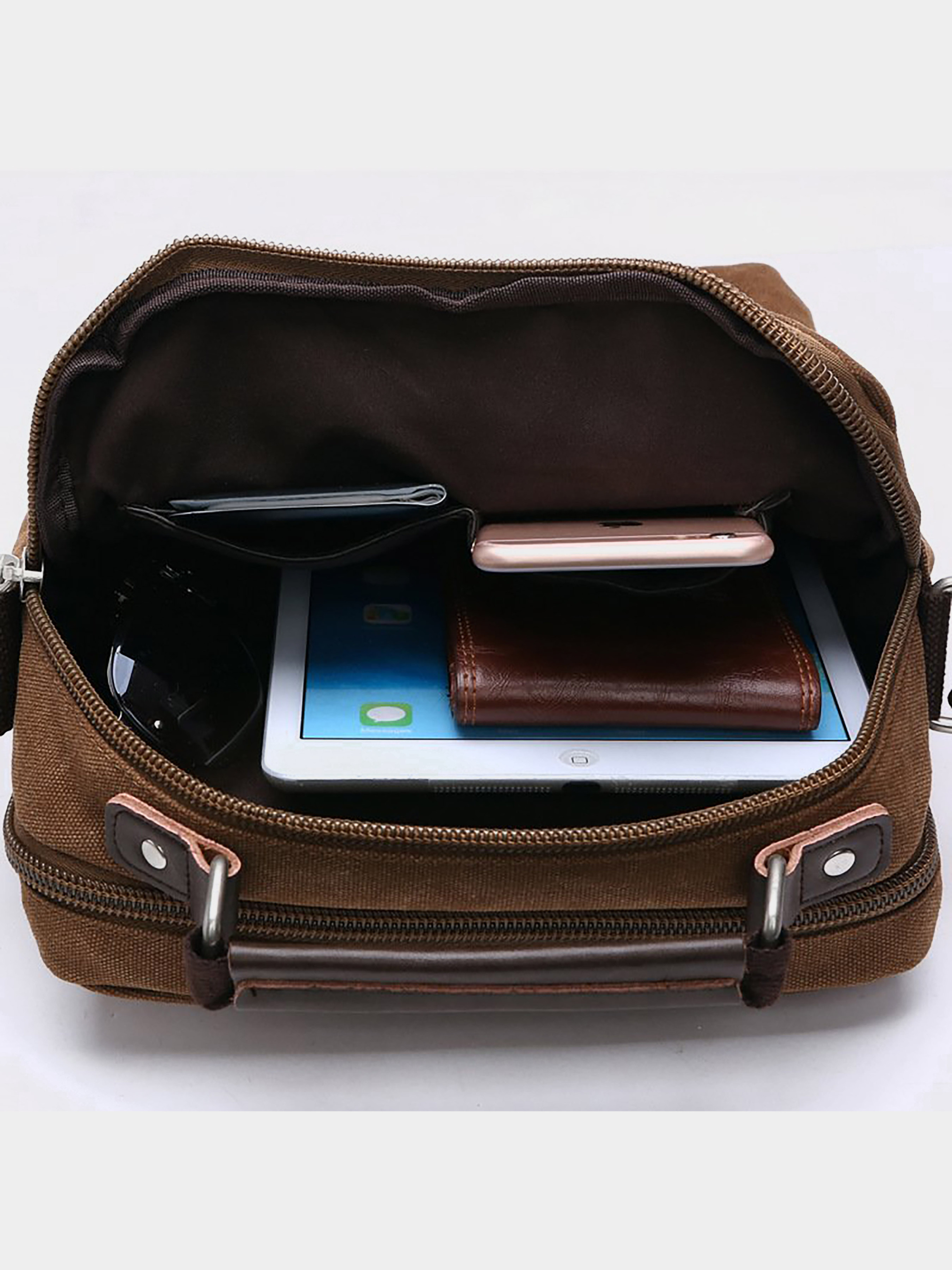 Матеріал: текстиль; Колір коричневий; Розміри (ШхВхГ, см): 32х25х7. Країна виробник: Китай. Особливості: - основне відділення з двома відкритими кишенями; - вбудована кишеня на змійці і накладна кишеня на липучці під клапаном; - накладна кишеня на змійці на лицьовій стороні; - вбудована вертикальна кишеня на змійці на лицьовій стороні; - кишеня на змійці на тильній стороні; - текстильний регульований незнімний ремінець на плече; - ручка для носіння в руці; - підкладка з коричневої тканини. Молодіжна вертикальна сумка з міцного поліестеру. Виріб підійде як для роботи, так і навчання. Сумка легко стирається і зовсім невибаглива в догляді. В сумку легко помістяться всі ваші необхідні речі на кожен день. Практична модель для планшета. Модель в доповненні з якісною фурнітурою і міцною підкладкою. Текстильна сумка буде ідеальним варіантом, якщо ви хочете знайти більш доступний варіант.