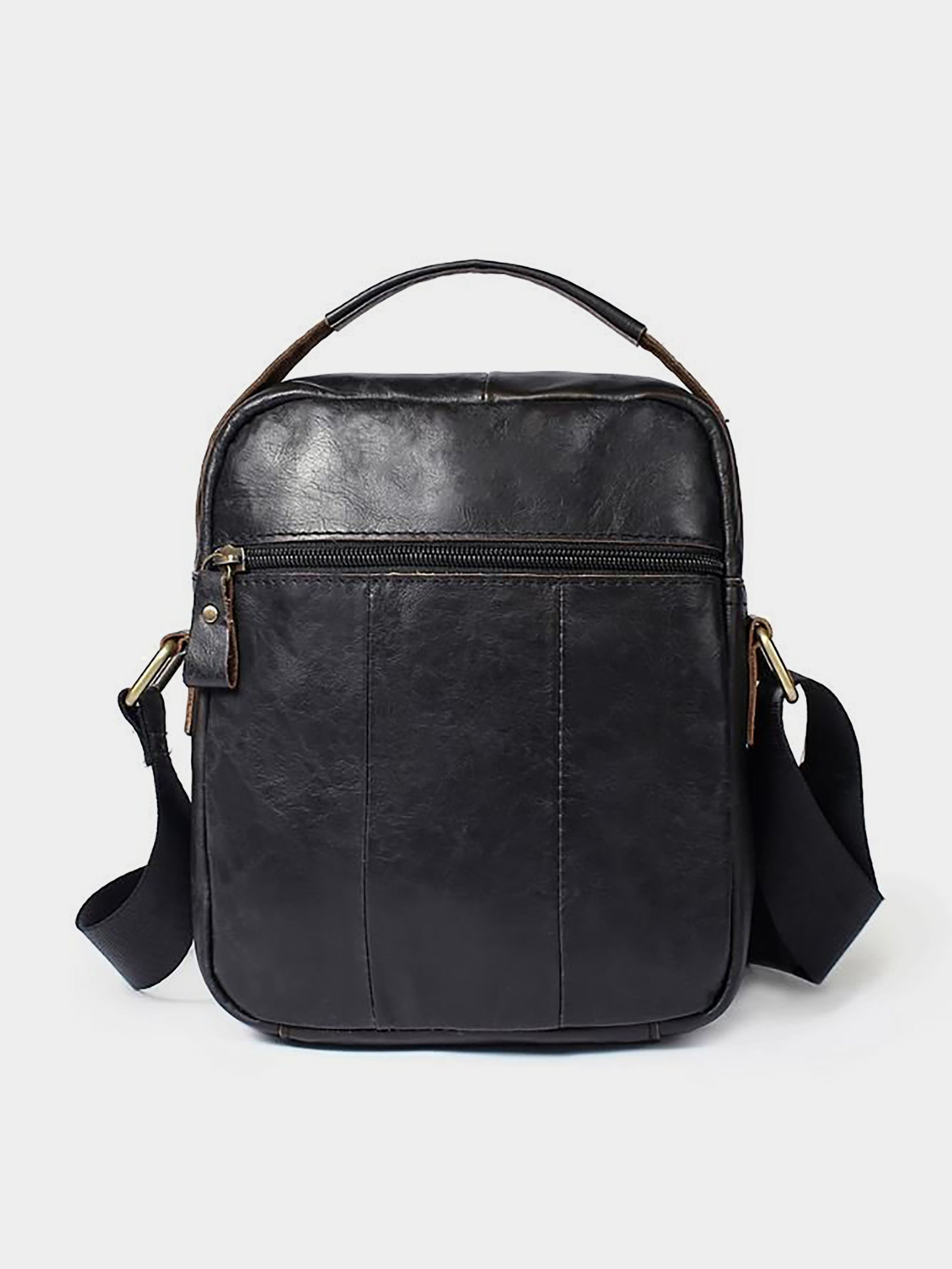 Матеріал: натуральна шкіра високої якості. Колір: чорний. Розміри (ШхВхГ, см): 18х22х6 см. Країна виробник: Китай. Бренд: Vintage. Опис: - основне відділення на блискавці; - потаємна кишеня на блискавці; - накладна кишеня відкрита для телефону; - на тильній стороні кишеня на блискавці; - кишеня на лицьовій стороні під клапаном; - кишеня вертикальна на блискавці; - текстильний ремінець на плече (не знімається). Сумка доповнена фурнітурою золотистого кольору і прошита по краях чорною ниткою. Усередині коричнева текстильна підкладка. Аксесуар можна носити як в руках, так і на плечі за допомогою ручки. Хороший варіант для сумки на кожен день. Сумка неважка і не займає багато місця. У догляді модель не примхлива і довго носиться. Буде ідеальним варіантом для подарунку близькій людині.