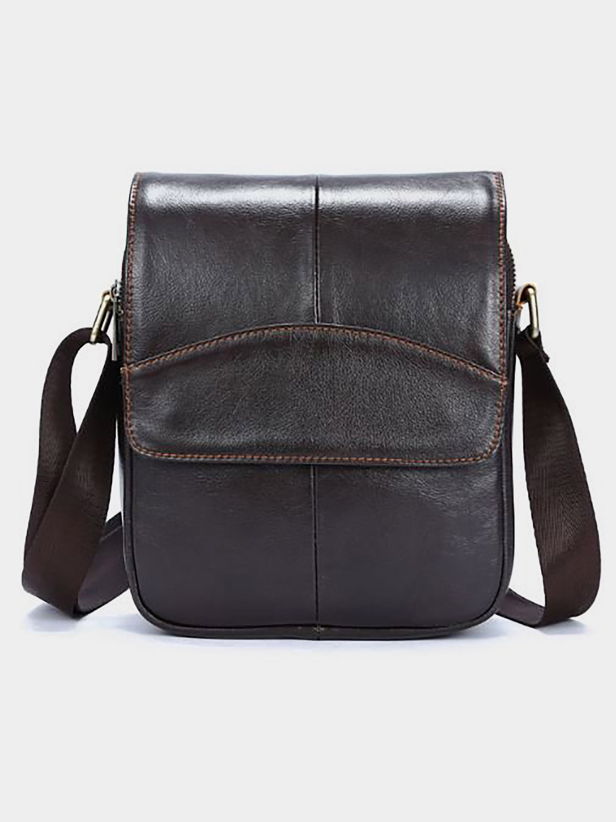 Матеріал: натуральна шкіра високої якості. Колір: коричневий. Розміри (ШхВхГ, см): 19,5х23х7 см. Країна виробник: Китай. Бренд: Vintage. Опис: - 2 основні відділення на змійці: У далекому: - відкрита кишеня; - потайна кишеня на змійці; - кишенька на змійці під клапаном на двох магнітних кнопках на лицьовій стороні; - кишеня на змійці на тильній стороні; - текстильний ремінець на плече (незйомний). Добротна сумка з натуральної шкіри. Переливається на сонці і не вибаглива в догляді Аксесуар доповнено міцною золотистою фурнітурою і має текстильну ручку на плече. Модель прошита світлою ниткою по краях. Якщо ви вибираєте аксесуар на подарунок, варто придивитися до такої сумки. Винуватець торжества однозначно залишиться задоволений.
