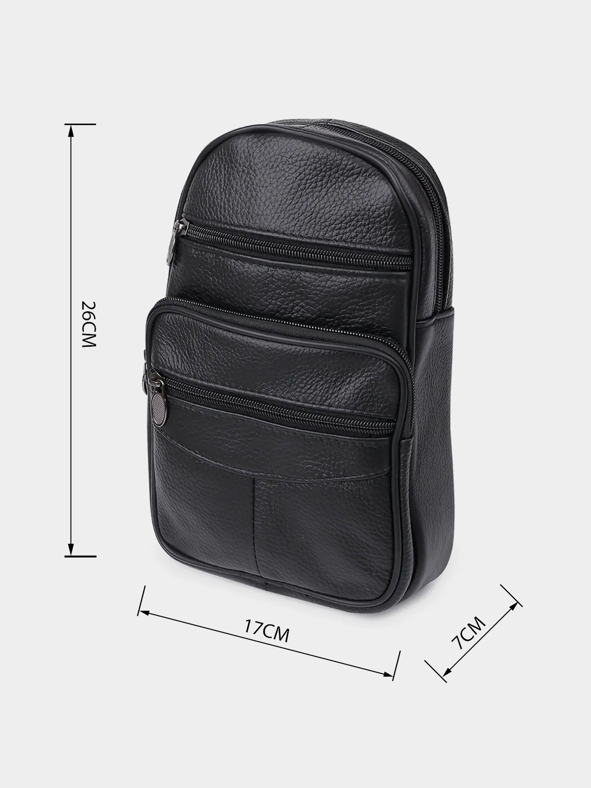 Колір чорний; Матеріал: натуральна шкіра; Розміри (ШхВхГ, см): 17х26х7 см Країна виробник: Китай. Бренд: Vintage. Опис: - 1 основне відділення на блискавці; - зовнішня кишеня на блискавці; - на зовнішній стороні накладна кишеня з двома відділеннями на блискавці; - на тильній стороні кишеня на блискавці; - текстильний ремінець через плече; Компактна, але дуже містка чоловіча сумка через плече з натуральної шкіри високого класу з зернистою фактурою. Усередині одне просторе відділення на блискавці. На зовнішній стороні три кишені на блискавці. Також є одна кишеня на тильній стороні. Ремінь виготовлений з міцного текстилю і може регулюватися по довжині.