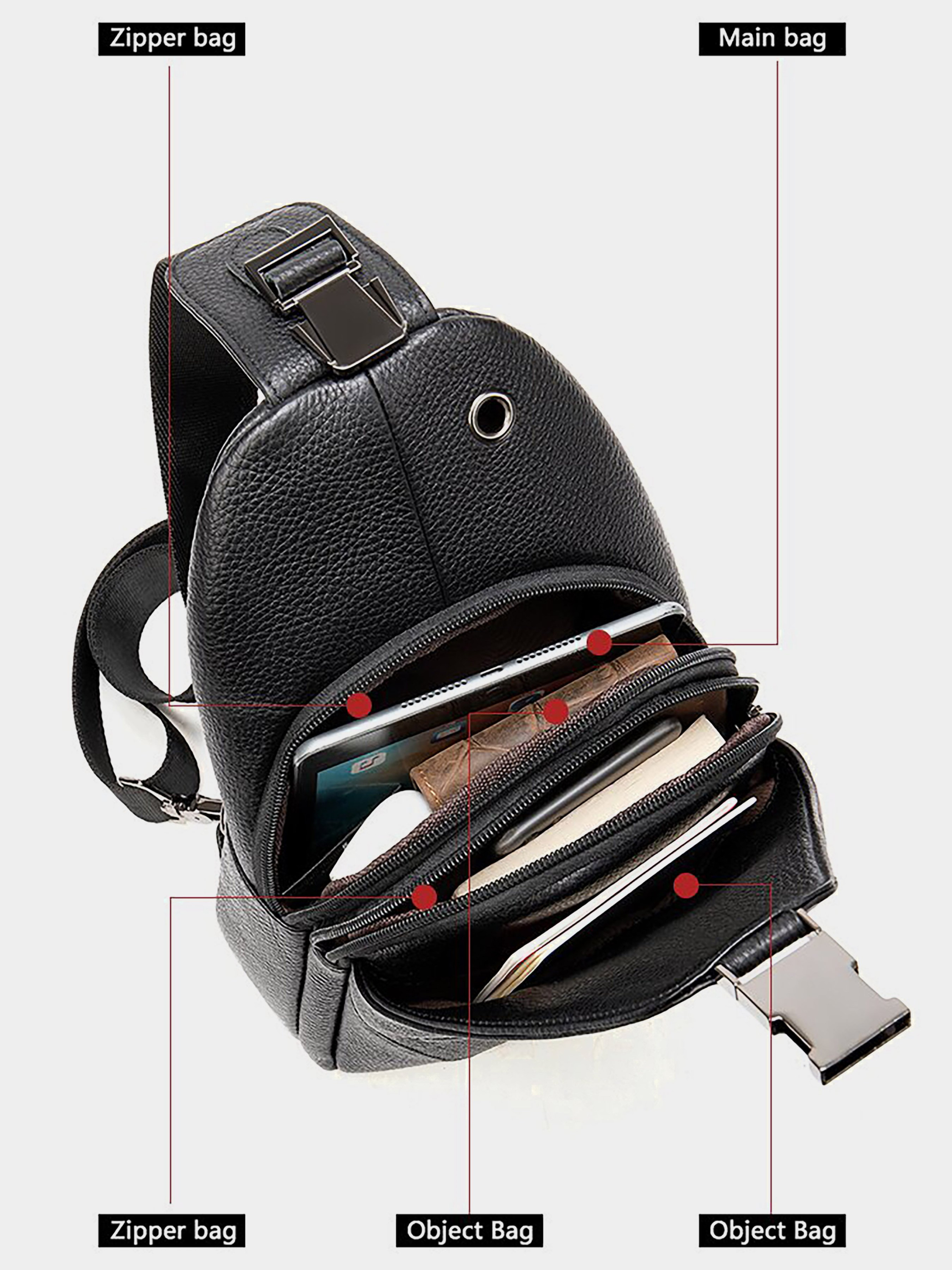 Колір чорний; Матеріал: натуральна шкіра високої якості; Розмір (ШхВхГ, см): 15х29,5х7; Країна виробник: Китай. Всередині: - 2 відділення на блискавці; - в далекому -потайна кишеня на блискавці на задній стінці, відкрита кишеня; - вертикальна кишеня на блискавці на тильній стороні; - кишеня відкритого типу з накладкою на застібці; - діагональна кишеня на блискавці на лицьовій стороні аксесуара; - круглий виріз для навушників; - текстильний ремінець. Стильна чоловіча сумка-слінг. Модель можна носити на зручному вам плечі (ремінець перестібається за допомогою карабіна). Виріб має продуманий модний дизайн і виконаний з натуральної зернистої шкіри, яка менш подається різного роду подряпинам. Сумка не вимагає особливого догляду. І буде носитися далеко не один рік. У поєднанні з якісною фурнітурою аксесуар підкреслить вашу індивідуальність. Сумка не залишить байдужим жодного чоловіка. Вона дуже практична, функціональна і містка. Моделі з двома відділеннями мають більший попит, тому що є дуже універсальними. У комплекті текстильний чохол для зберігання виробу. Сумка-слінг - кращий подарунок для будь-якого чоловіка.