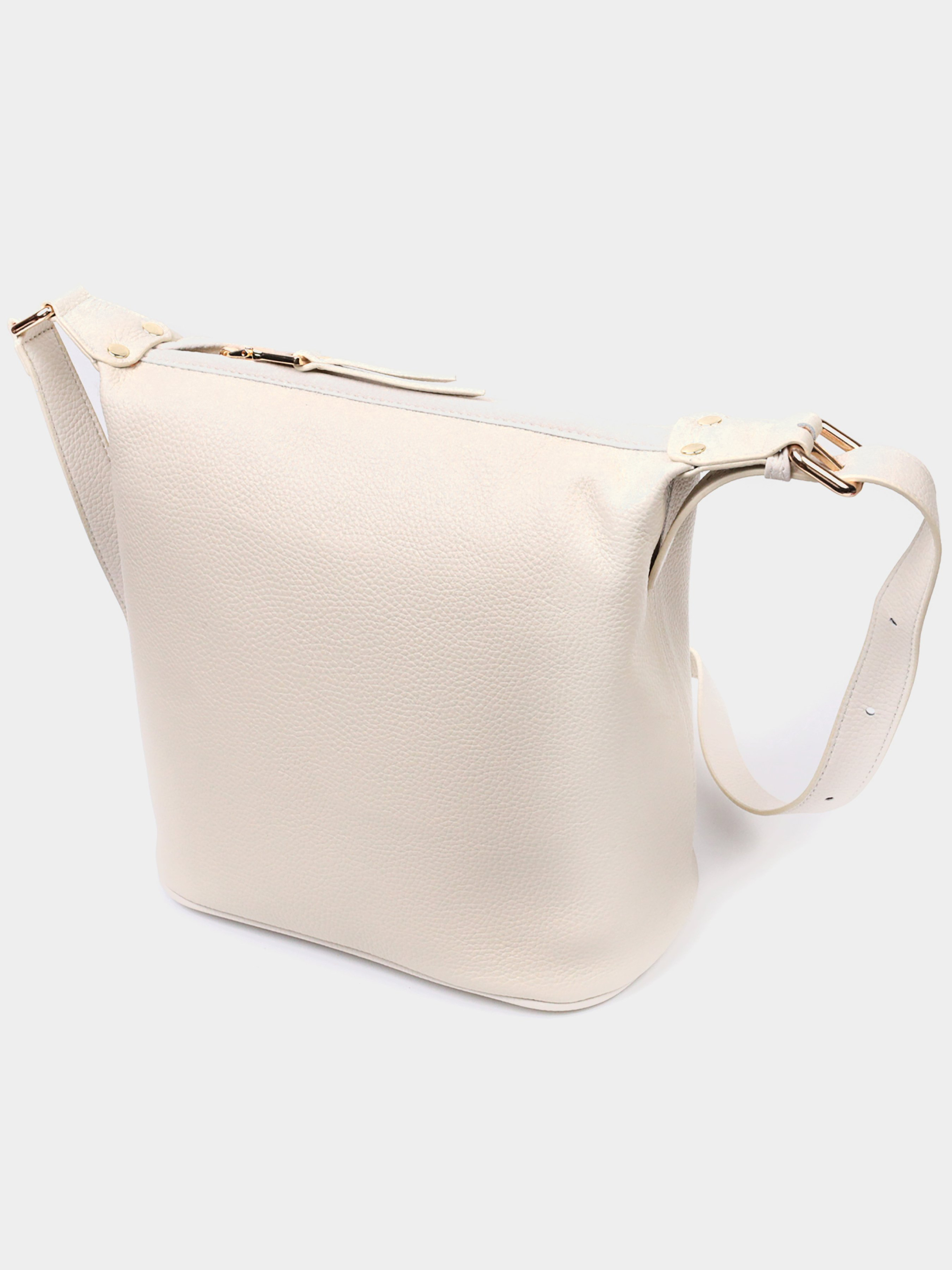 Колір: молочно-білий; Матеріал: натуральна шкіра; Розмір (ШхВхГ, см): 23,5х25,5х13 см; Країна виробник: Китай. Бренд: Vintage. Особливості: - закривається на блискавку; - всередині: основне відділення, потайна кишеня на блискавці та кишеня відкритого типу; - шкіряний незнімний регульований ремінь. Вертикальна сумка жіноча з твердим дном з натуральної м'якої шкіри, яка дуже добре показала себе в експлуатації. Аксесуар складається з основного відділення, потайної кишені на блискавці та кишені відкритого типу. Носити сумку можна на плечі та через плече, для цього є шкіряний незнімний регульований ремінь. У виробі використано якісну фурнітуру кольору жовтого золота. Чудовий варіант сумки на кожен день.