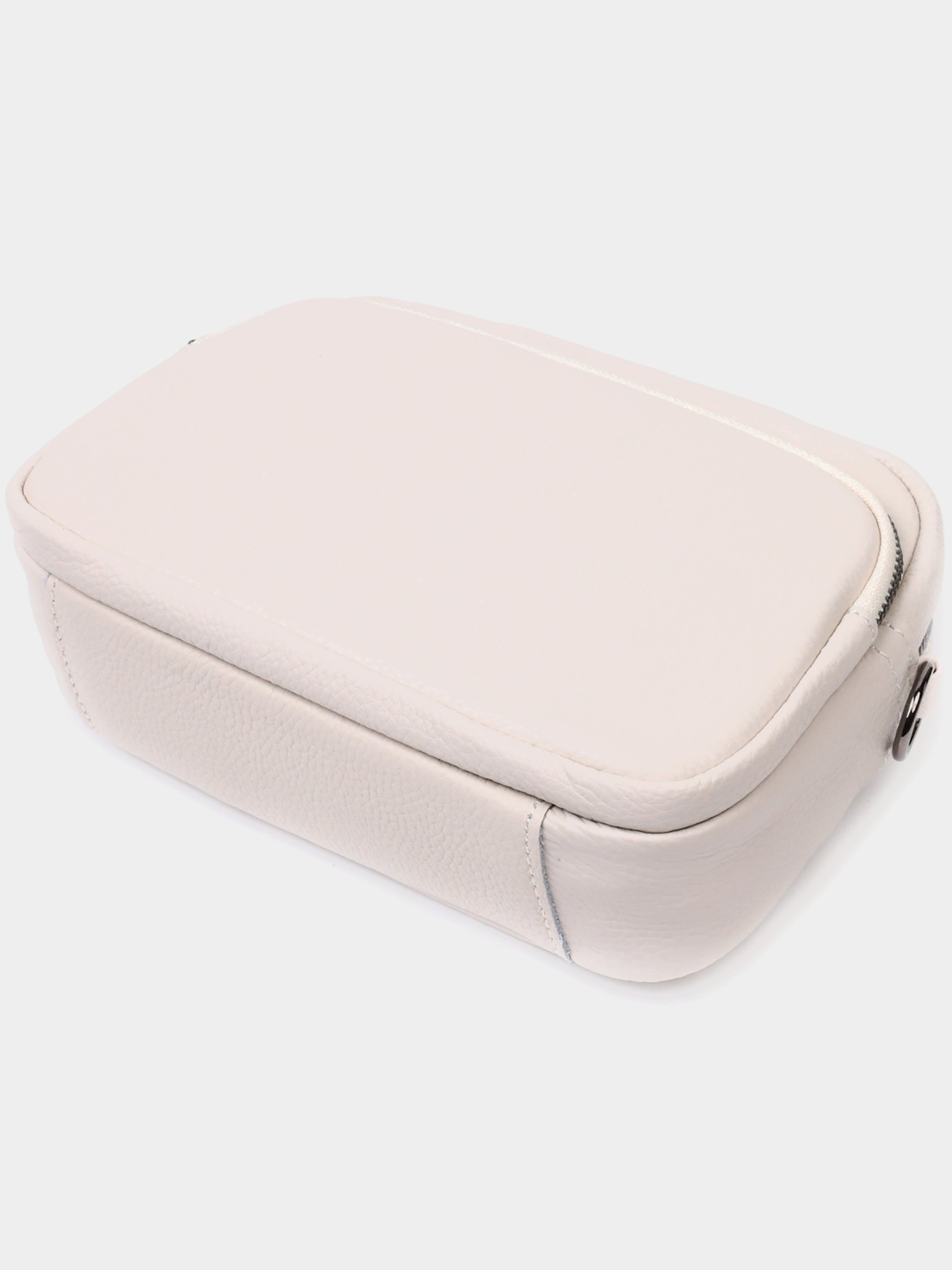 Колір: молочно-білий; Матеріал: натуральна шкіра; Розмір (ШхВхГ, см): 21,5х14,5х7 см; Країна виробник: Китай. Бренд: Vintage. Особливості: - закривається на блискавку; - одне основне відділення всередині якого кишеня на блискавці та кишеня відкритого типу; - накладна кишеня на блискавці, на лицьовій стороні; - кишеня на блискавці зовні, на тильній стороні; - знімний текстильний ремінь. Стильна сумка з накладною кишенею на лицьовій стороні. Виріб пошитий з якісної натуральної шкіри, яка довго носиться і не втрачає свого первісного вигляду. Аксесуар складається з одного основного відділення всередині якого розташована кишеня відкритого типу і кишеня на блискавці, також зовні розташована кишеня на блискавці, на тильній стороні та накладна кишеня на блискавці, на лицьовій стороні. Носити сумку можна в руці як клатч, на плечі та через плече, для цього є текстильний ремінь, що знімається. У виробі використано якісну фурнітуру кольору темного срібла. Універсальний варіант сумки як на вечір так і як сумочка на кожен день.