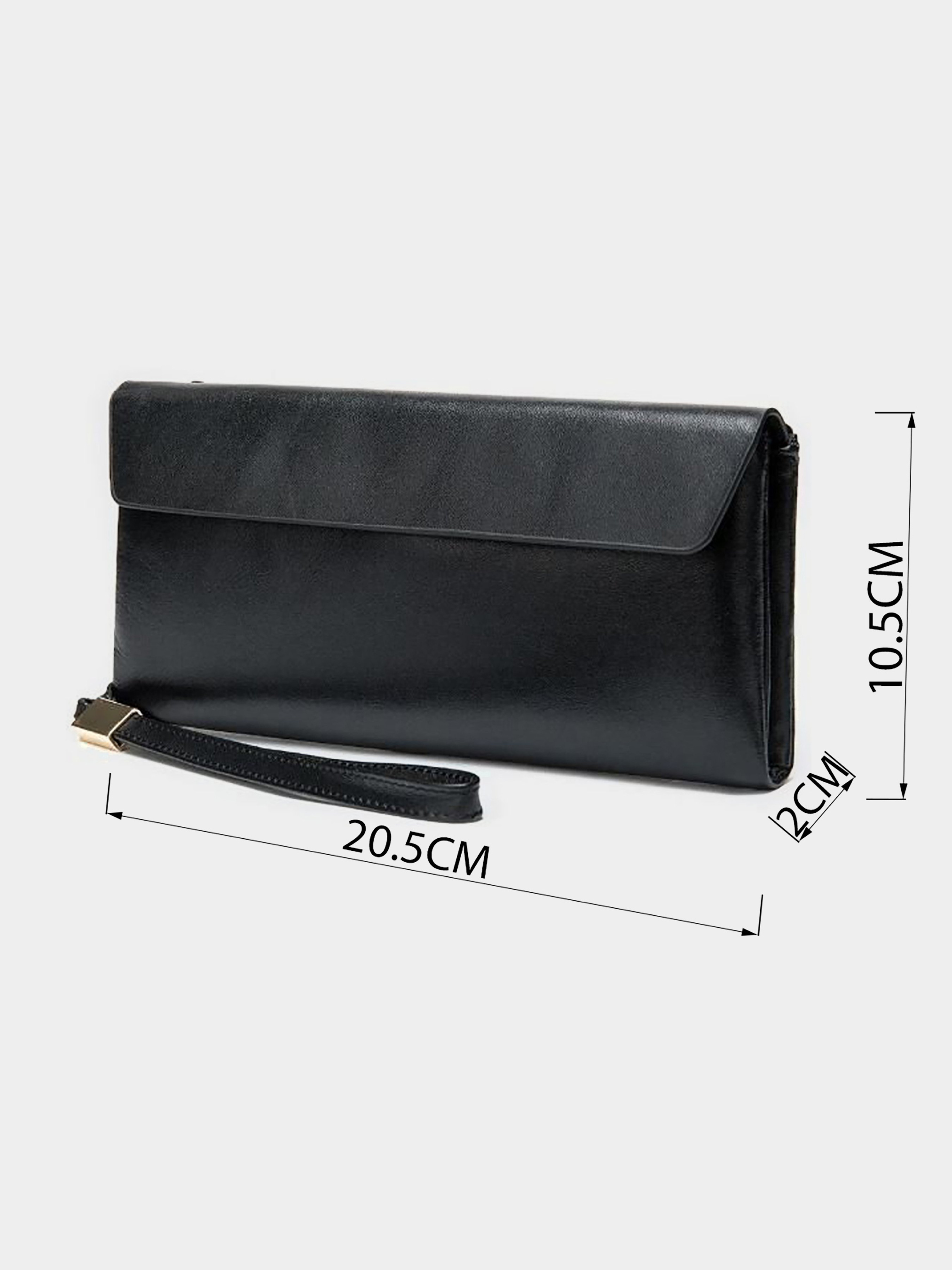 Колір: чорний; Матеріал: натуральна шкіра. Розмір (ШхВхГ, см): 20,5х10,5х2; Країна виробник: Китай. Всередині: - 6 відкритих кишень; - 15 слотів для кредиток (один з них під плівкою); - бокова кишеня для монет на змійці; - монетниця на змійці на зворотній стороні; - ремінь на зап'ястя; Універсальний місткий клатч з натуральної шкіри. М'який на дотик. Аксесуар доповнено золотистою фурнітурою. Всередині аксесуар з натуральної шкіри в поєднанні з міцним текстилем. Модель зручно сидить в руці і досить довго носиться. Аксесуар буде прекрасним подарунком для близької людини.