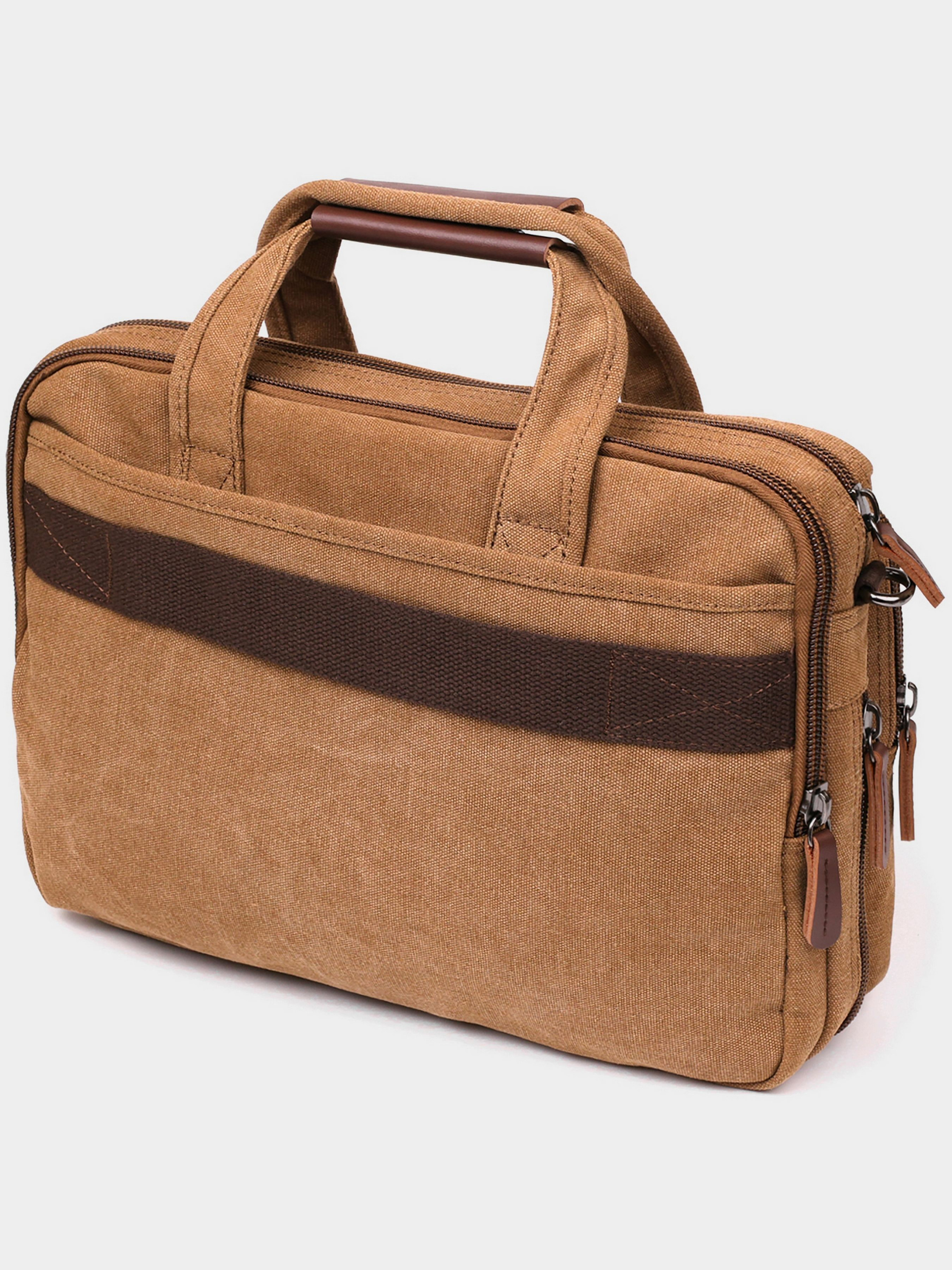 Матеріал: текстиль; Колір коричневий; Розміри (ШхВхГ, см): 40х29х3. Країна виробник: Китай. Особливості: - закривається змійками; - два основних відділення, одне з ущільненою кишенею на липучці для ноутбука і двома накладними відкритими кишенями, одне з потайною кишенею на змійці; - з передньої сторони накладна кишеня(всередині: 3 петлі для ручок і дві відкриті накладні кишені) і прорізна кишеня на змійці і кишеня на липучці; - задня кишеня на змійці на тильній стороні; - знімний регульований плечовий ремінь; - ремінець на валізу ззаду; - підкладка з коричневої тканини. Текстильна сумка під ноутбук до 15дюймів. Дуже зручна і легка модель. Виріб ви можете носити як через плече, так і в руках. Сумка дуже щільна і проноситься далеко не один рік. Сумка має два відділення і легко вмістить в себе не тільки ноутбук, але і документи або інші необхідні речі. Модель доповнена різноманітними кишенями для вашої зручності. Текстильна сумка стане ідеальним варіантом для тих, хто шукає доступну модель для повсякденного життя і не хоче переплачувати.
