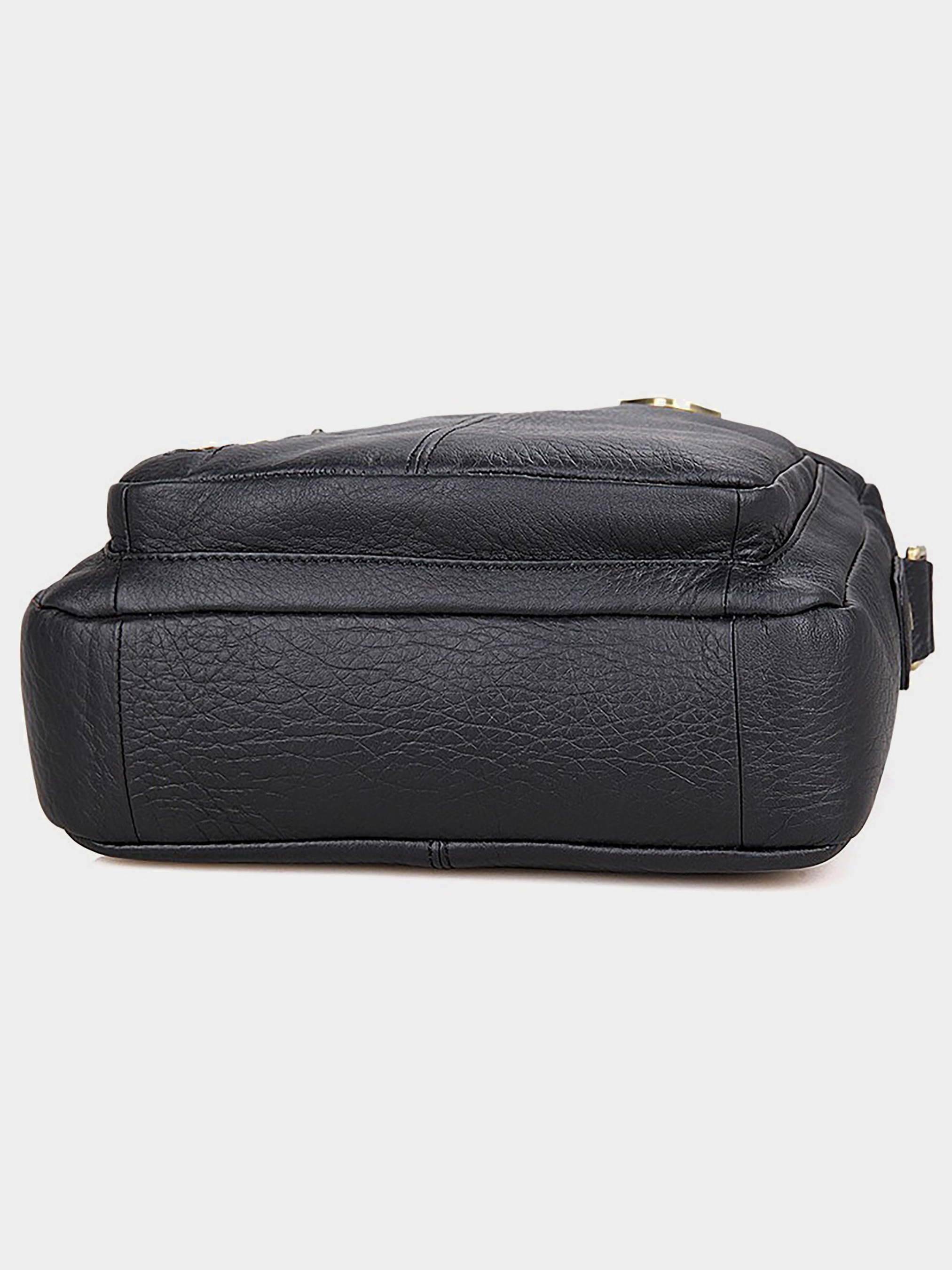 Матеріал: натуральна шкіра; Колір: чорний; Розміри (ШхВхГ, см): 23х26х7. Добротна чоловіча сумка через плече з натуральної шкіри. Колір фурнітури: латунь. Сумка акуратно прошита міцною ниткою чорного кольору. На лицевій стороні розташовано два відділення на блискавці. Ще одне відділення на блискавці розташоване на задній зовнішній стороні. Дана модель закривається за допомогою блискавки. Сумка упакована в текстильний пилозахисний чохол білого кольору. Всередині: - одне містке відділення; - невелика накладна кишеня (на передній стінці); - потайна кишеня на блискавці(на задній стінці).