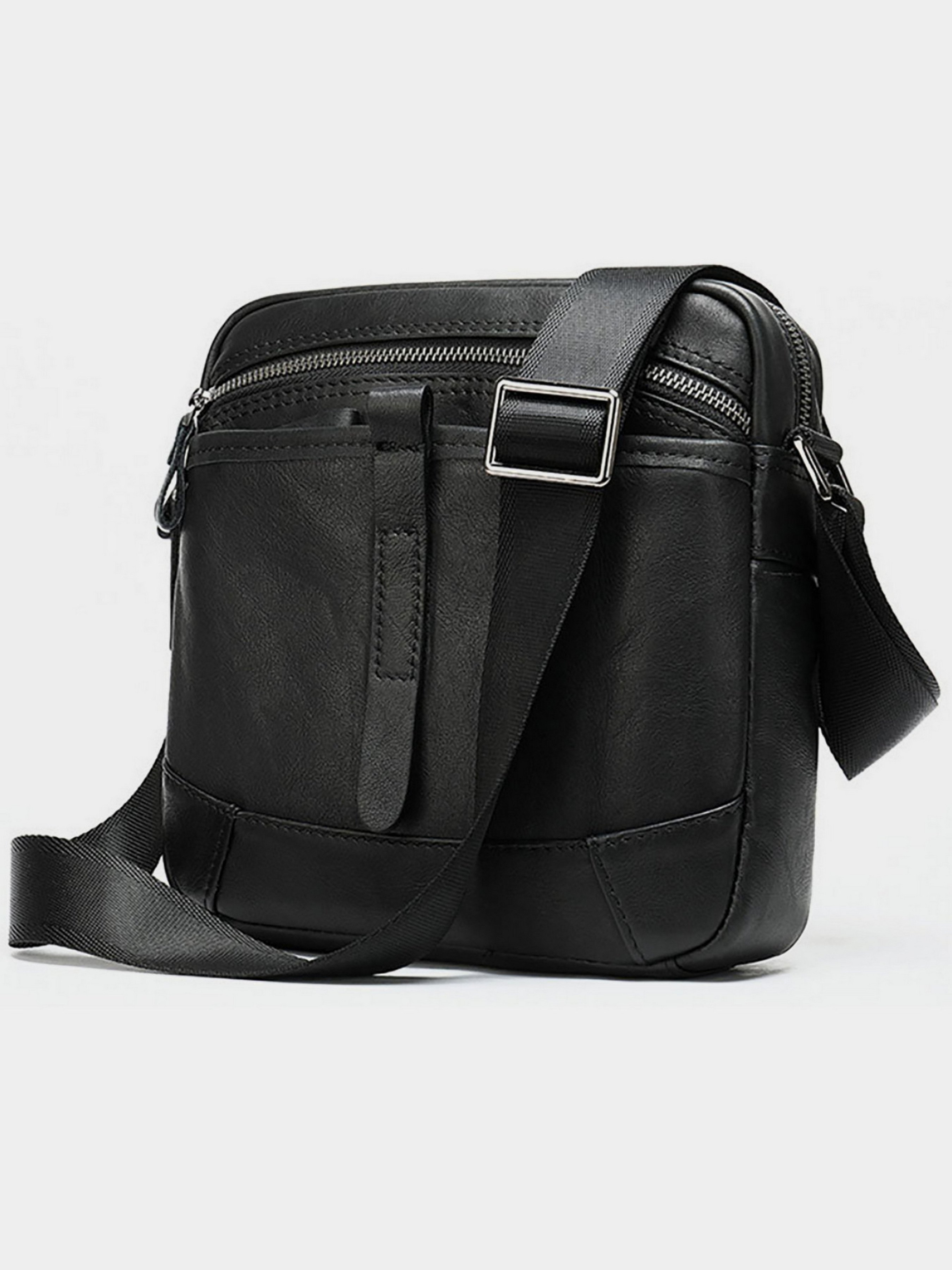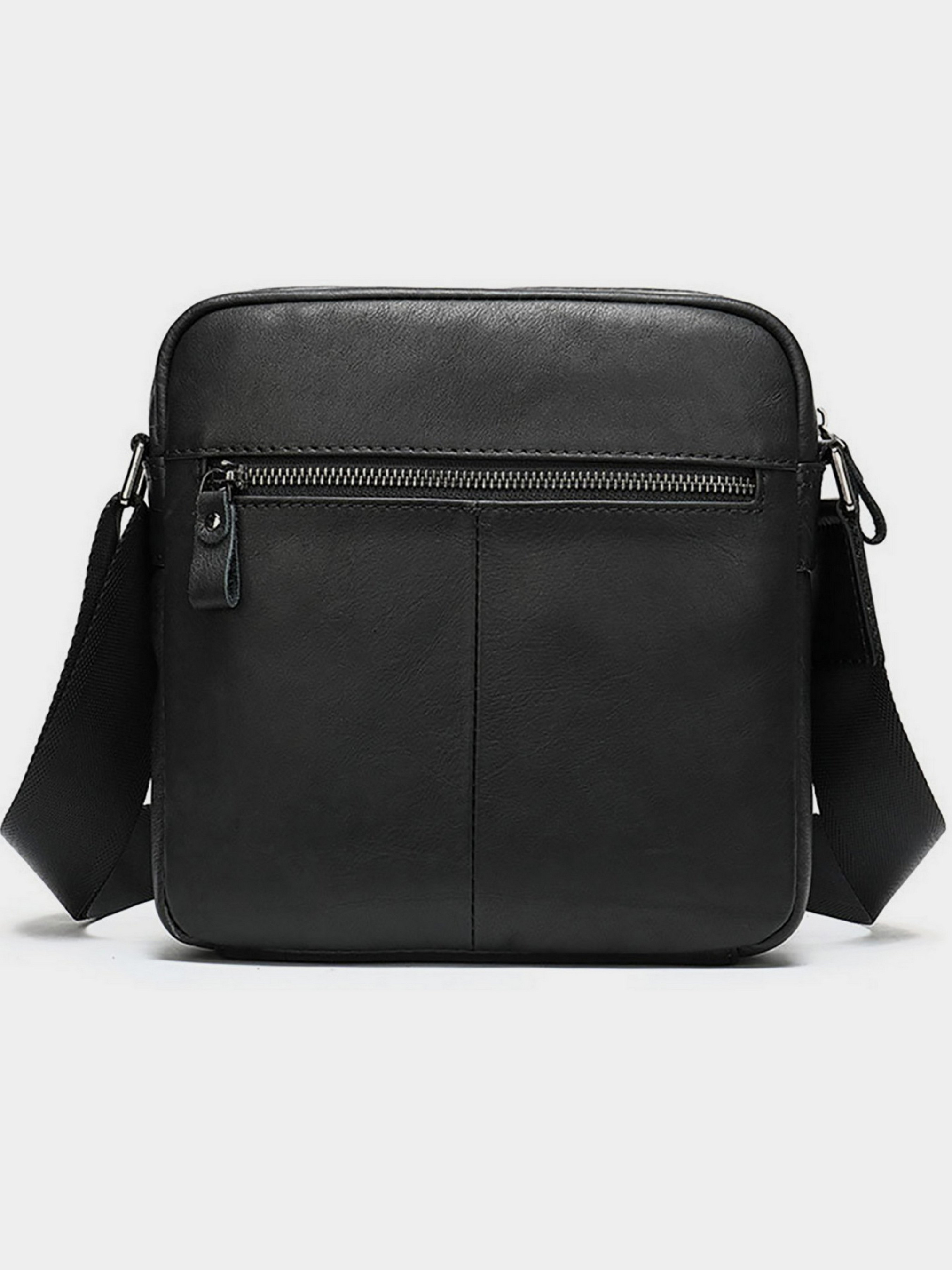 Колір чорний; Матеріал: натуральна шкіра високої якості; Розмір (ШхВхГ, см): 21х23х5,5. Країна виробник: Китай. Всередині: - одне основне відділення на блискавці; - кишеня відкритого типу; - потайна кишеня на блискавці; - вбудована і накладна кишеня на блискавці на лицьовій стороні; - кишеня на блискавці на тильній стороні; - незнімний текстильний ремінець. Компактна чоловіча сумка з натуральної шкіри класичного чорного кольору і горизонтального формату. Всередині - коричнева текстильна підкладка. Доповнено виріб фурнітурою сріблястого кольору з міцного металу. Сумка стане ідеальним помічником чоловікові на кожен день. Виріб створено для чоловіків, які цінують якість і компактний розмір. З нею буде також дуже зручно ходити на роботу. Виріб стане чудовим подарунком для будь-якого чоловіка. У комплекті до сумки йде пилозахисний чохол. На лицьовій стороні сумка доповнена шкіряним хлястиком.
