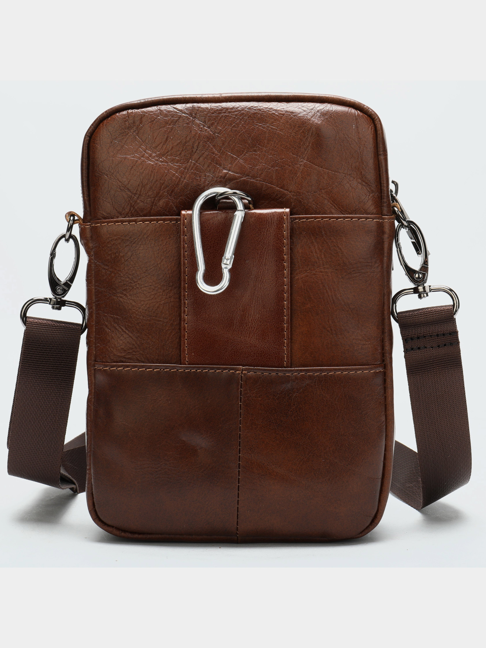 Колір: коричневий; Матеріал: натуральна шкіра; Розмір (ШхВхГ, см): 13,5х20х4,5; Країна виробник: Китай. Всередині: - два основних відділення на змійці; - знімний текстильний ремінь; - накладна кишеня під клапаном; - карабін. Невелика чоловіча сумка на кожен день. Аксесуар зроблено з гладкої шкіри. По краях сумка прошита рудою ниткою в дизайн аксесуара. Модель виконана за вже відточеною технологією і має найвищу якість та користується популярністю серед чоловіків. На карабін сумки ви можете причепити ключі. Сумка прекрасно завершить ваш образ і вмістить в себе все найнеобхідніше на кожен день.