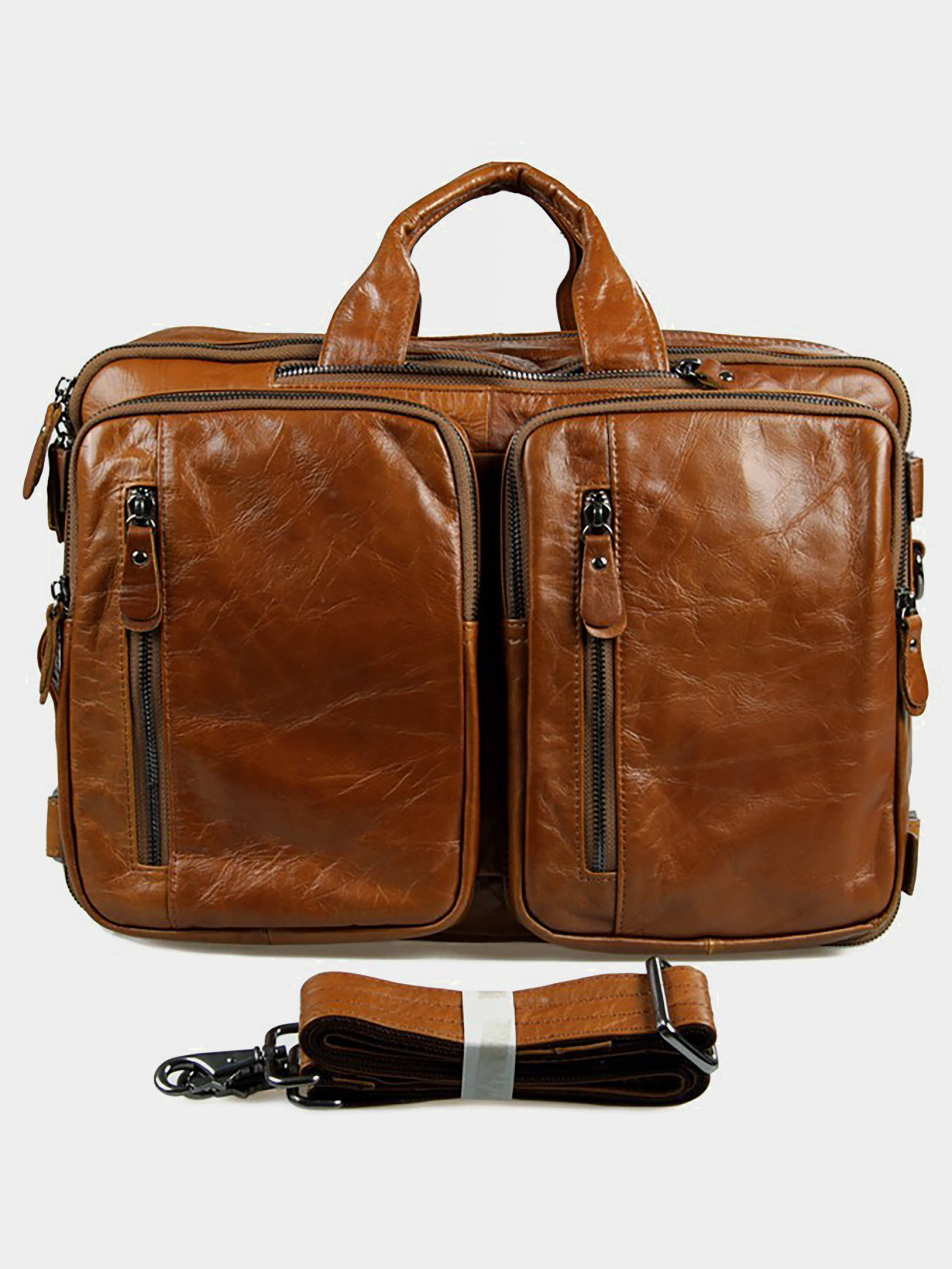 Матеріал: натуральна шкіра високої якості; Розмір: 38*27*15 см.; Колір: рудий. Чудова чоловіча шкіряна сумка-трансформер рудого кольору. Дану модель можна носити в руці, через плече або ж як рюкзак. Колір фурнітури: темне срібло. На лицевій стороні виробу знаходиться 4 відділення на блискавці. Передбачено спеціальні кишеньки на блискавці в які можна ховати шкіряні ручки. Сумка упакована в текстильний пилозахисний чохол білого кольору. Особливості: - 2 автономних відділення на блискавці: в першому відділенні -дві накладні кишені для мобільних телефонів, у другому - потайна кишеня на блискавці.