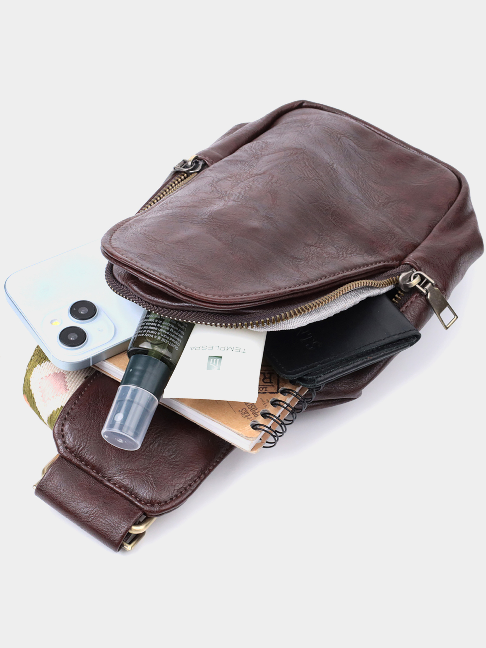 Матеріал: екошкіра; Колір: коричневий; Розміри (ШхВхГ, см): 13х23х7м; Країна виробник: Китай. Особливості: - одне основне відділення на блискавці; - три кишені для кредитних карток усередині; - потайна кишеня на лицьовій стороні, що закривається на карабін; - колір фурнітури жовтий; - текстильний плечовий регульований ремінець. Стильна жіноча компактна сумка через плече на кожен день із якісного екошкіри, яка є альтернативою натуральній шкірі. Дана модель складається з одного основного відділення, яке закривається на блискавку і в якому знаходяться три кишені для кредитних карток усередині, а також однієї потайної кишені на лицьовій стороні, що закривається на карабін. Акцентом даної моделі є зручний регульований плечовий ремінець у етнічному стилі, що дуже модно вже кілька сезонів. Екошкіра високоякісна альтернатива натуральному матеріалу, яка дуже стійка до тертя, до низьких температур, відмінно носиться на відміну від інших штучних матеріалів, а також має гіпоалергенний склад на відміну від натуральної шкіри. Мода не стоїть на місці, на зміну класичним сумкам приходять нові моделі, які обумовлені сучасним часом, саме такою є слінг сумка - зручна, практична, невелика, але містка і головне якісна.