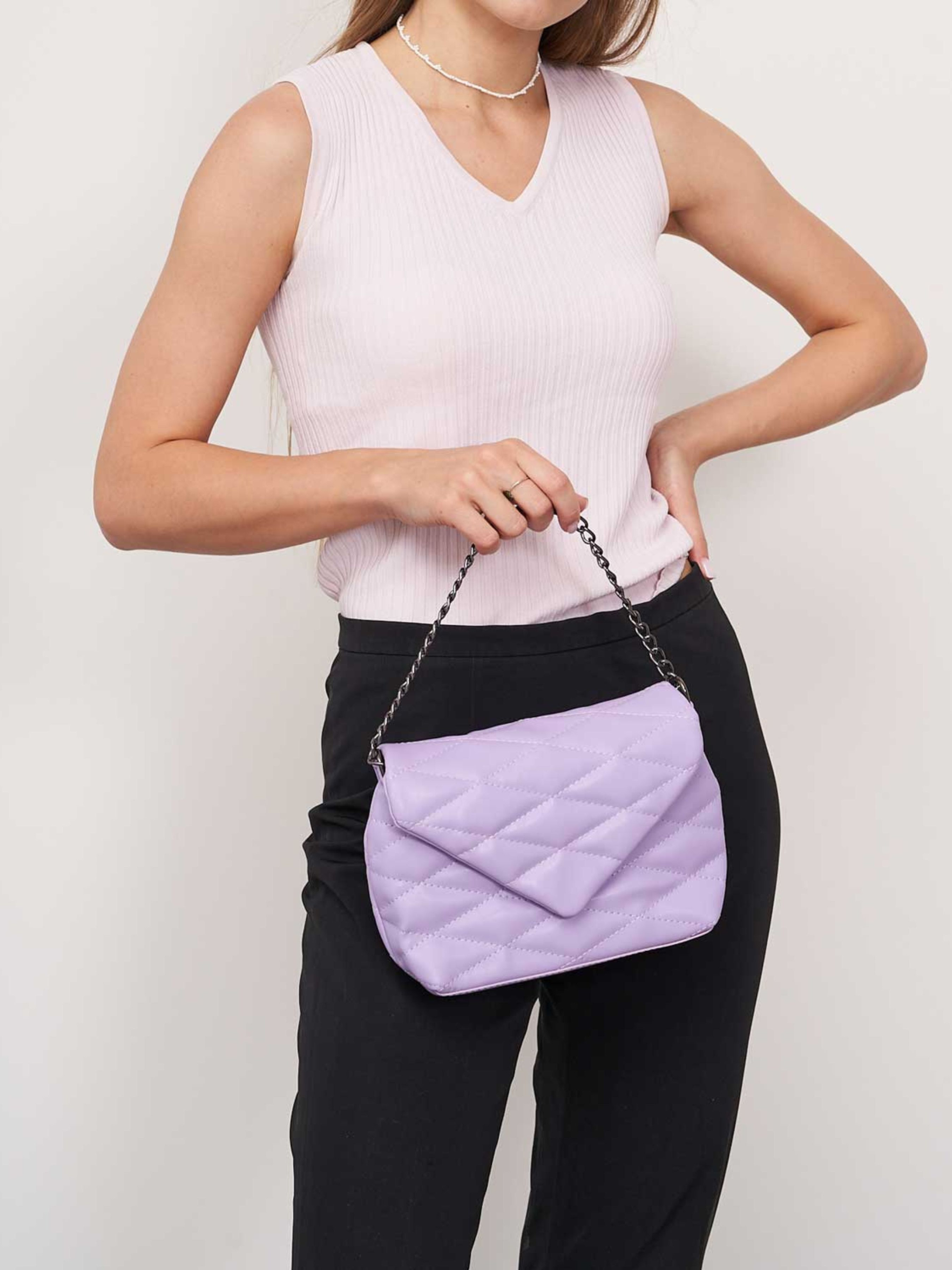 Сумка Шейла — стильний аксесуар, що поєднує елегантність і практичність. Стьобаний дизайн додає виробу об’єму та сучасного вигляду, а декоративний ланцюжок надає образу вишуканості. Модель ідеально підходить для щоденного використання, поєднуючи комфорт і модний акцент. Основні характеристики: Виробник: Welassie (Україна) Матеріал: екошкіра високої якості — м’яка, з приємною текстурою, стійка до зношування Колір: лавандовий Розмір: малий — зручний формат для повсякденного носіння Стиль: молодіжний Жорсткість: середня — тримає форму, але залишається комфортною у використанні Застібка: блискавка — забезпечує надійне закриття Відділення: одне основне відділення на підкладці, всередині дві кишені — одна на застібці, інша відкрита Плечовий ремінь: регульований, з максимальною довжиною 135 см Декор: ланцюжок, який можна використовувати як ручку Як носити: Сумка Шейла чудово пасує до повсякденних луків, підкреслюючи жіночність і сучасний стиль. Її можна поєднувати як із класичним пальто, так і з курткою чи сукнею. Завдяки універсальному кольору підходить для будь-якої пори року. Ідеальний вибір для міських прогулянок, зустрічей або подорожей.