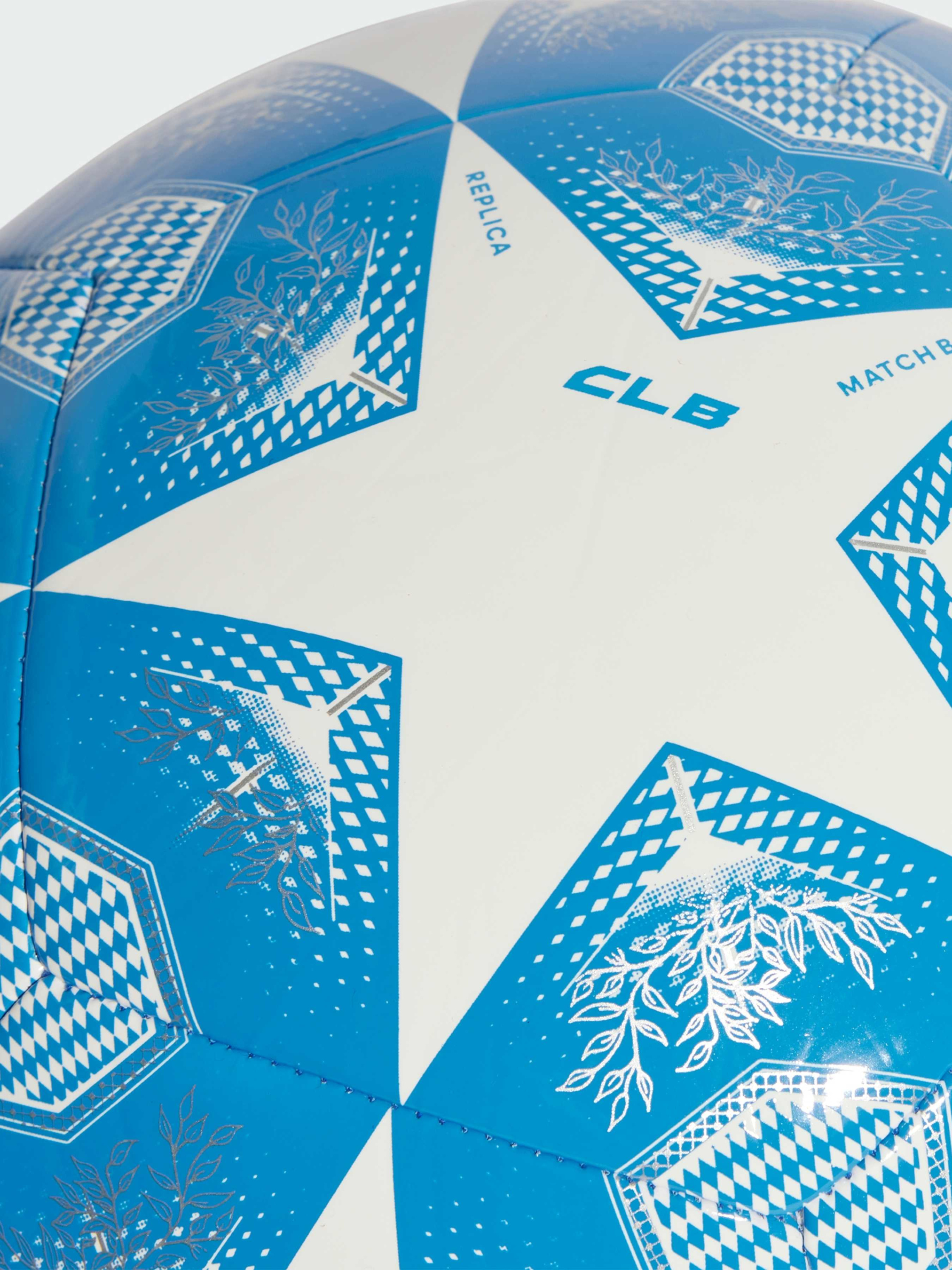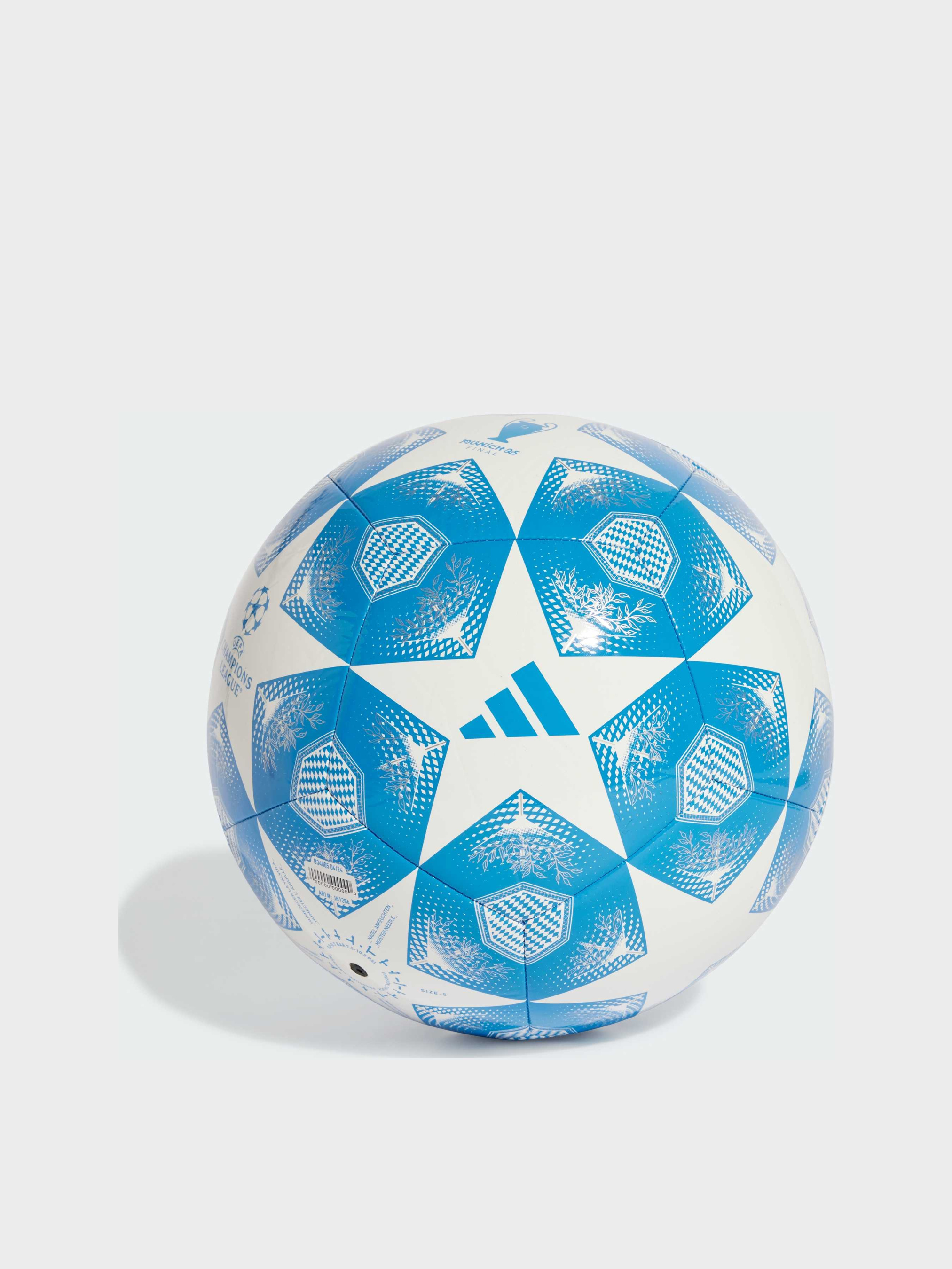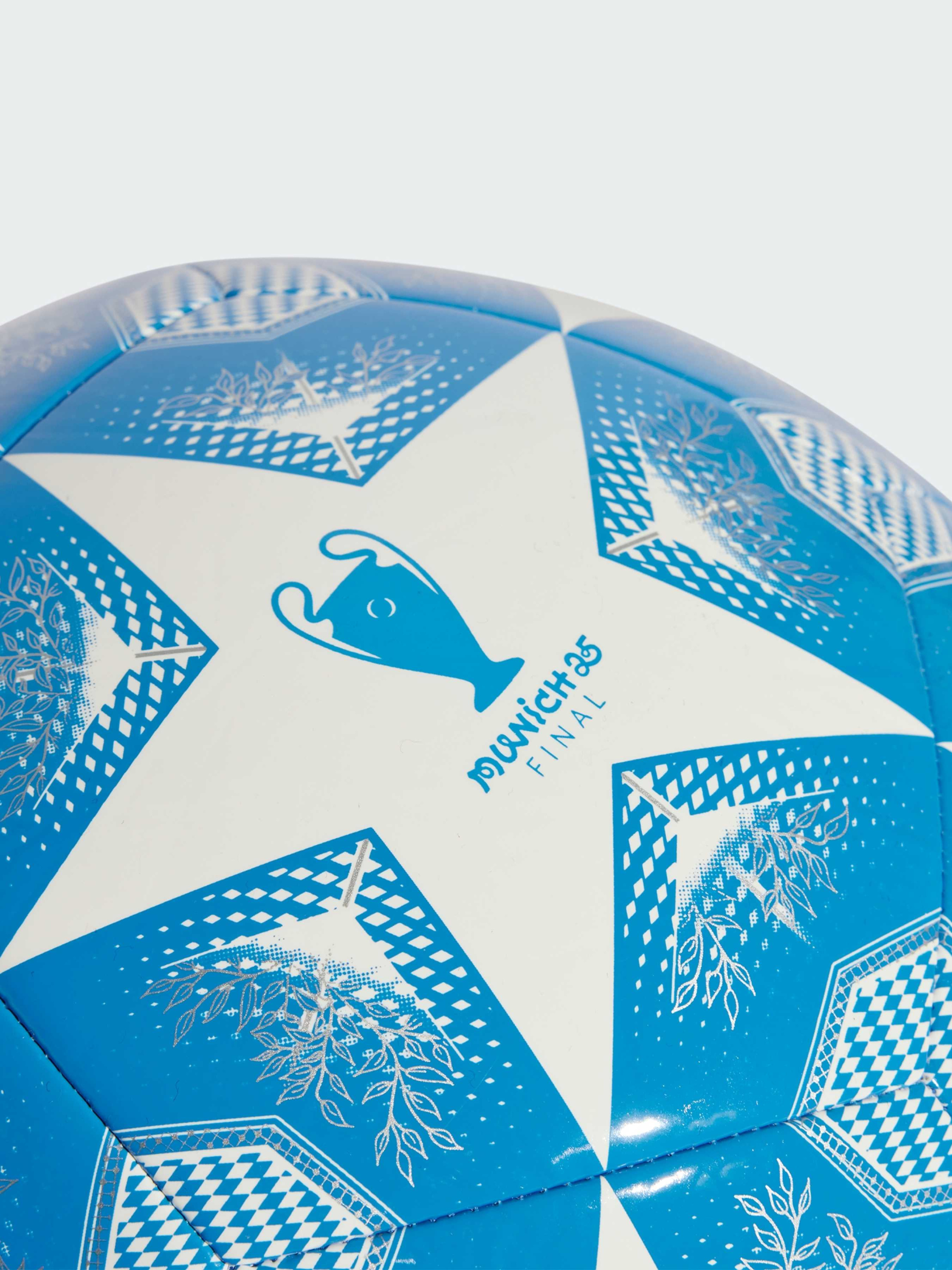 Характеристики 100% перероблений термопластичний поліуретан Бутилкаучукова камера Машинна строчка Потрібне накачування Логотип Ліги чемпіонів УЄФА Опис Цей футбольний м'яч adidas Club запозичує дизайн офіційного м'яча Ліги чемпіонів УЄФА. Машинна строчка забезпечує міцність, а TPU-оболонка прикрашена деталізованими елементами, пов'язаними з Мюнхеном, і логотипом турніру. Ідеальний варіант для дружніх ігор і тренування навичок, він також оснащений надійною бутиловою камерою, щоб можна було зосередитися на грі, а не на підкачуванні м'яча.