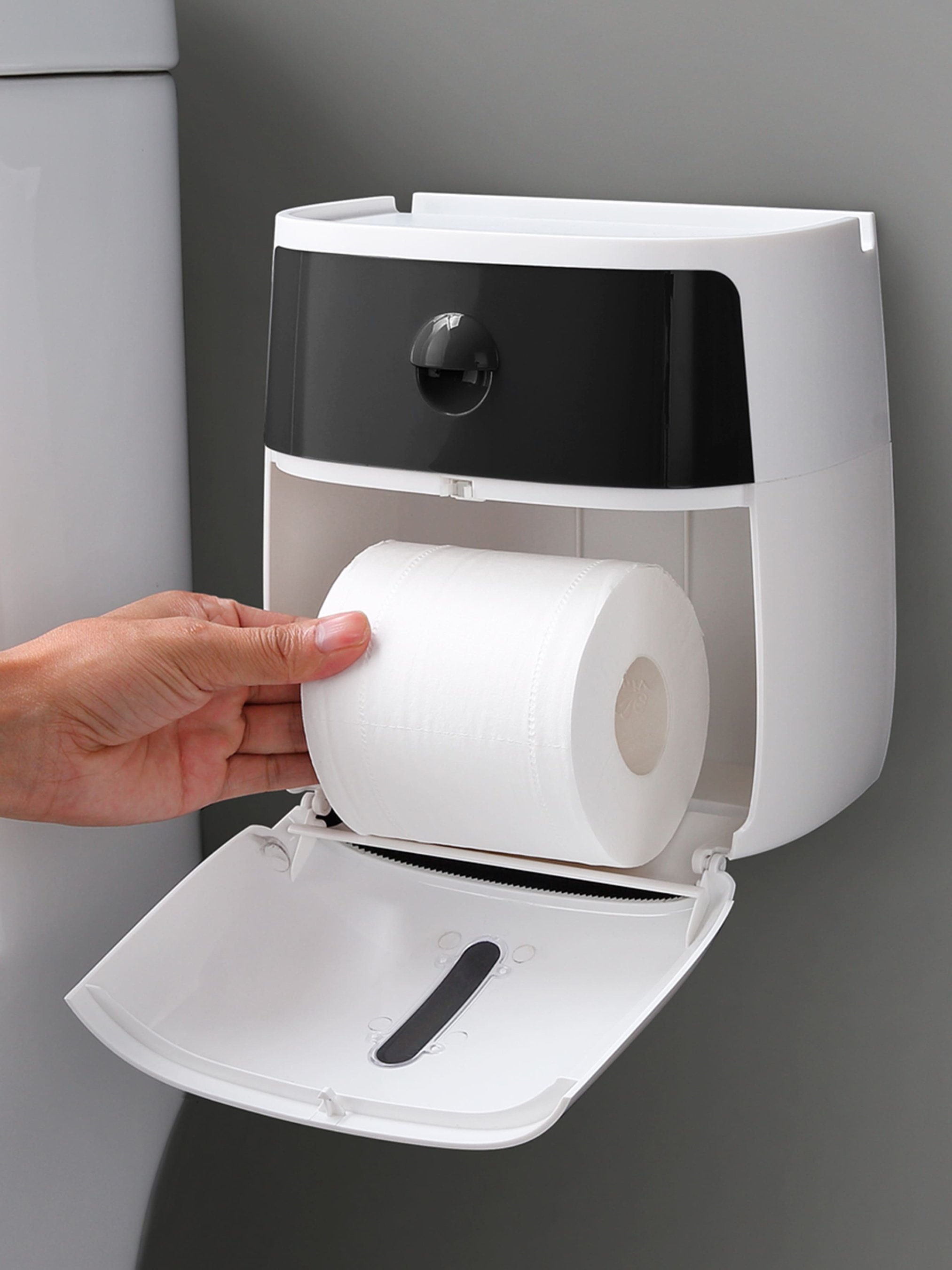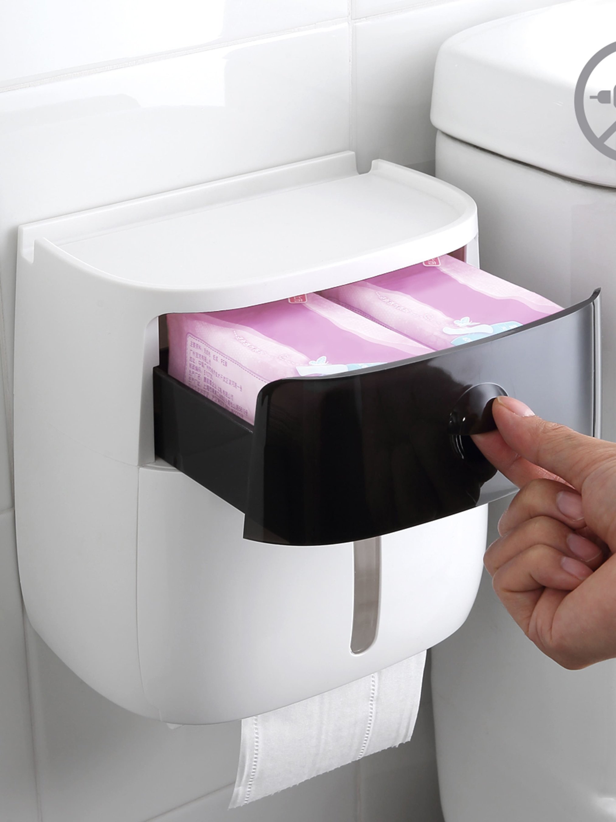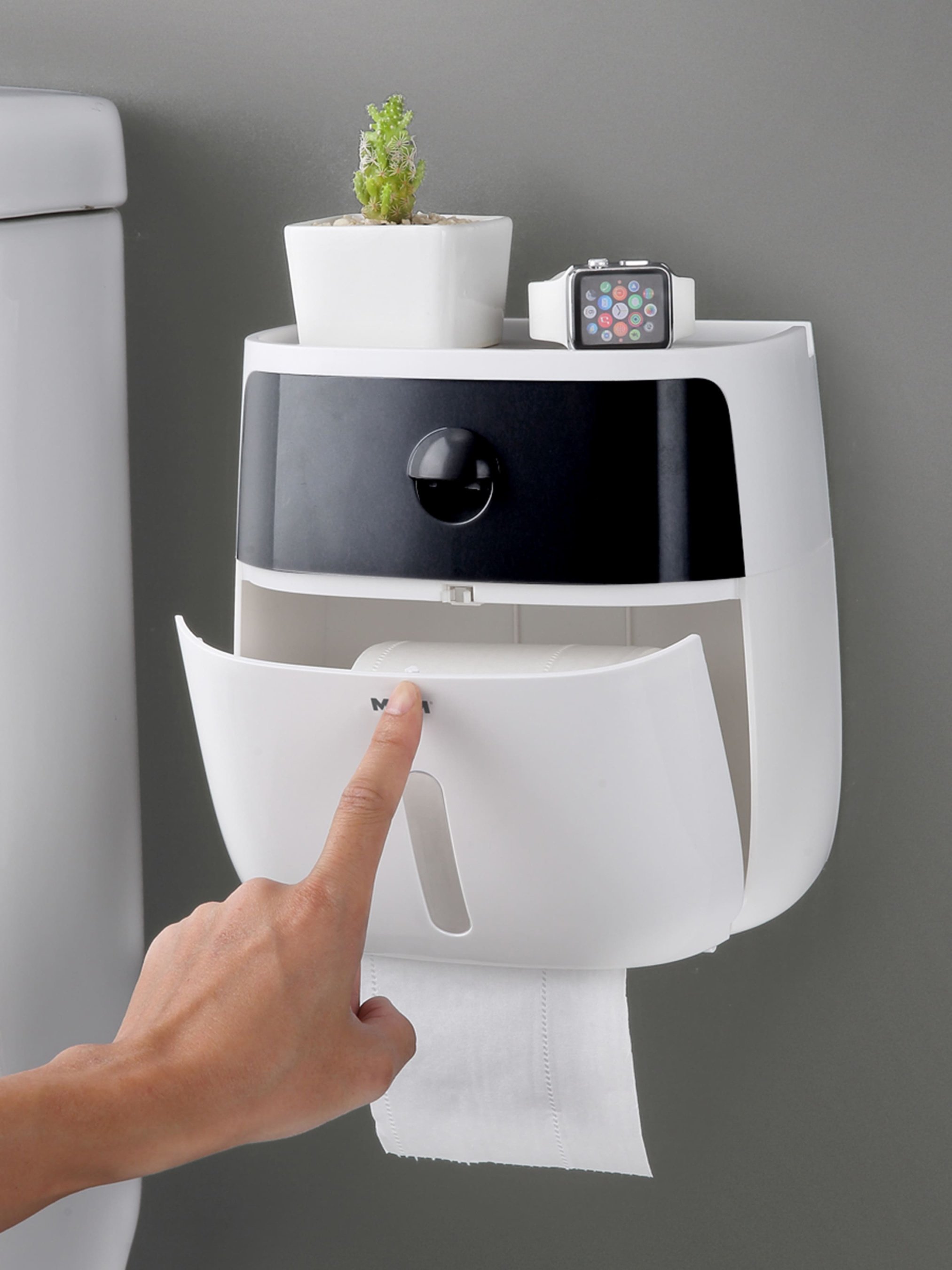 MBM HOMEТримач для туалетного паперу з поличкою клейкий білий з чорним