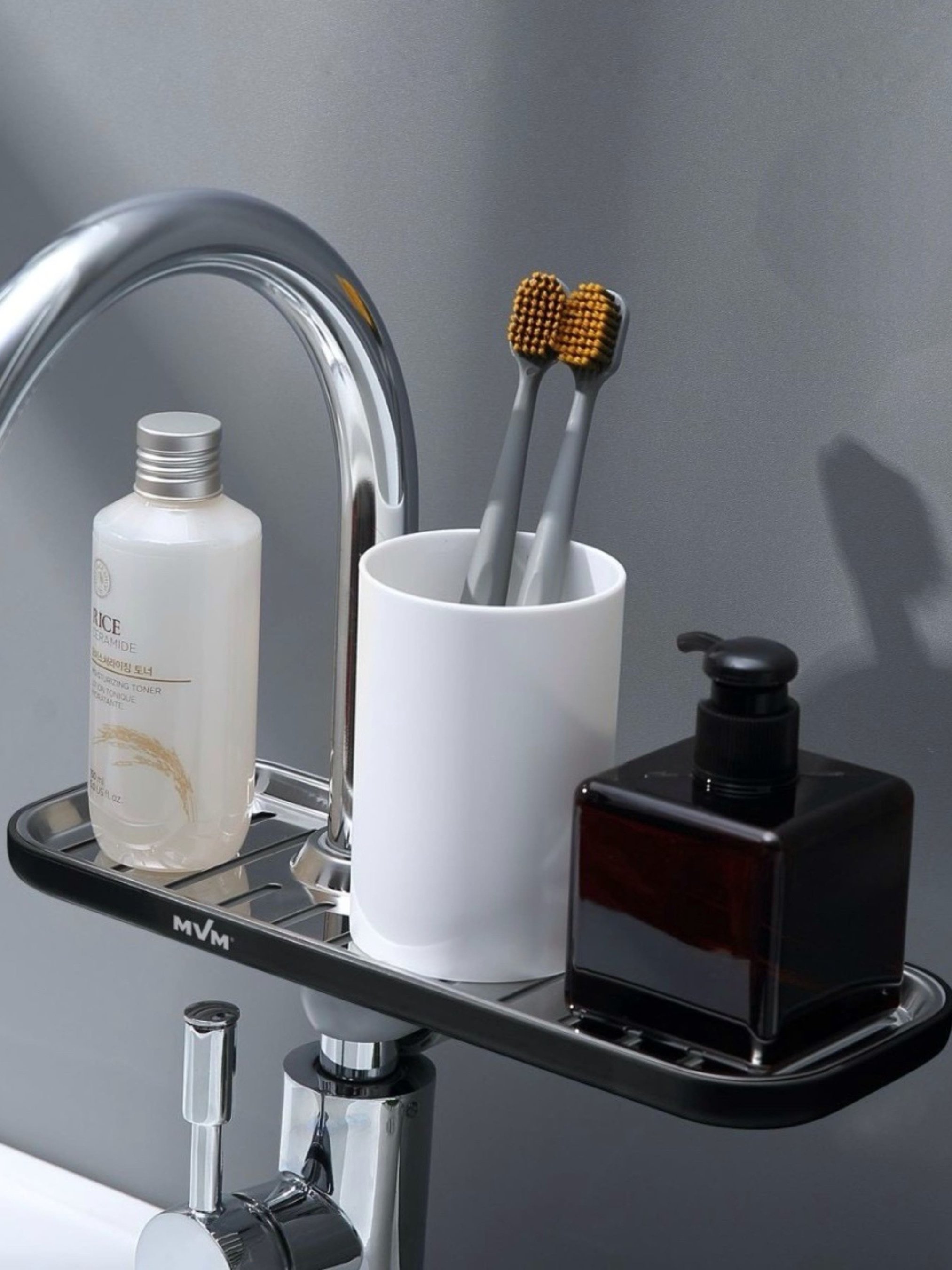 MBM HOMEПолиця на душову штангу та змішувач з фіксатором чорна