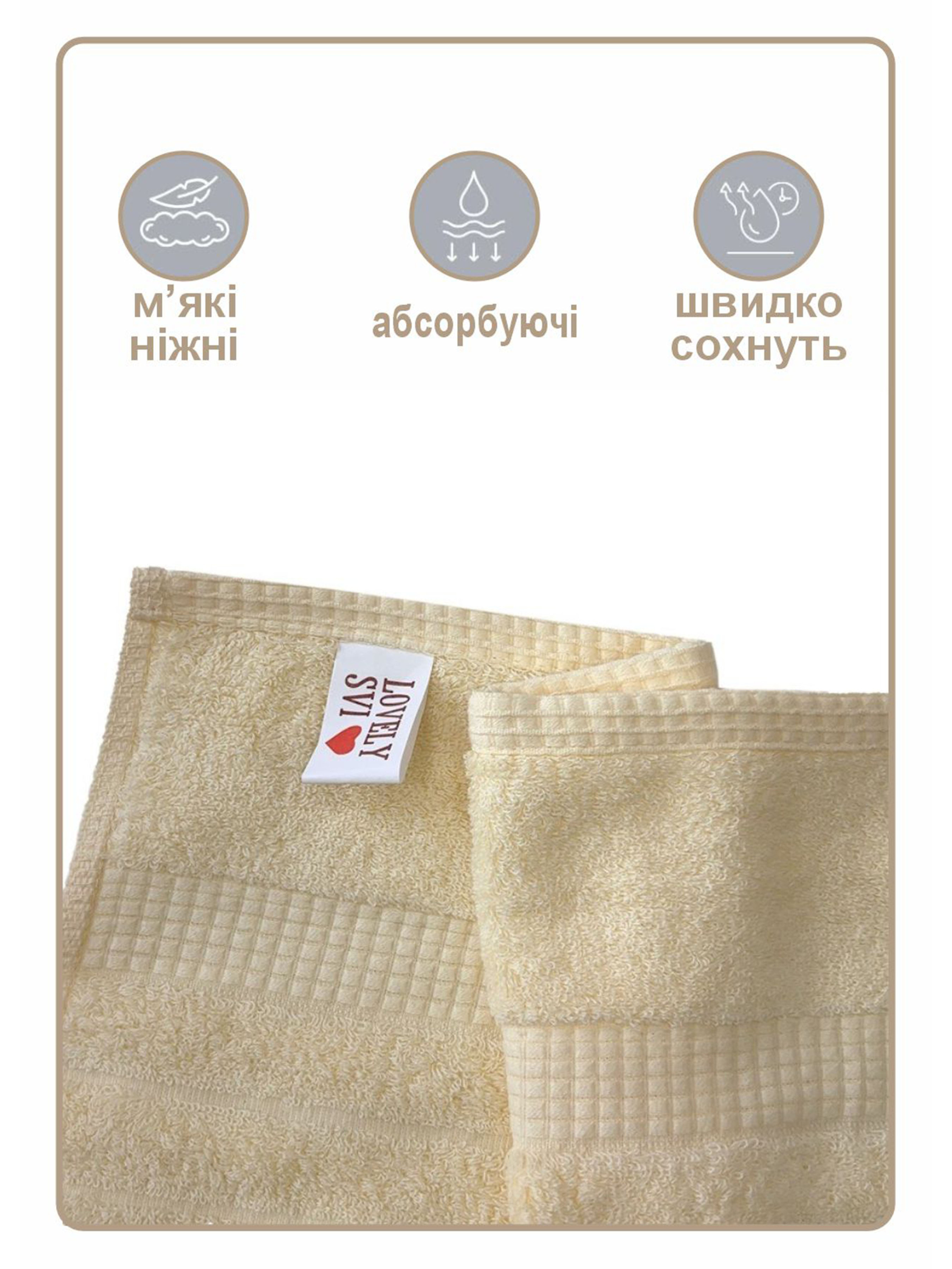 Набір 2 шт жаккардових бавовняних рушників для ванної, готелів, СПА, в подарунковому пакеті - Oxford Stripe Кремовий Lovely Svi модель 371124
