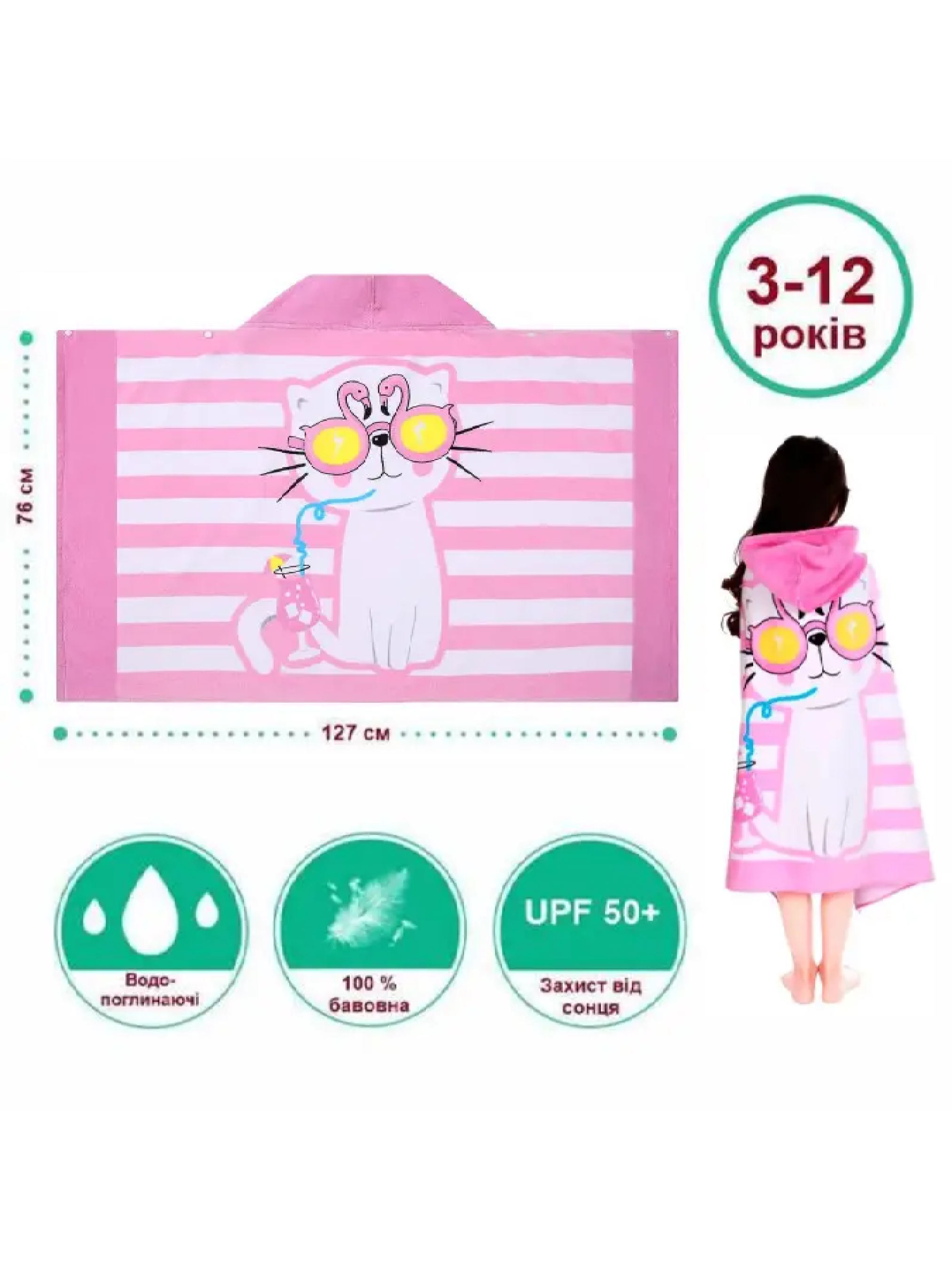 Рушник бавовна велюр/махра дитячий, пляжний, для ванної, басейну - рожевий Котик Lovely Svi модель 140823