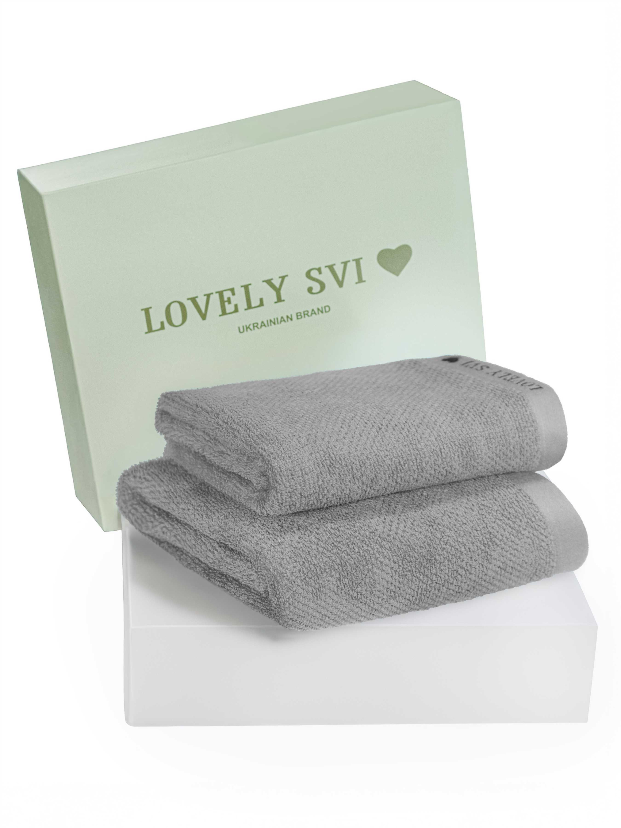 Набір 2 жакардові рушники в коробці Бежево - сірий Lovely Svi модель 160226