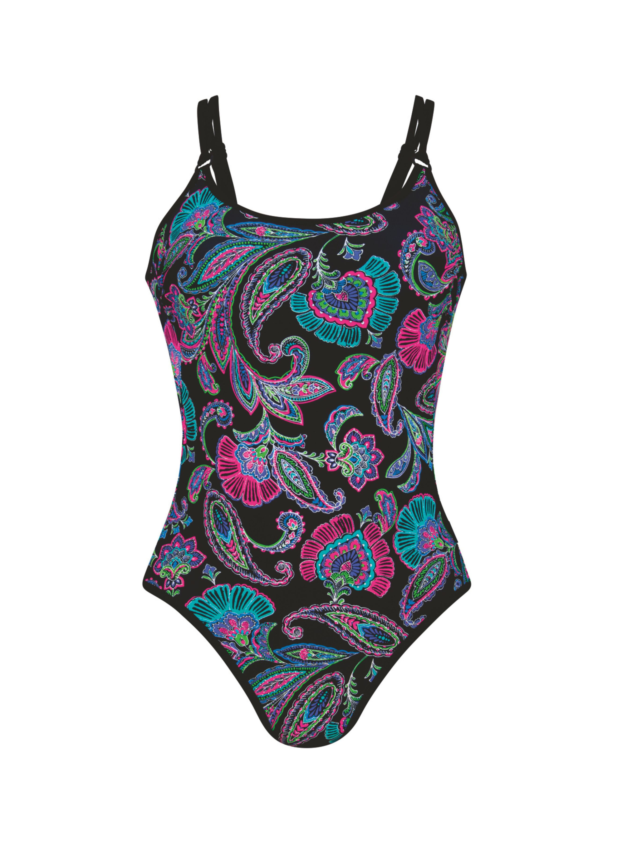Купальник цільний Anita Marinet.7724 Цільний купальник Marinet поєднує в собі класичний крій та ультрасучасний принт. Чорна окантовка створює контраст із основним яскравим принтом. Глибокий виріз на спині В області грудей – сітчаста тканина на еластичній стрічці, відмінно підтримує груди і надає їм форму. Тканина Мікроволокно Soft Touch із додаванням LYCRA™. Тканина не боїться хлорованої води та крему від засмаги. Виріб не втрачає форми та функціональності і служить дуже довго. Після оформлення замовлення з Вами зв'яжеться консультант для допомоги у підборі розміру