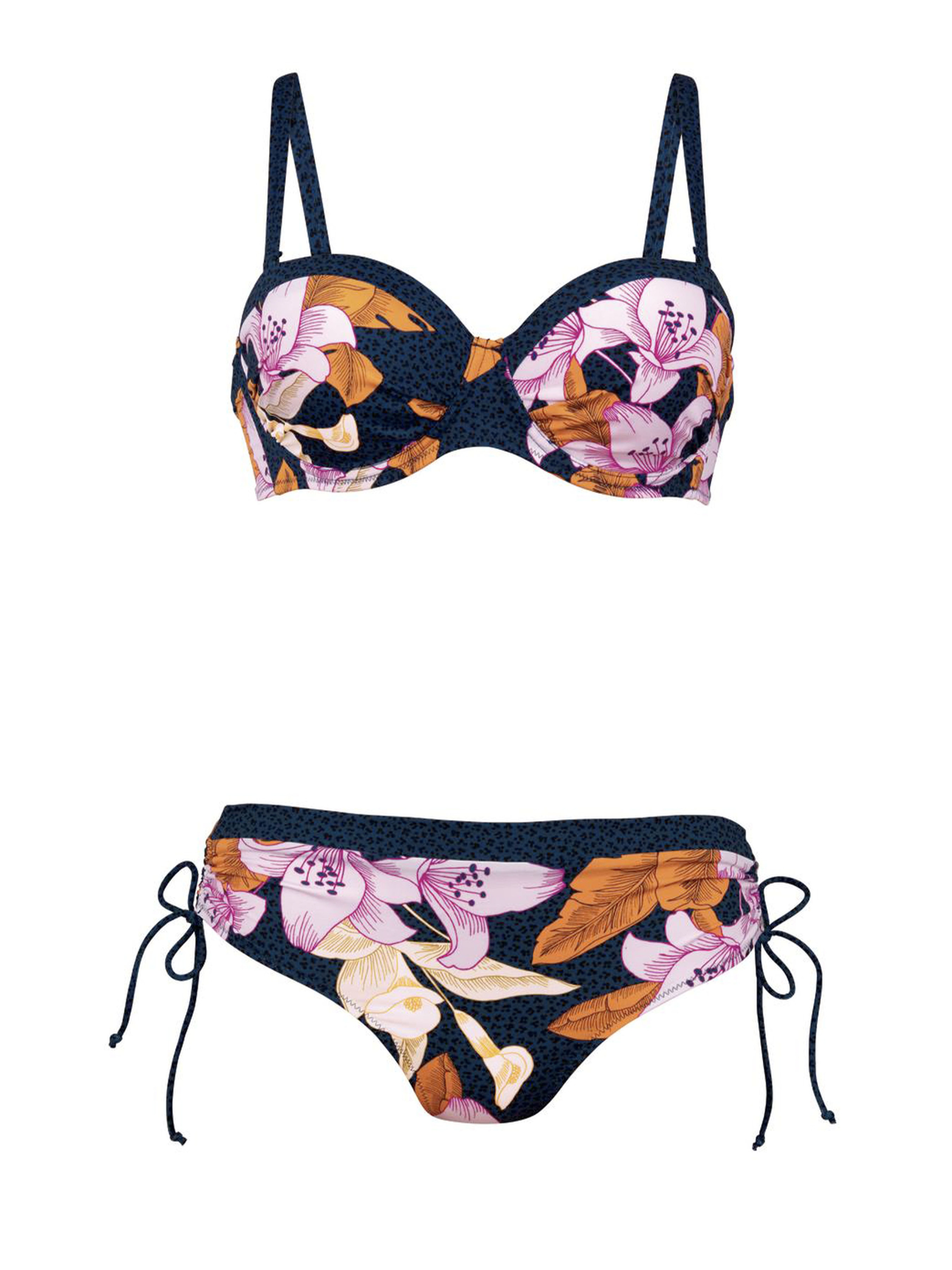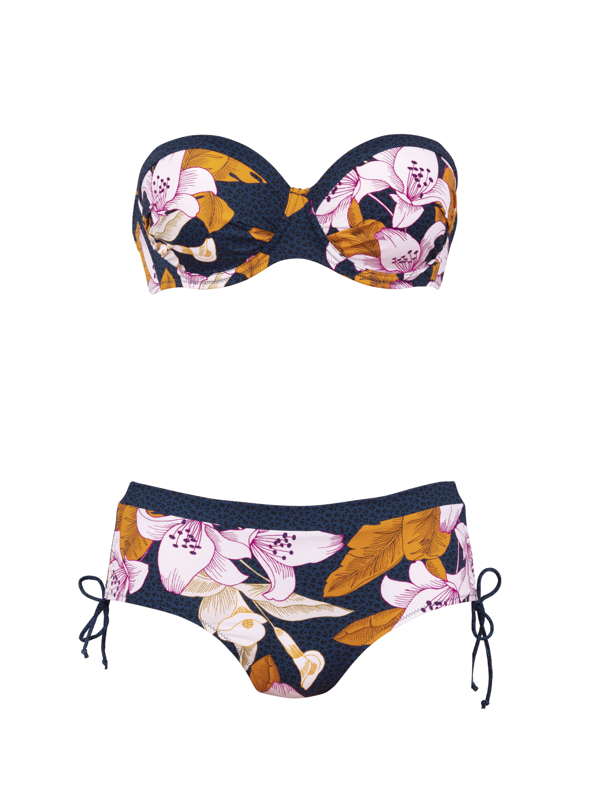 Купальник роздільний AnitaCassie.8823 Контраст лілій та модного леопардового принту створюють ідеальний пляжний образ. Елегантний топ-бандо: - Щільні чашки з мікроволокна, що дихає, на гнучкій кісточці - Пояс топа з боків посилений вертикальною кісточкою - Зйомні бретелі Плавки-хіпстери високої посадки з низьким вирізом по нозі, на підкладці спереду. Регулюються за висотою за допомогою вузьких зав'язок у бічних швах. Талія оброблена контрастним поясом. Тканина: LYCRA® XTRA LIFE™. Тканина не боїться хлорованої води та крему від засмаги. Виріб не втрачає форми та функціональності і служить дуже довго.