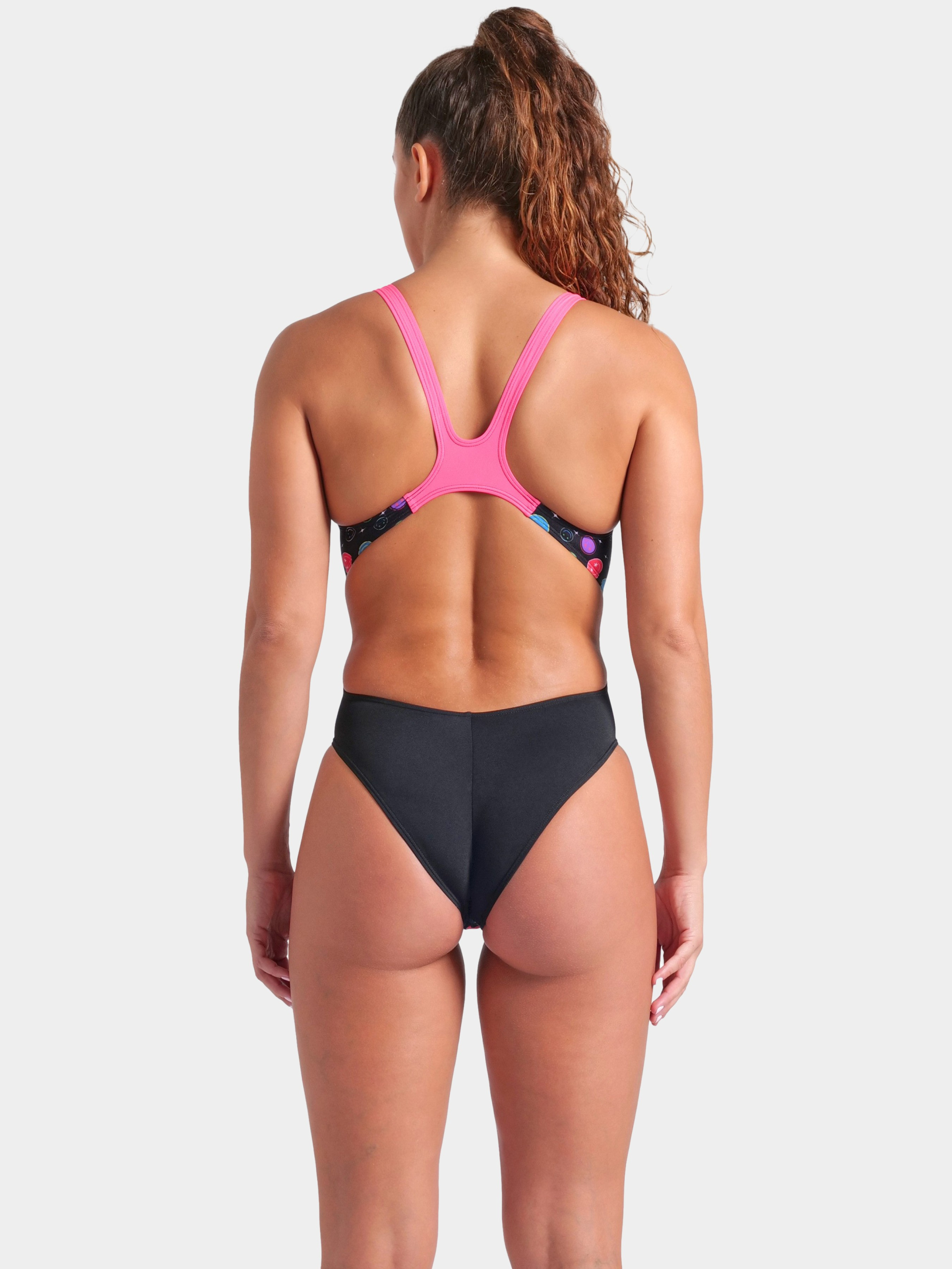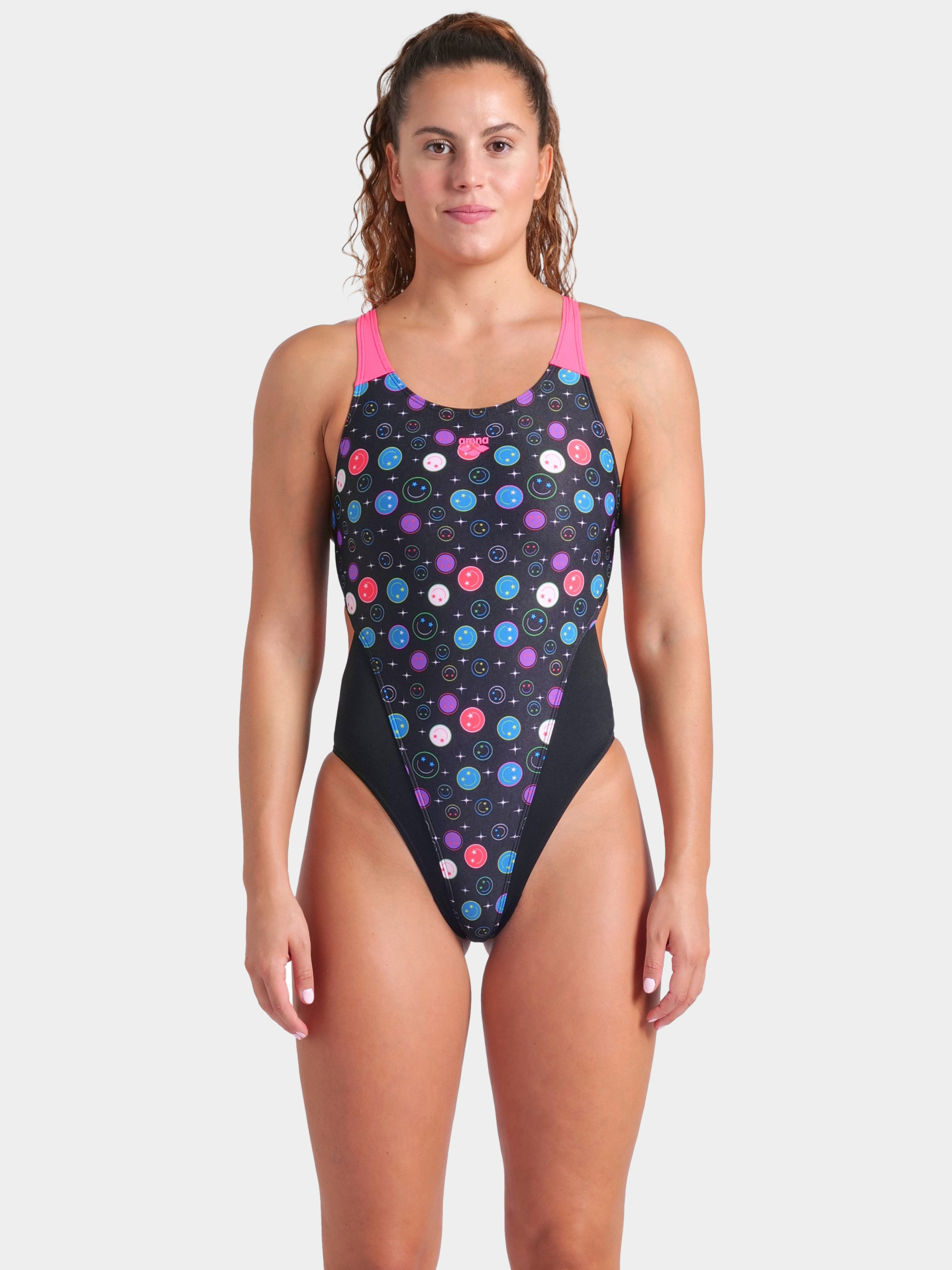 Купальник Contour Swimsuit - це сміливий і довговічний вибір для тих, хто хоче додати яскравості у свої тренування. Стильний чорний фон прикрашений грайливим принтом усміхнених смайликів із зоряними очима, а контрастні яскраво-рожеві лямки надають образу додаткової виразності. Купальник виготовлений щонайменше на 50% з переробленого поліестеру, поєднуючи в собі екологічність і високу функціональність - ідеальний варіант для тих, хто звик виходити за межі, як у воді, так і за її межами. Матеріал MaxLife Eco - інноваційна тканина для купальників з максимальною стійкістю до хлору, що забезпечує довговічність і відмінну посадку. Вона складається щонайменше на 50% з переробленого поліестеру, а також має високу еластичність, захист від вигоряння і UV-фільтр 50+.