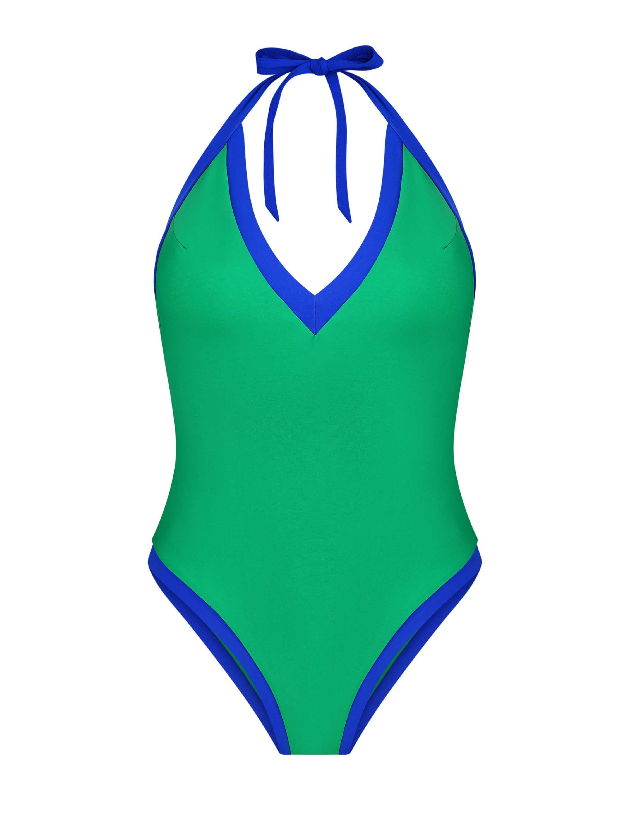 - Суцільний купальник без чашок та без каркасів; - Розрахований на зріст від 170 см до 180 см; - Купальник має нагрудні виточки з боків для кращої посадки; - Верхня частина купальника представлена у вигляді трикутного топу; - Чашка купальника переходить в широкі бретелі, які зав'язуються на шиї. Завдяки цьому, купальник можна відкоригувати по зросту; - Нижня частина купальника представлена у вигляді трусиків-сліпів з високими вирізами на стегнах, що візуально подовжують силует; - Нижні краї оброблені еластичною тасьмою, яка запобігатиме скручуванню полотна на тілі. Склад: - Основна тканина: 84% поліамід, 16% еластан; - Підкладка: 92% поліамід, 8% еластан.