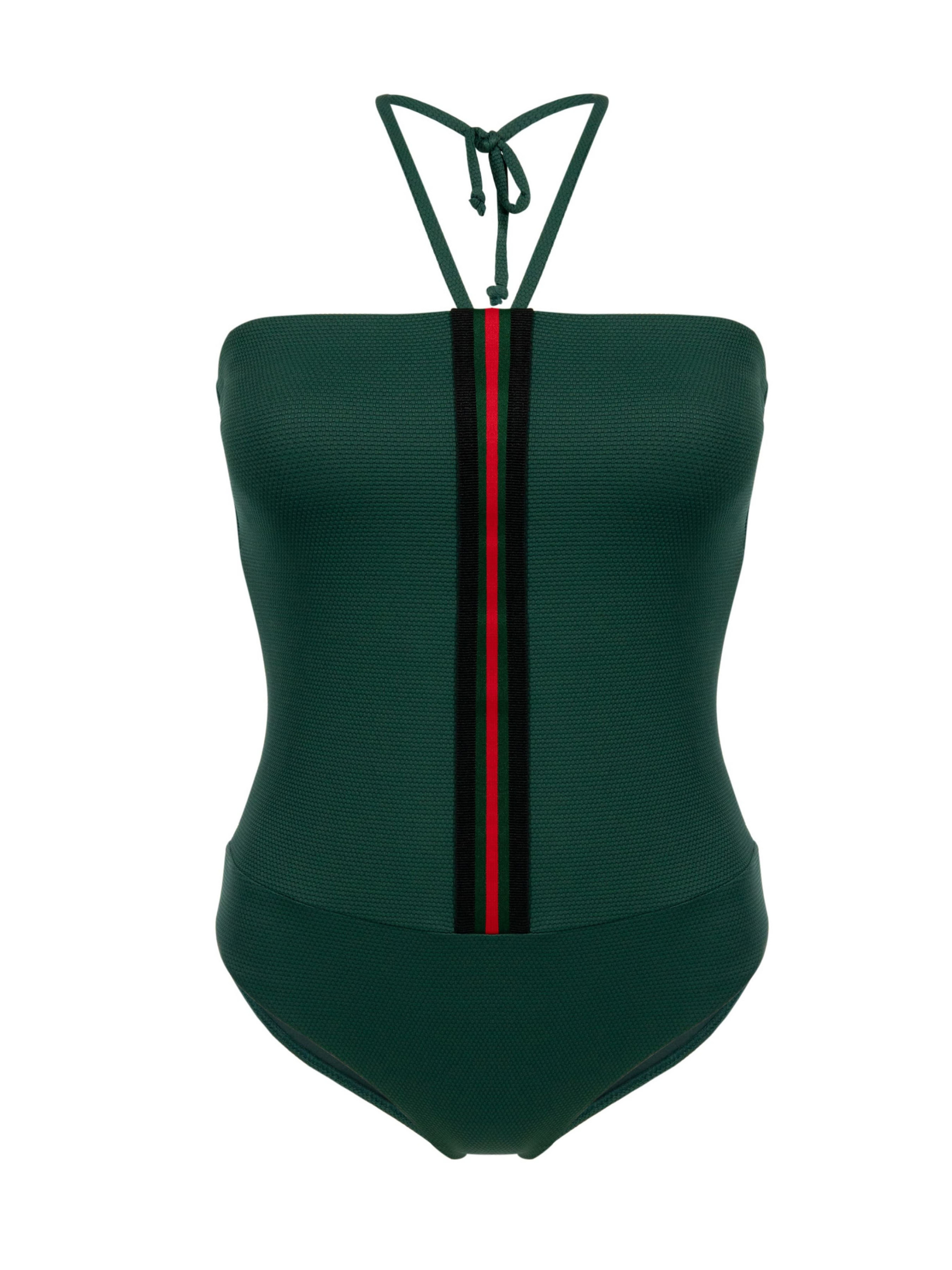 - Суцільний купальник-бандо із топом на зав'язках та глибоким вирізом ззаду; - Завдяки фактурному полотну, підкладці та вертикальній смугастій резинці купальник робить фігуру візуально стрункішою; - Верхня частина купальника представлена у вигляді топу-бандо із знімними вкладишами; - Чашки купальника зсередини прошиті еластичною резинкою, що забезпечить кращу фіксацію купальника на грудях; - Ззаду топ фіксується за допомогою двох широких декоративних резинок та зав'язки зверху; - Нижня частина купальника представлена у вигляді трусиків-сліп з глибокими вирізами; - Нижні краї оброблені еластичною тасьмою, яка запобігатиме скручуванню полотна на тілі. Склад: - Тканина: 90% поліамід, 10% еластан; - Підкладка: 88% поліестер, 12% еластан.