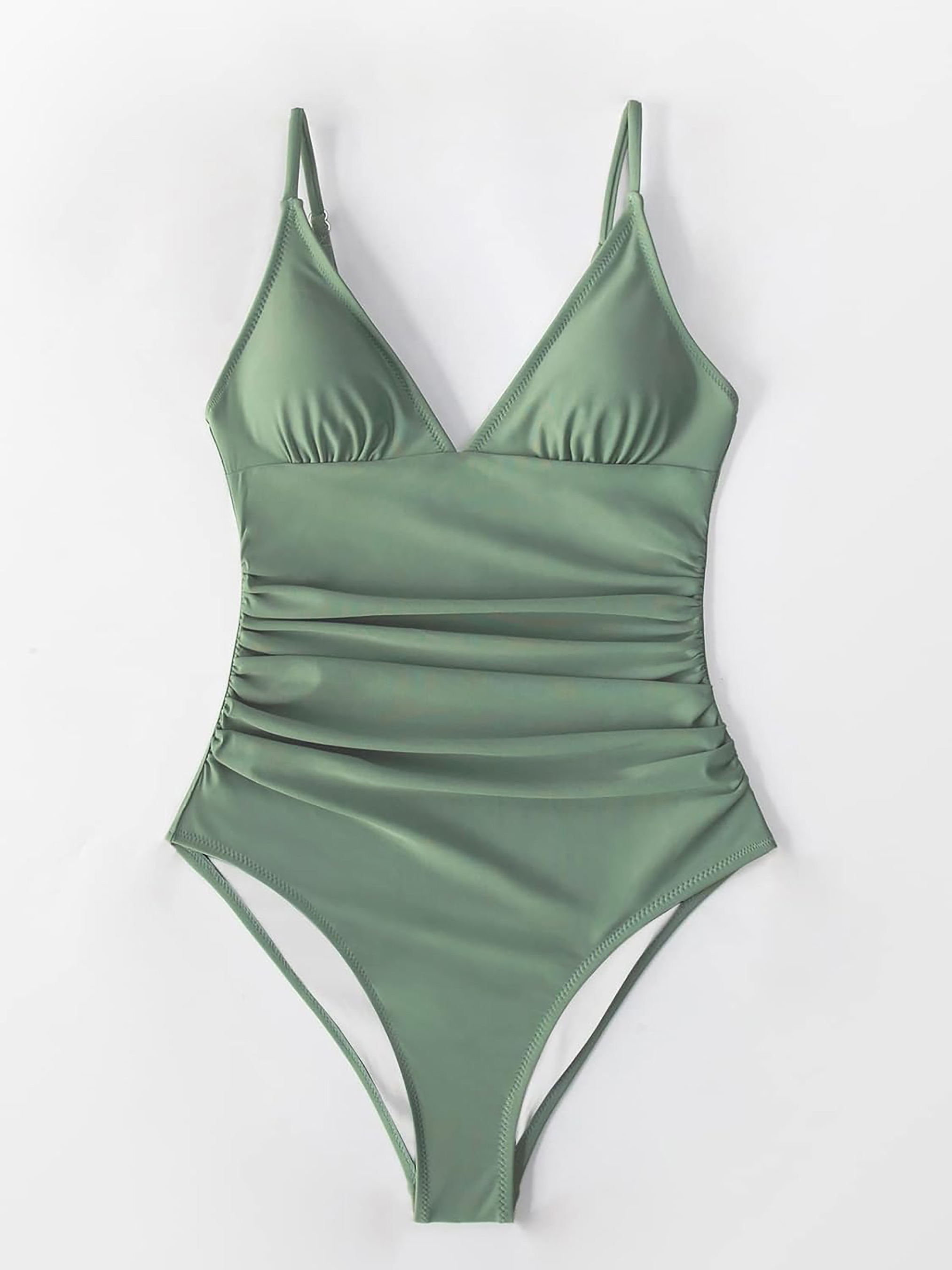Злитий купальник з V-подібним вирізом, складанням на талії та регульованими бретельками. З м'якими знімними чашками. Найкращі святкові подарунки для мами, дружини, дівчата або жінки, яку ви любите. Ідеально підходить для тропічної відпустки, літа, пляжу та басейну, медового місяця, круїзу. Склад: верх: 80% поліамід, 20% еластан/підкладка: 92% поліестер, 8% еластан