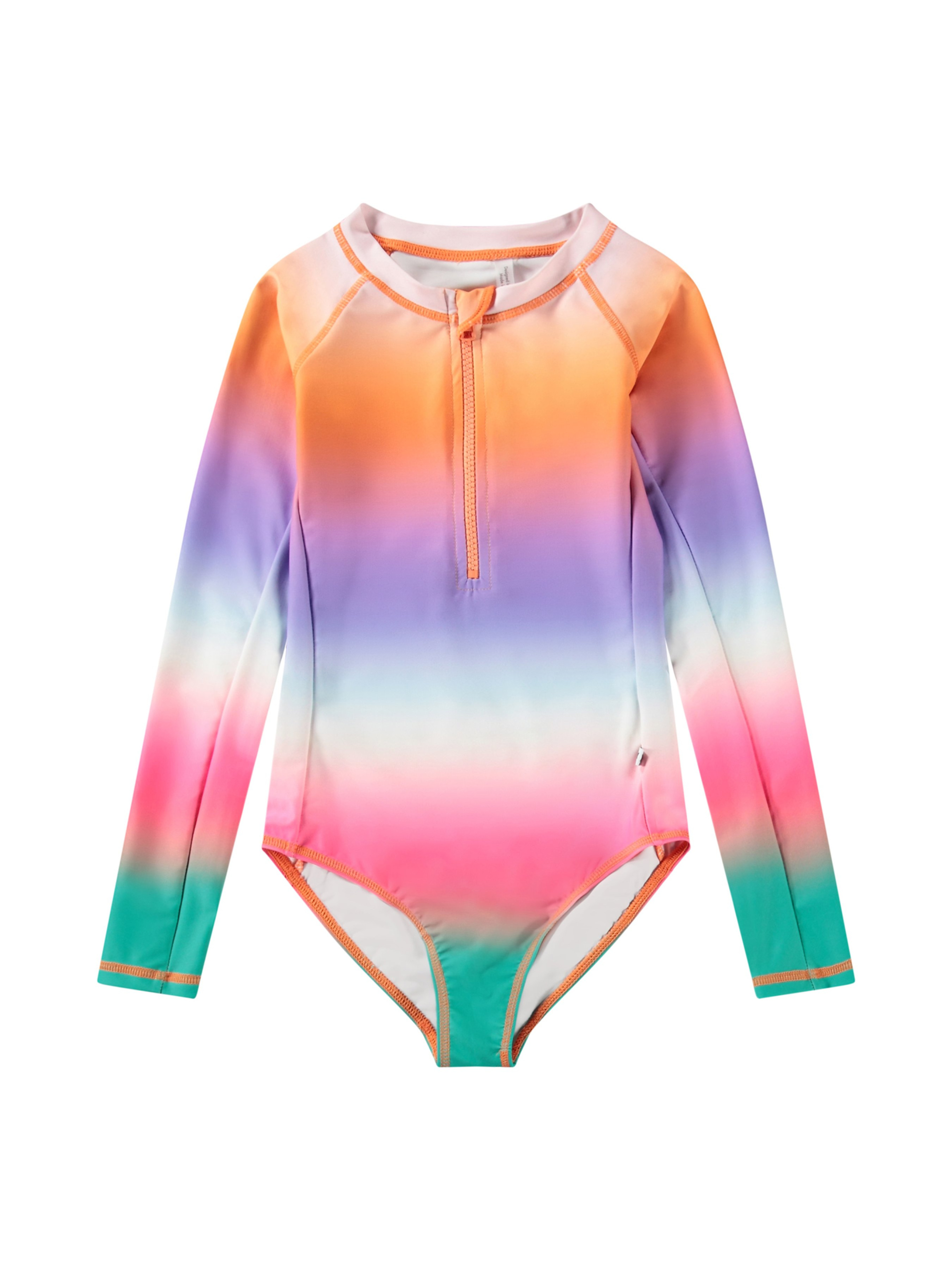 Закритий купальник Molo "Necky Magic Fade" з рукавами. Особливості: захист від ультрафіолетового випромінювання – UPF 50+; містить не менше 50% поліестеру з перероблених матеріалів, сертифікованого GRS (Global Recycled Standard)*; декоровано принтом кольорового градієнта; спереду застібка-"блискавка" із захистом підборіддя; довгі рукави. Купальник Molo – це чудовий вибір для купання, відпочинку на пляжі та яскравих фотосесій юної леді. *GRS – це міжнародний і добровільний стандарт продукції, що перевіряє та відстежує перероблені матеріали від початкової сировини до кінцевого продукту.