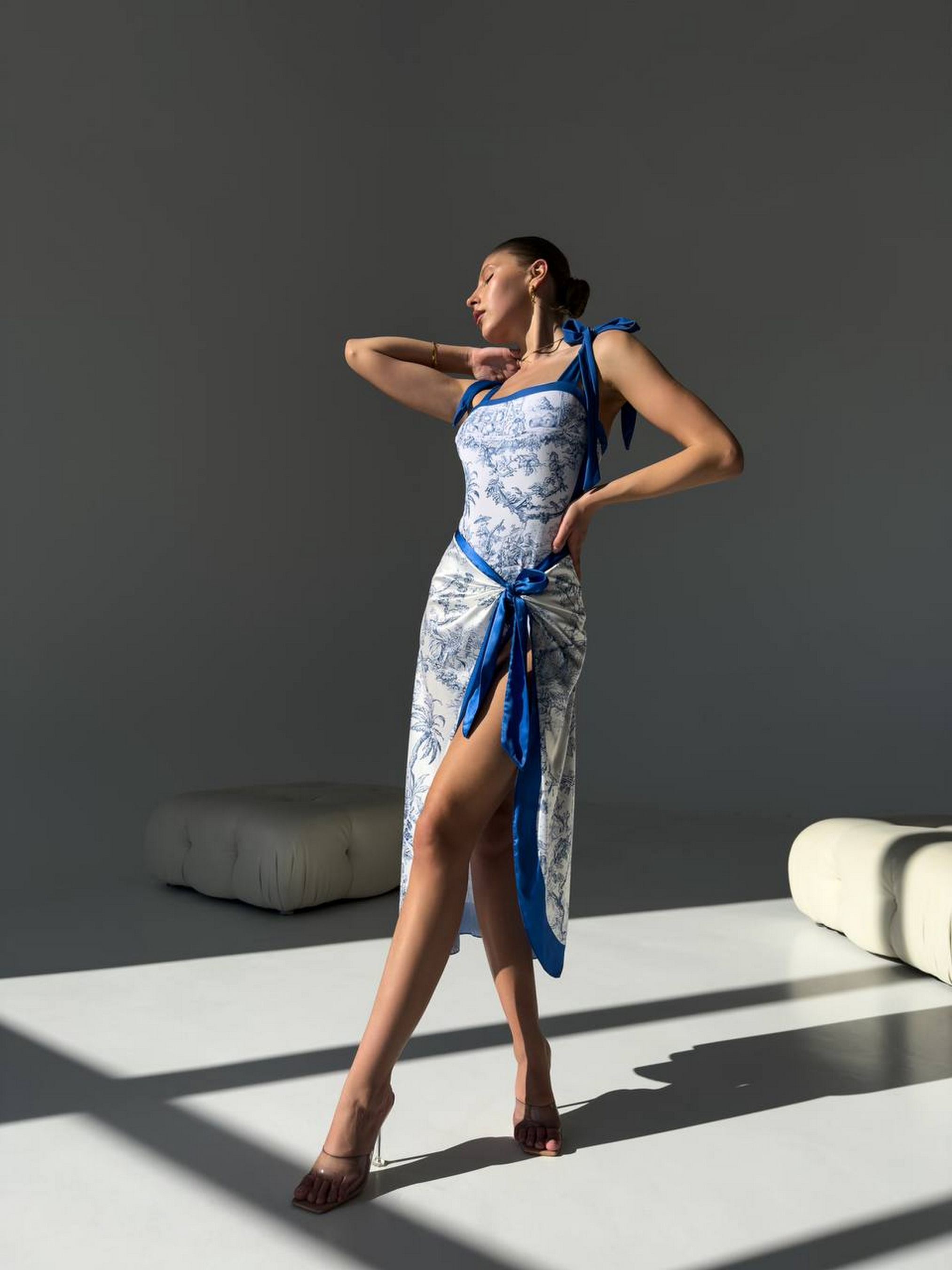 Пляжний комплект жіночий (купальник, парео) Елегантний принт у біло-блакитних тонах + грайливі зав’язки на плечах + легке парео — створено для натхненних моментів біля моря. Щільна тканина біфлекс, що моделює фігуру. В бюсті знімні поролонові чашки. Щовкове парео в тон — легке, неймовірно красиве. Вишуканий декор і кольори, що підкреслюють засмагу. Розмірна сітка: S: груди 85-91, стегна 86-94 М: груди 90-94, стегна 94-98 L : груди 95-98, стегна 98-105 XL: груди 99-105, стегна 105-110 Товар обміну та поверненню не підлягає!