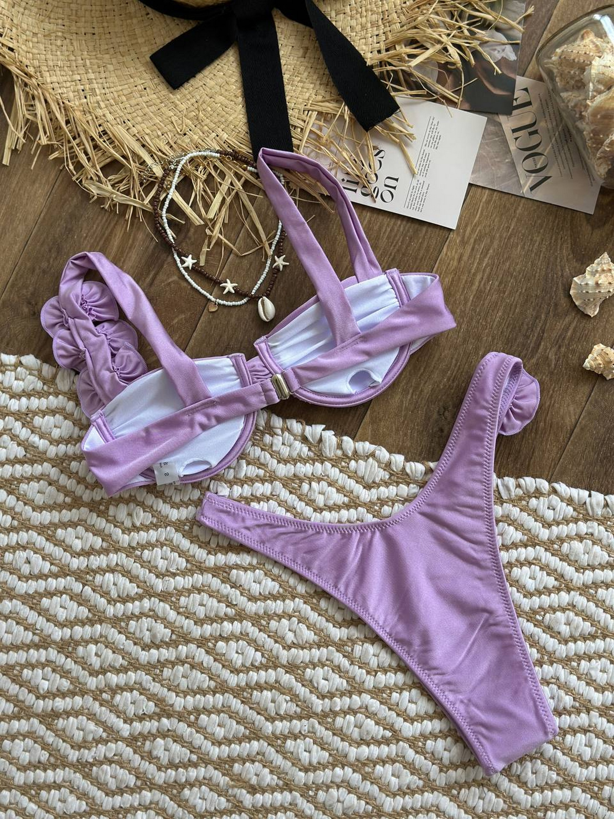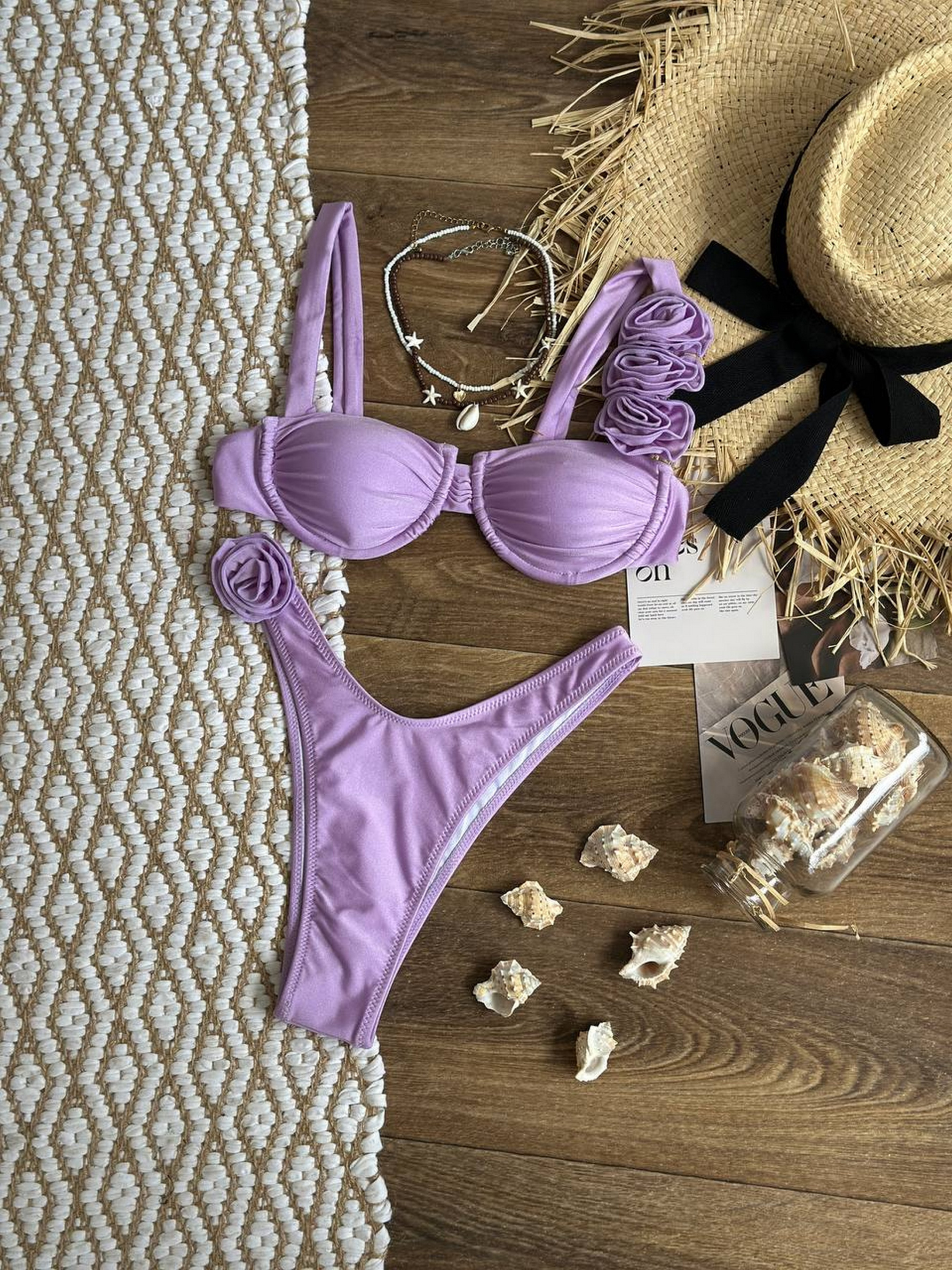 Роздільний купальник жіночий Роздільний купальник з прикрасами у вигляді декоративних квітів. Бюст має вставні поролонові чашечки. Тканина легка та приємна до тіла, швидко сохне та не втрачає свій колір на сонці. Розмірна сітка: S: груди 85-89, стегна 88-94 М: груди 89-93, стегна 93-99 L: груди 94-98, стегна 98-105 Товар обміну та поверненню не підлягає!