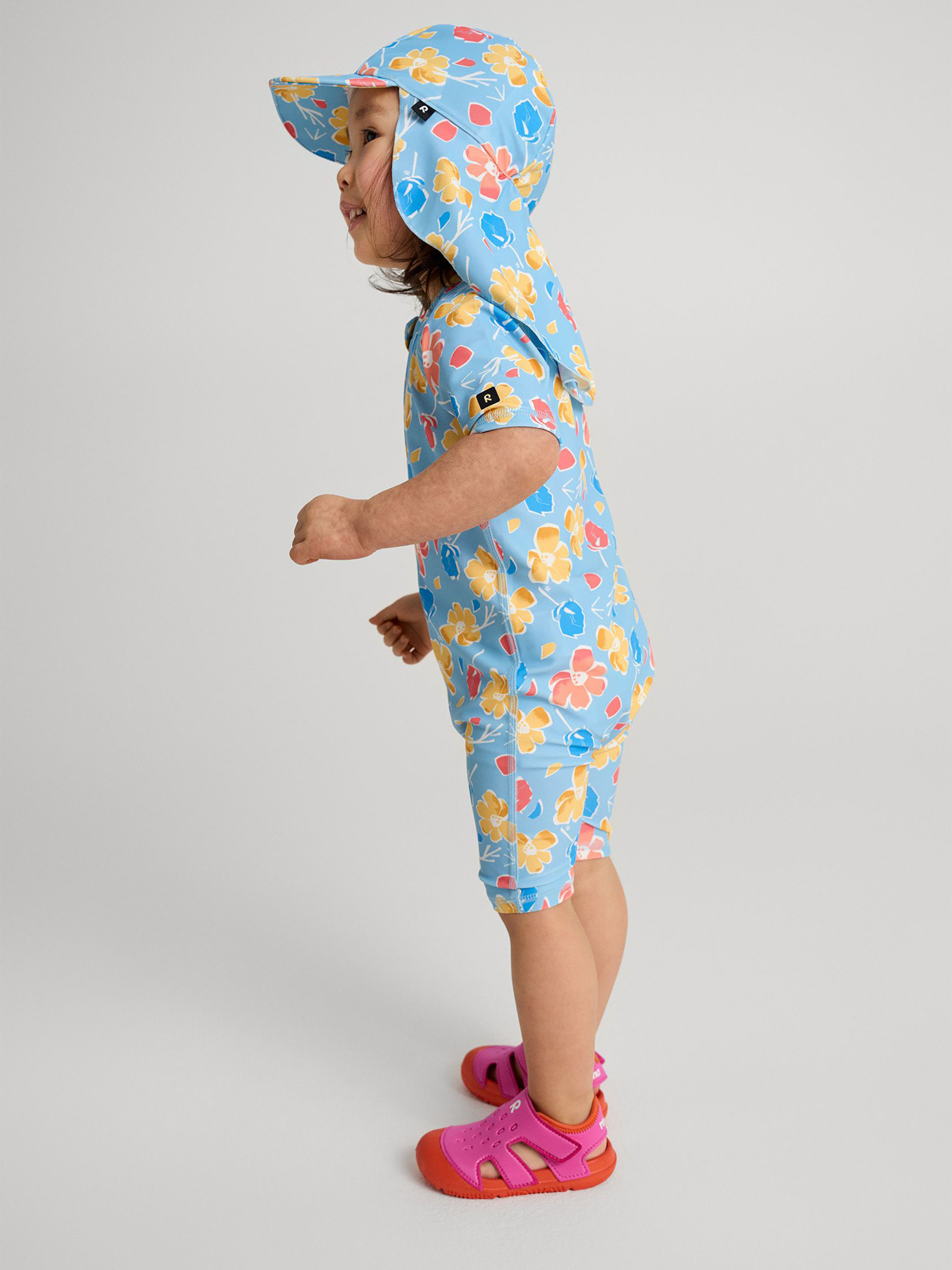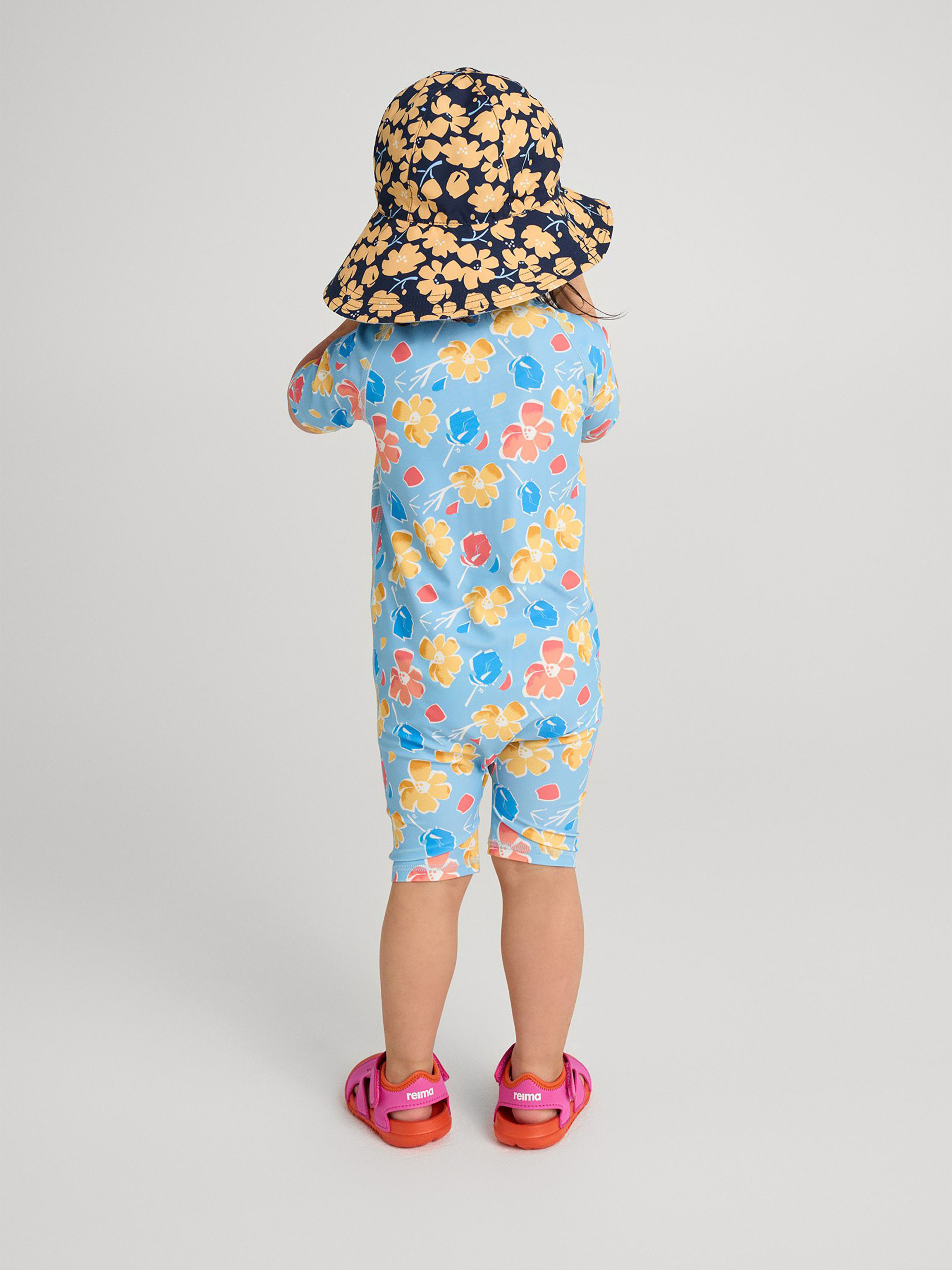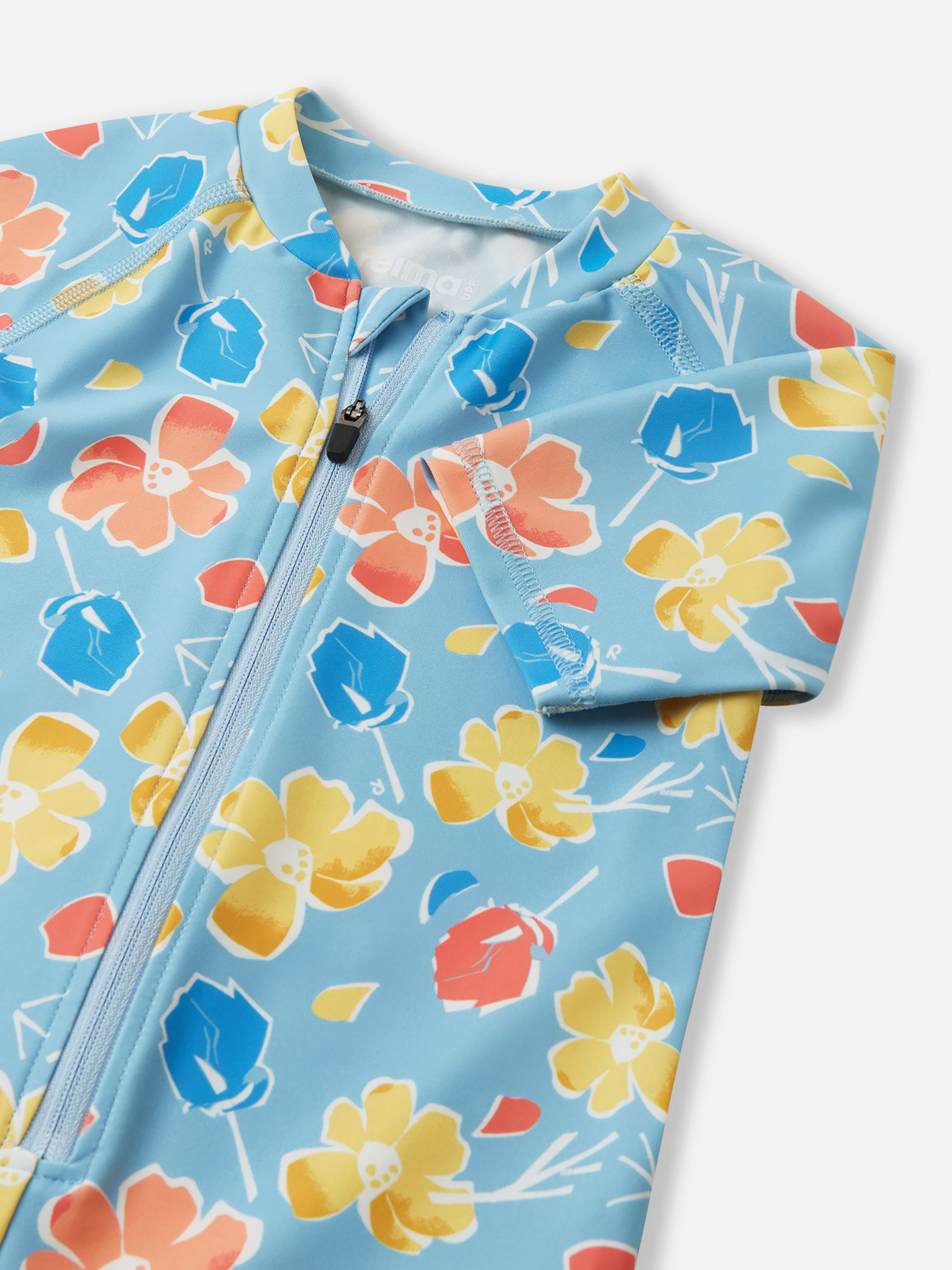 Комбінезон для плавання . Склад: 83% поліестер, 17% еластан Матеріал: SunProof jersey rec УФ захист 50+ Еластичний матеріал Відводить вологу від шкіри Швидковисихаючий матеріал Перероблений матеріал Містить перероблені волокна із сертифікатом якості|Плоскі шви забезпечують додатковий комфорт|Reima SunProof: фактор захисту від ультрафіолету 50+|Рукави до ліктів і холоші до колін|Легко надягати завдяки блискавці|Напівавтоматична застібка на блискавці, що захищає від випадкового відкриття|Принт по всій поверхні Догляд: Прати з білизною однакового кольору, вивернувши навиворіт. Прати у спеціальному мішку. Застебнути блискавки. Прати миючим засобом, що не містить відбілюючих речовин. Полоскати без спеціального засобу. Сушити у захищеному від сонця місці. Після застосування прополоскати чистою водою. Комбінезон для плавання Atlantti забезпечить комфорт та захист вашого малюка під час літніх пригод. Його швидковисихаючий еластичний матеріал відводить вологу, зберігаючи шкіру сухою під час гри на піску, а захист від ультрафіолету SPF 50+ дозволяє довше грати на сонці. Плоскі шви запобігають натиранню шкіри, а напівавтоматична блискавка дозволяє легко одягнутись, але не розстебнеться самостійно. Вашій дитині сподобаються милі принти, а ви оціните практичний та зручний дизайн. Цей універсальний комбінезон для плавання ідеально підходить для купання в морі, ігор на пляжі, біля басейну або прогулянок заднім двором у спекотний сонячний день. Не забувайте наносити сонцезахисний лосьйон на відкриті ділянки шкіри.