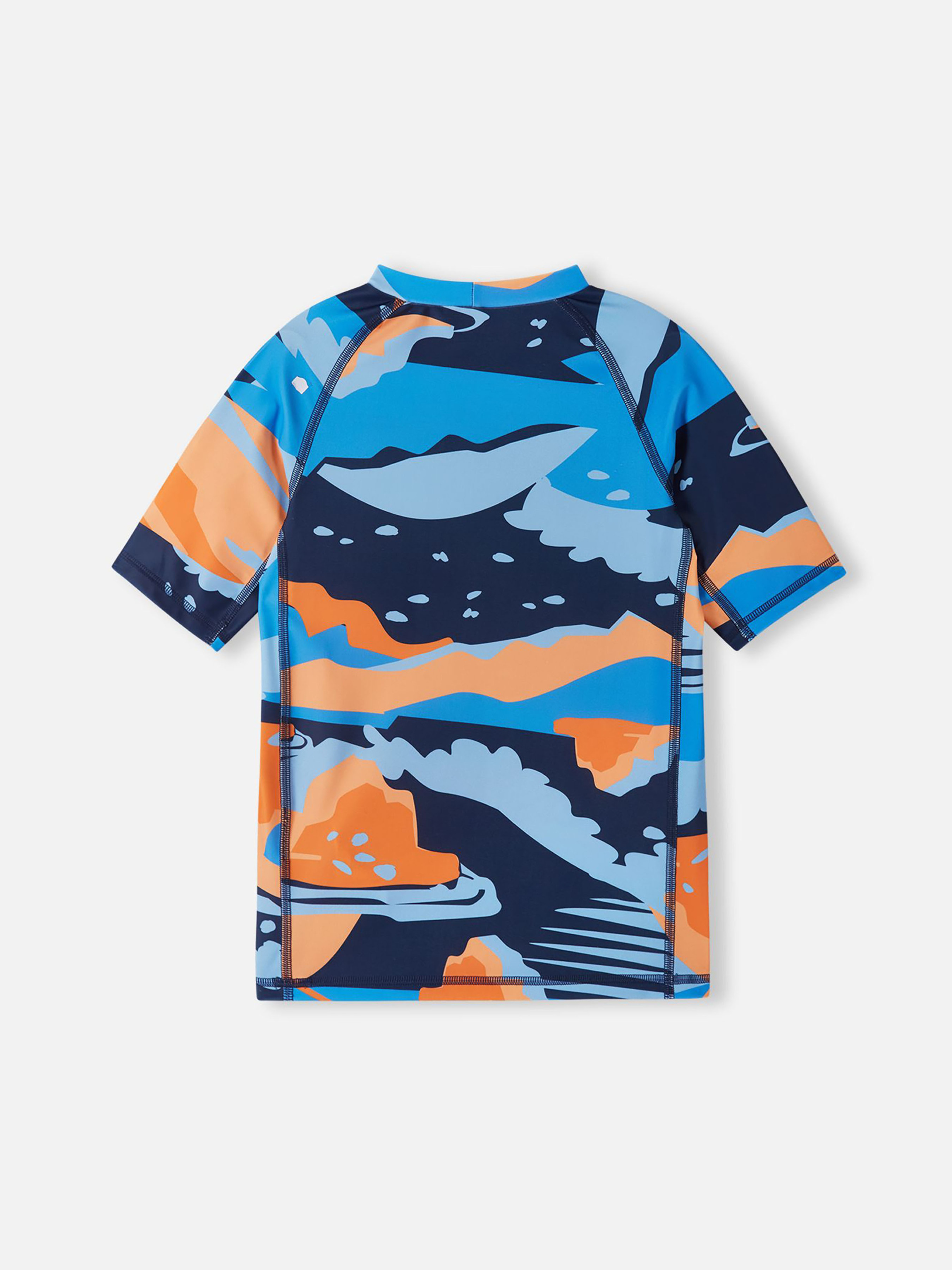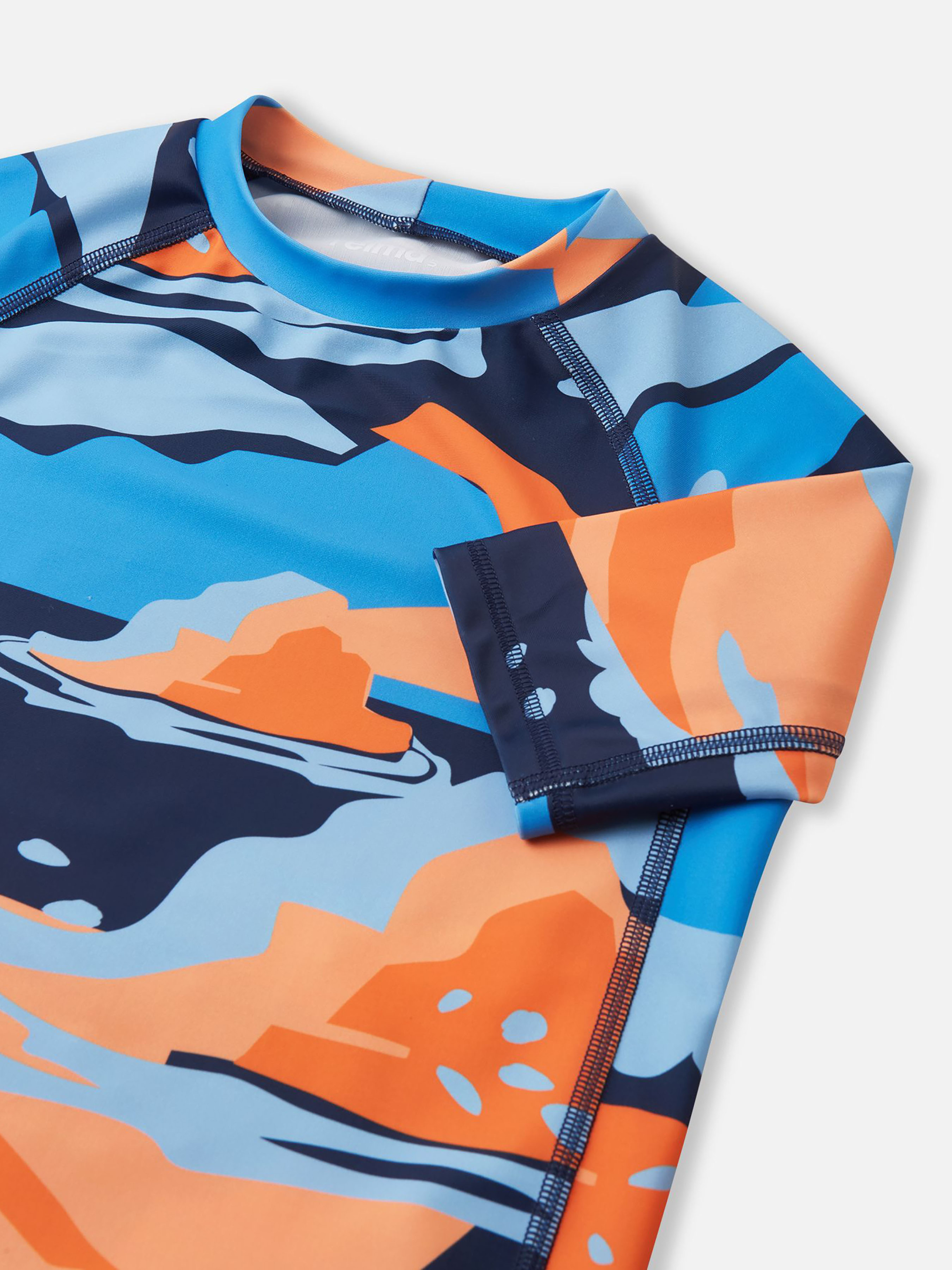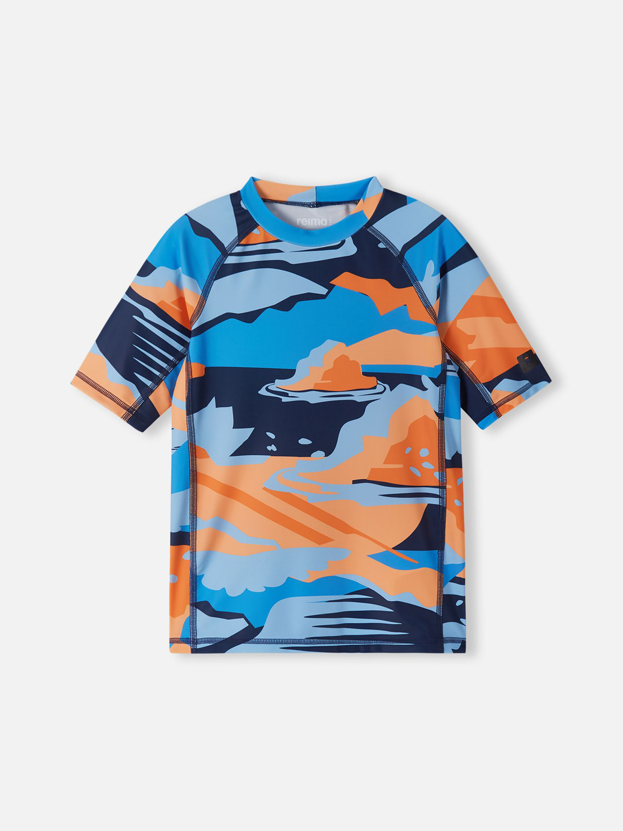Футболка для плавання. Склад: 83% поліестер, 17% еластан Матеріал: SunProof jersey rec УФ захист 50+ Еластичний матеріал Відводить вологу від шкіри Швидковисихаючий матеріал Перероблений матеріал Містить перероблені волокна із сертифікатом якості|Плоскі шви забезпечують додатковий комфорт|Reima SunProof: фактор захисту від ультрафіолету 50+|Бокові вставки на рукавах та тілі для повної свободи рухів|Принт по всій поверхні Догляд: Прати з білизною однакового кольору, вивернувши навиворіт. Прати у спеціальному мішку. Прати миючим засобом, що не містить відбілюючих речовин. Полоскати без спеціального засобу. Сушити у захищеному від сонця місці. Після застосування прополоскати чистою водою. Дитяча футболка для плавання Uiva забезпечує комфорт та захист дітей під час ігор у воді. Швидкосохнучий еластичний матеріал відводить зайву валгу від шкіри, що дозволяє дитині більше часу проводити на сонці. Плоскі шви запобігають натиранню, а захист від ультрафіолету SPF 50+ захищає чутливу шкіру. Правильний крій з бічними вставками та плоскими швами дає дітям свободу рухів під час плавання та ігор. Ця неперевершена футболка для плавання Uiva створена для максимального задоволення від ігор на сонці. Зверніть увагу: для безпечного проведення часу на сонці діти завжди повинні носити головний убір та сонцезахисні окуляри, а відкриті ділянки шкіри слід захищати сонцезахисним лосьйоном.