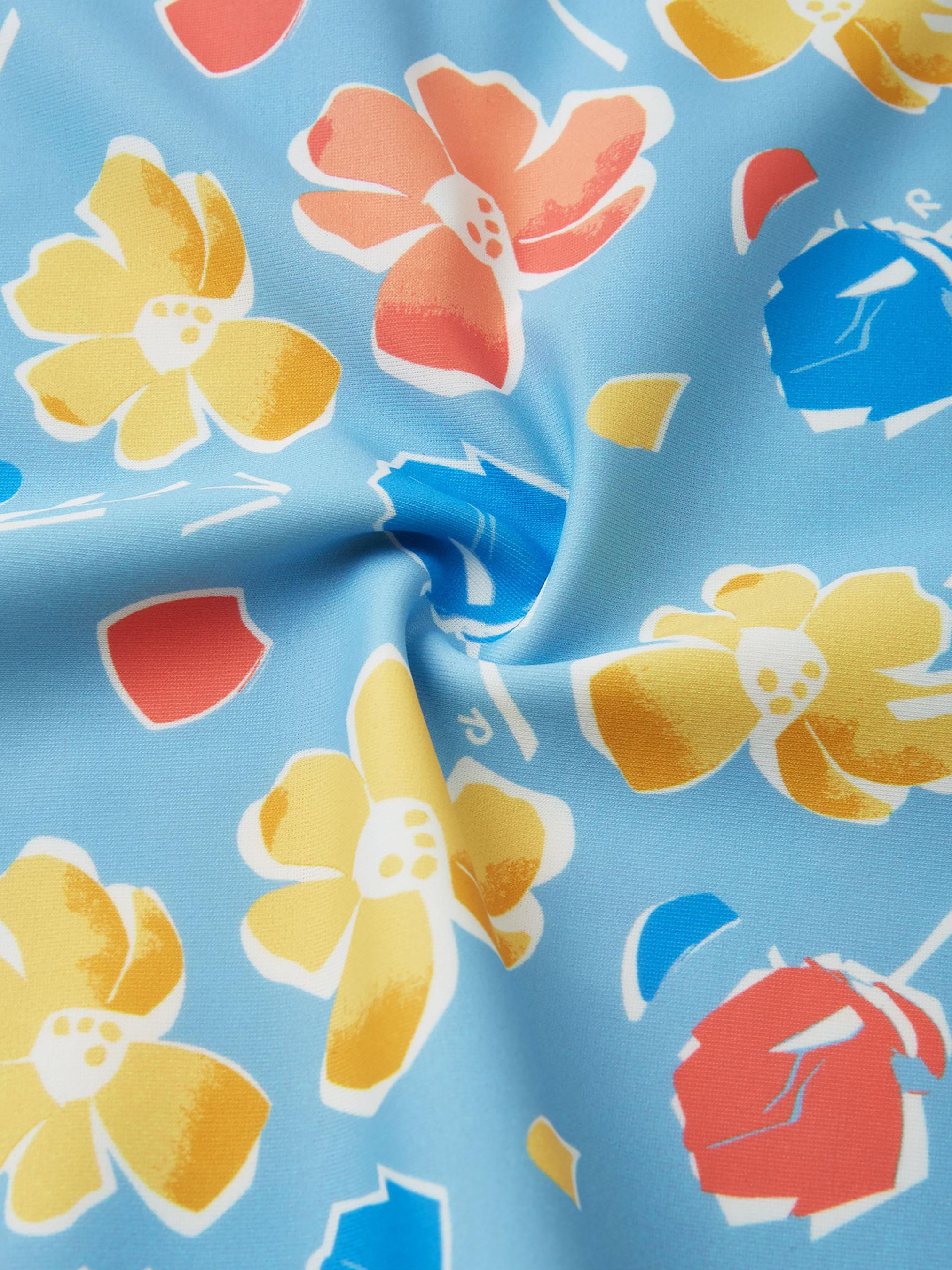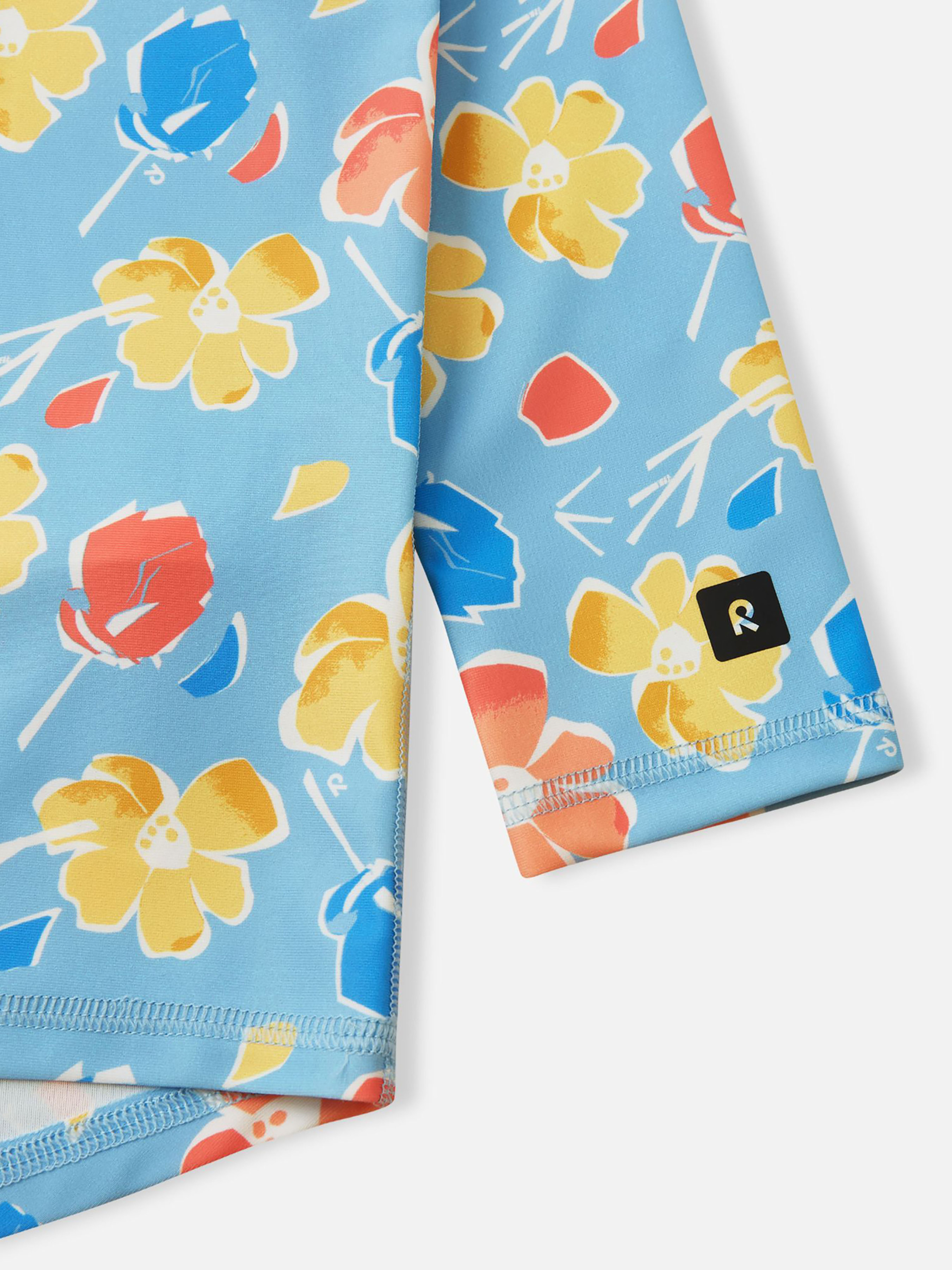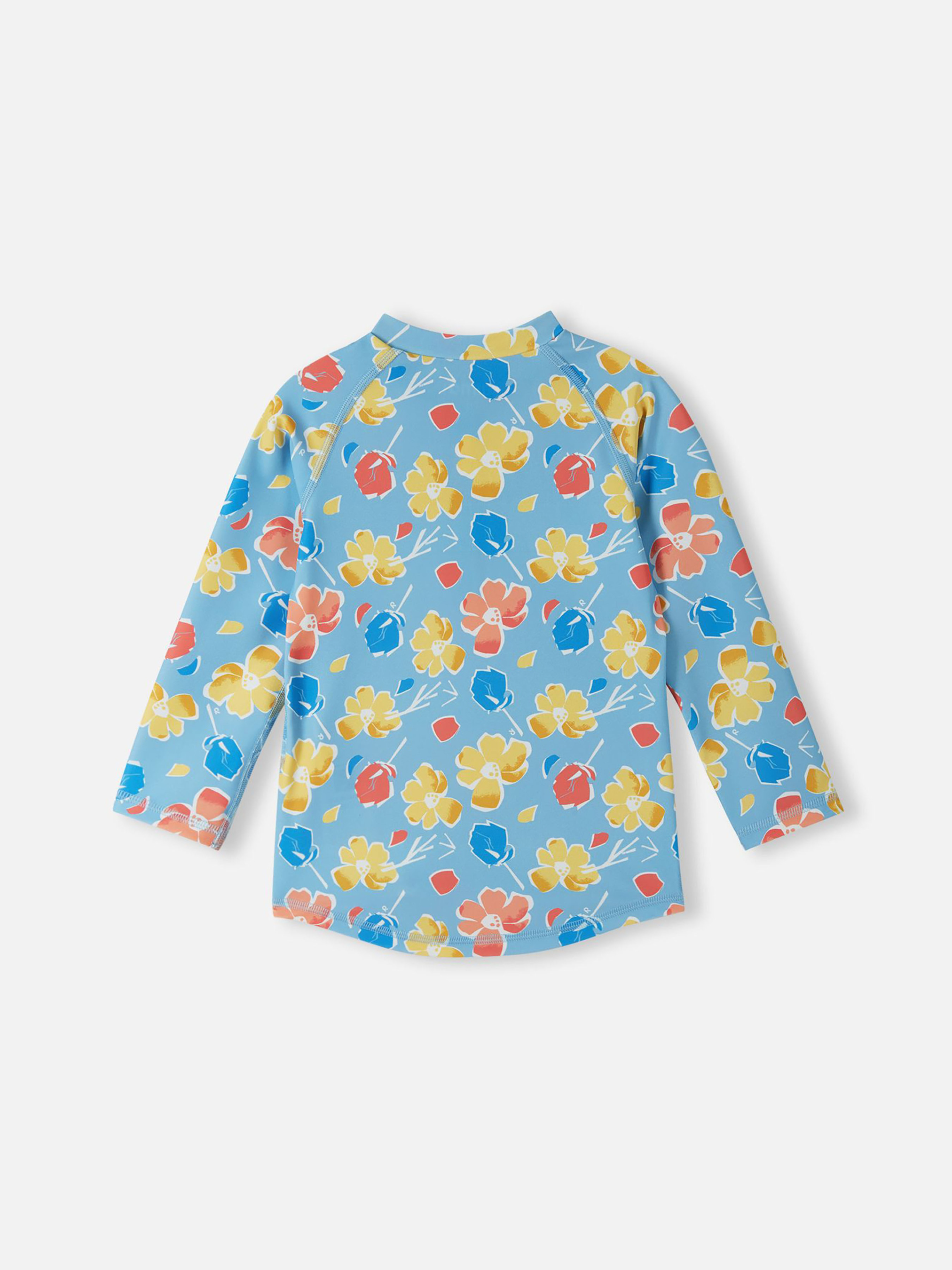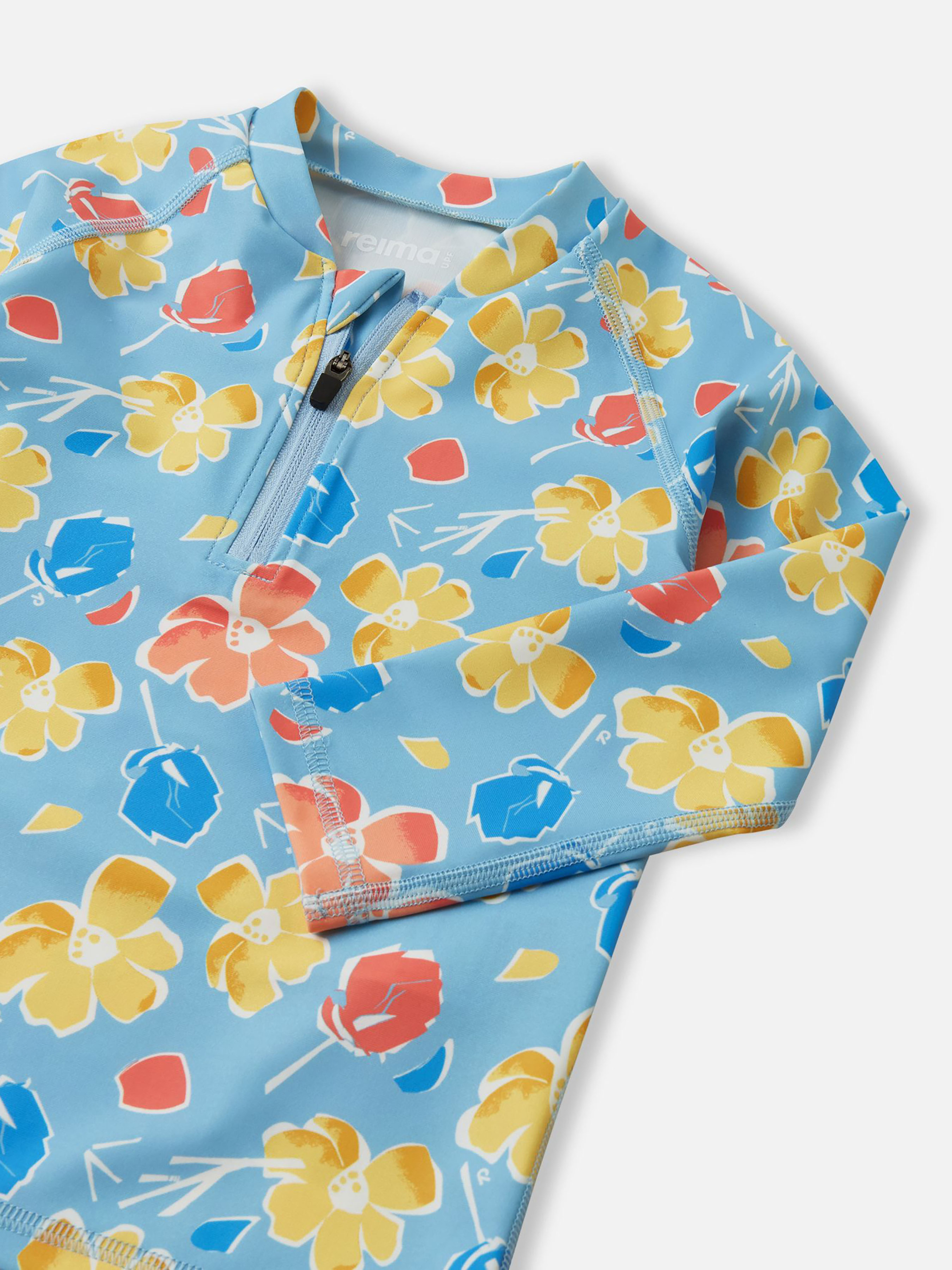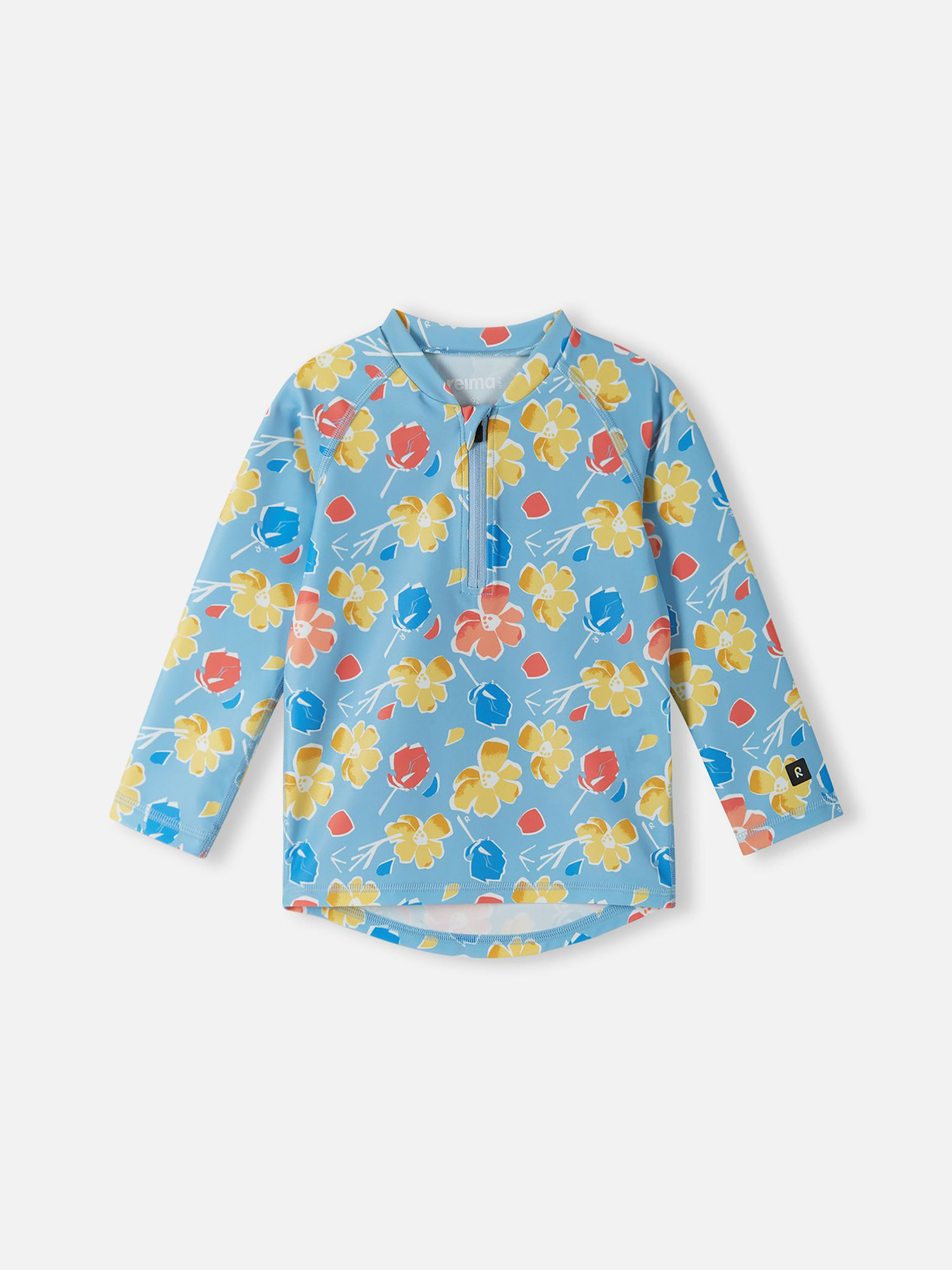 Футболка для плавання. Склад: 83% поліестер, 17% еластан Повітропровідність: >7000 Повітропровідність основного матеріалу: >7000 Матеріал: SunProof jersey rec УФ захист 50+ Еластичний матеріал Відводить вологу від шкіри Швидковисихаючий матеріал Перероблений матеріал Містить перероблені волокна із сертифікатом якості|Футболка для плавання з довгими рукавами|Reima SunProof: фактор захисту від ультрафіолету 50+|М'які плоскі шви для додаткового комфорту: не подразнюють шкіру|Подовжений подол ззаду для додаткового захисту|Блискавка спереду|Напівавтоматична застібка на блискавці, що захищає від випадкового відкриття|Принт по всій поверхні Догляд: Прати з білизною однакового кольору, вивернувши навиворіт. Прати у спеціальному мішку. Застебнути блискавки. Прати миючим засобом, що не містить відбілюючих речовин. Полоскати без спеціального засобу. Сушити у захищеному від сонця місці. Після застосування прополоскати чистою водою. Цей лонгслів для плавання захистить вашого малюка під час веселощів на сонці та у воді. Еластичний, швидковисихаючий матеріал відводить вологу від шкіри при грі на сухій землі. Матеріал настільки тонкий та щільний, що забезпечує захист від ультрафіолету SPF 50+, що дозволяє довше грати на вулиці. Передня блискавка з напівавтоматичним замком запобігає випадковому розстібанню, а довший задній край додатково прикриває спину. Ця універсальна футболка з довгим рукавом ідеально підходить для літніх ігор на пляжі чи басейні. Не забувайте наносити сонцезахисний лосьйон на ділянки неприкритої одягом шкіри.