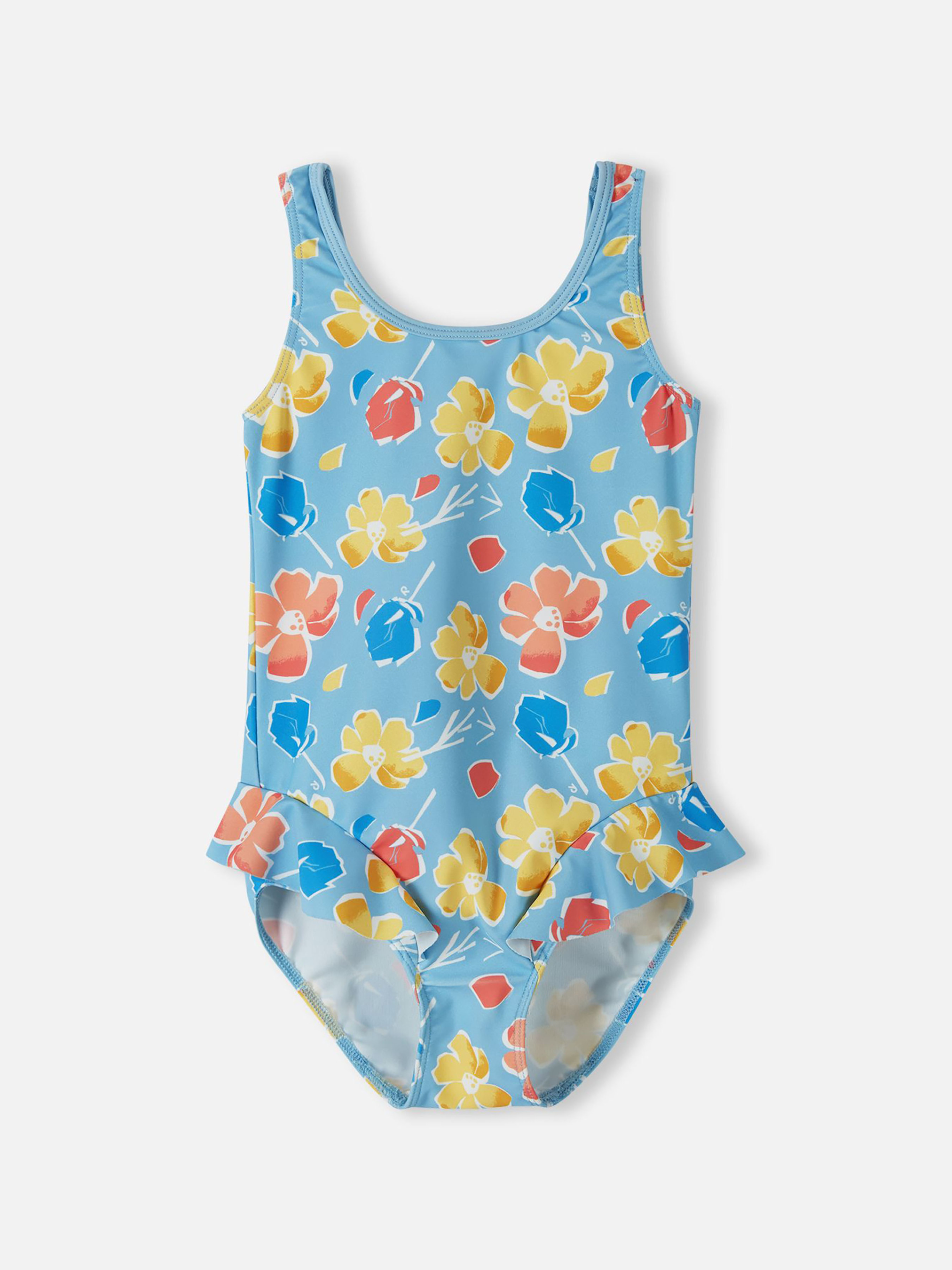 Склад: 83% поліестер, 17% еластан Матеріал: SunProof jersey rec УФ захист 50+ Еластичний матеріал Відводить вологу від шкіри Швидковисихаючий матеріал Перероблений матеріал Містить перероблені волокна із сертифікатом якості|Reima SunProof: фактор захисту від ультрафіолету 50+|Еластична підкладка спереду|Декоративні оборки|Принт по всій поверхні Догляд: Прати з білизною однакового кольору, вивернувши навиворіт. Прати у спеціальному мішку. Прати миючим засобом, що не містить відбілюючих речовин. Полоскати без спеціального засобу. Сушити у захищеному від сонця місці. Після застосування прополоскати чистою водою. Цей дитячий купальник забезпечує комфорт та захист під час ігор на сонці. Еластичний матеріал швидко висихає, відводить вологу від шкіри та забезпечує захист від ультрафіолету SPF 50+, дозволяючи отримувати більше задоволення від ігор на сонці. Вашій дитині сподобається свобода рухів, яку забезпечує цей купальник. Не забувайте захищати не прикриті ділянки шкіри безпечним сонцезахисним лосьйоном і завжди надягайте головний убір, коли граєте на сонці.