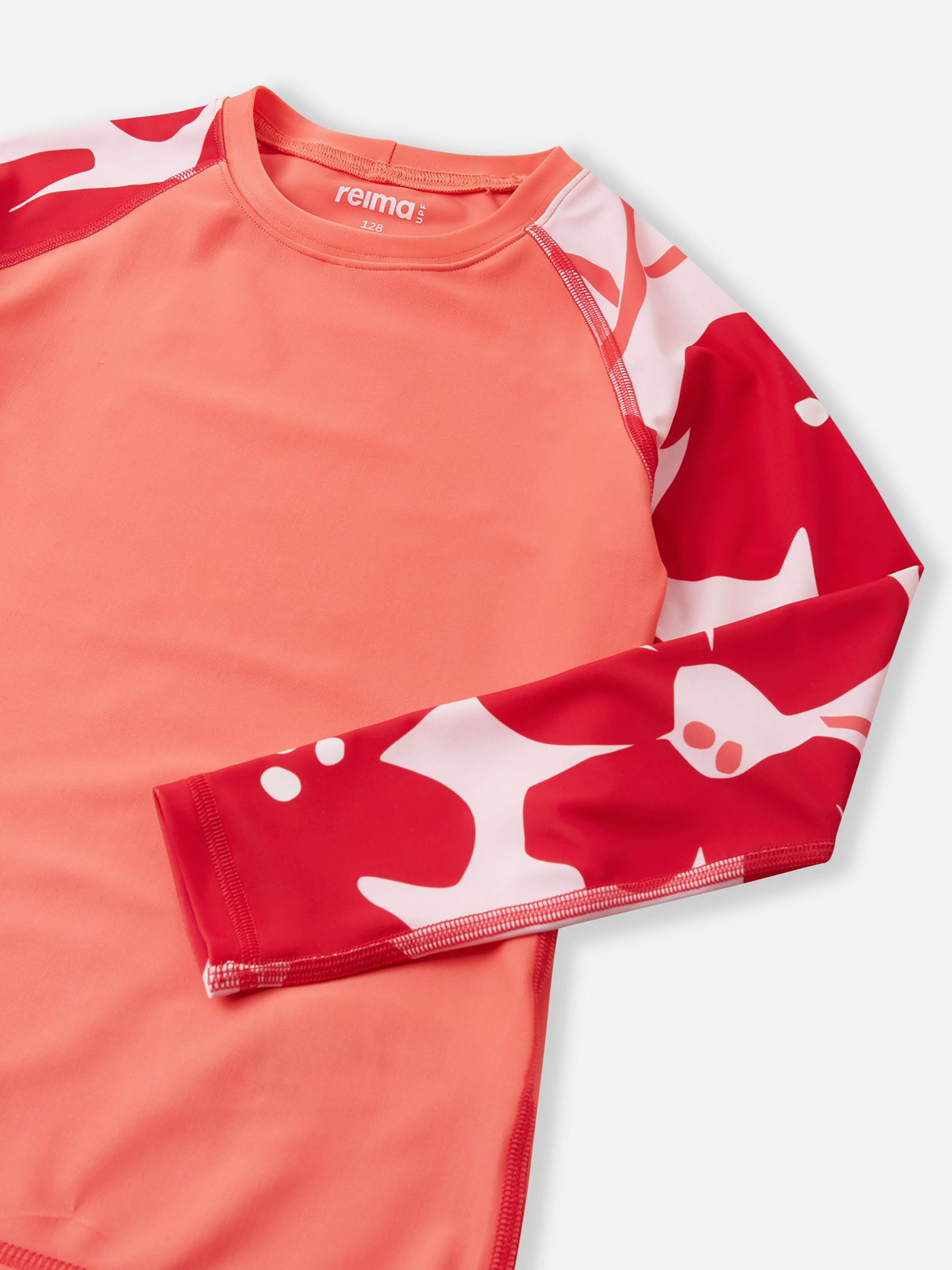 Лонгслів для плавання. Склад: 83% поліестер, 17% еластан Матеріал: SunProof jersey rec УФ захист 50+ Еластичний матеріал Відводить вологу від шкіри Швидковисихаючий матеріал Перероблений матеріал Містить перероблені волокна із сертифікатом якості|Reima SunProof|Фактор захисту від ультрафіолету 50+|Приталений крій|Додаткова підкладка для кращого захисту Догляд: Прати з білизною однакового кольору, вивернувши навиворіт. Прати у спеціальному мішку. Прати миючим засобом, що не містить відбілюючих речовин. Полоскати без спеціального засобу. Сушити у захищеному від сонця місці. Після застосування прополоскати чистою водою. Дитячий лонгслів для плавання Sukeltaja забезпечує захист та комфорт дітей під час тривалих ігор на свіжому повітрі. Еластичний, швидковисихаючий матеріал відмінно відводить зайву вологу від шкіри та забезпечує захист від ультрафіолету до фактору SPF 50+, дозволяючи отримувати більше задоволення на сонці. Спеціальний правильний крій та додаткова підкладка забезпечують найкращий захист, тому діти можуть вільно плавати та зручно рухатися. Ця футболка з довгим рукавом стане ідеальним компаньйоном для активного відпочинку на пляжі та басейні. Лонгслів захищає тільки шкіру, яку він покриває, тому використовуйте сонцезахисний лосьйон для захисту відкритих ділянок тіла.