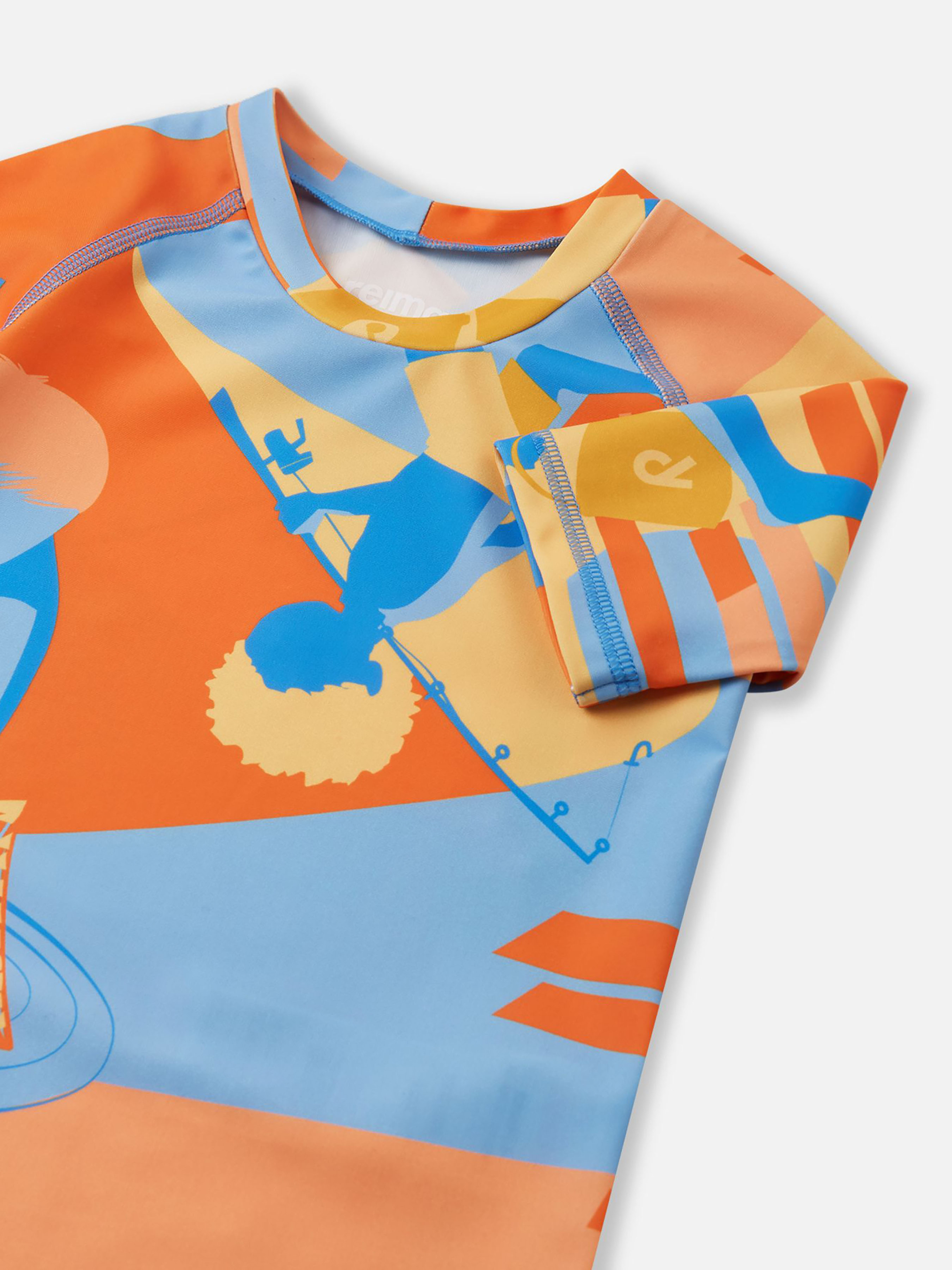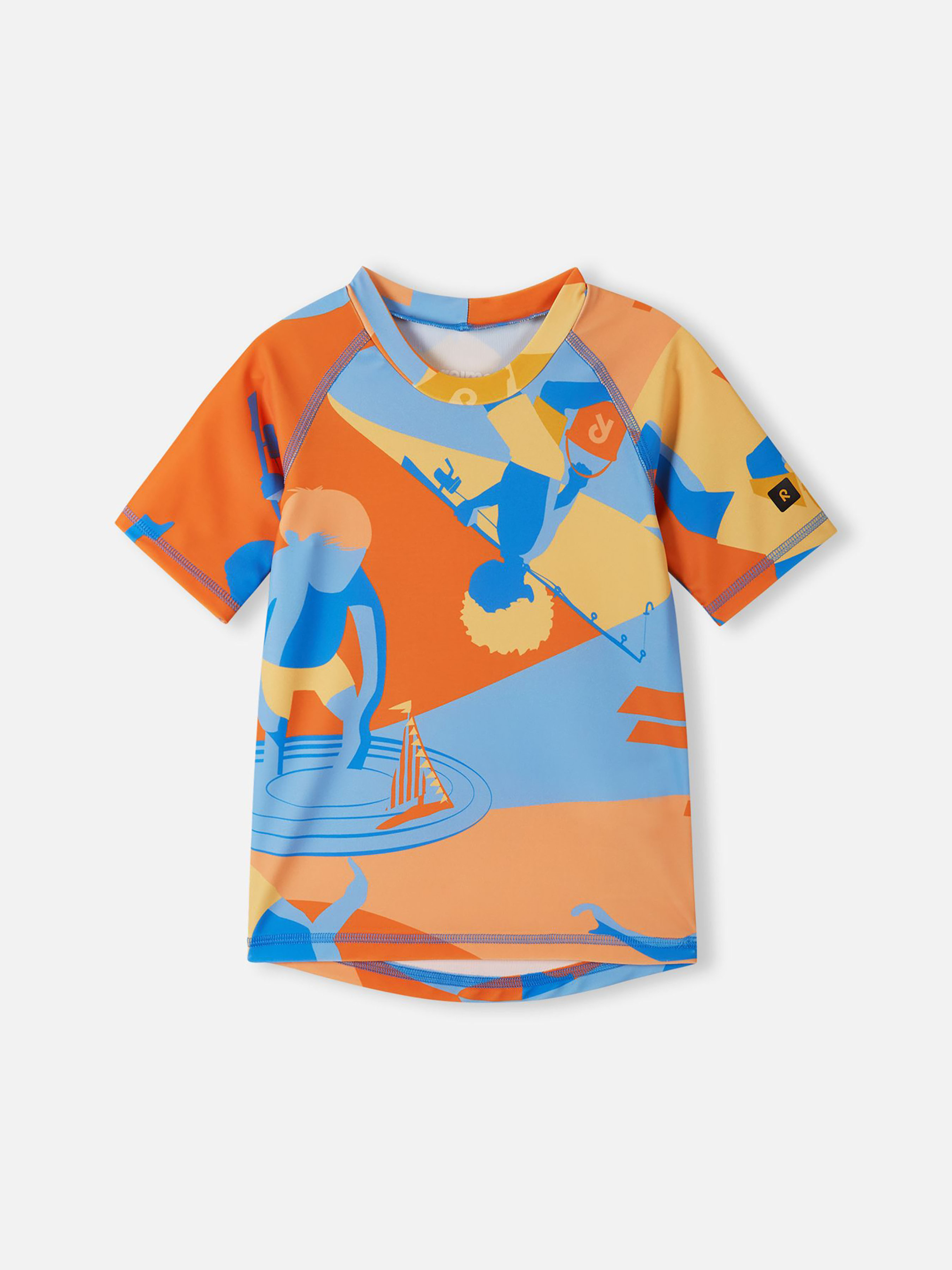 Футболка для плавання. Склад: 83% поліестер, 17% еластан Матеріал: SunProof jersey rec УФ захист 50+ Еластичний матеріал Відводить вологу від шкіри Швидковисихаючий матеріал Перероблений матеріал Містить перероблені волокна із сертифікатом якості|Футболка для плавання з рукавами до ліктя|Reima SunProof: фактор захисту від ультрафіолету 50+|Подовжений подол ззаду для додаткового захисту|Принт по всій поверхні Догляд: Прати з білизною однакового кольору, вивернувши навиворіт. Прати у спеціальному мішку. Прати миючим засобом, що не містить відбілюючих речовин. Полоскати без спеціального засобу. Сушити у захищеному від сонця місці. Після застосування прополоскати чистою водою. Футболка для плавання Pulikoi забезпечує комфорт та захист вашої дитини під час веселощів на сонці, у воді та на суші. Виготовлена з швидковисихаючого еластичного матеріалу, який відводить вологу від шкіри під час гри на суші, ця футболка для плавання захищає шкіру з фактором захисту від ультрафіолету SPF 50+. Рукави довжиною до ліктя та довший край спинки забезпечують додатковий захист та дозволяють довше грати на вулиці. Вашому малюку сподобається яскравий принт по всій поверхні, який додає стилю цій практичній літній речі. Не забувайте захищати неприкриті одягом ділянки шкіри сонцезахисним лосьйоном.