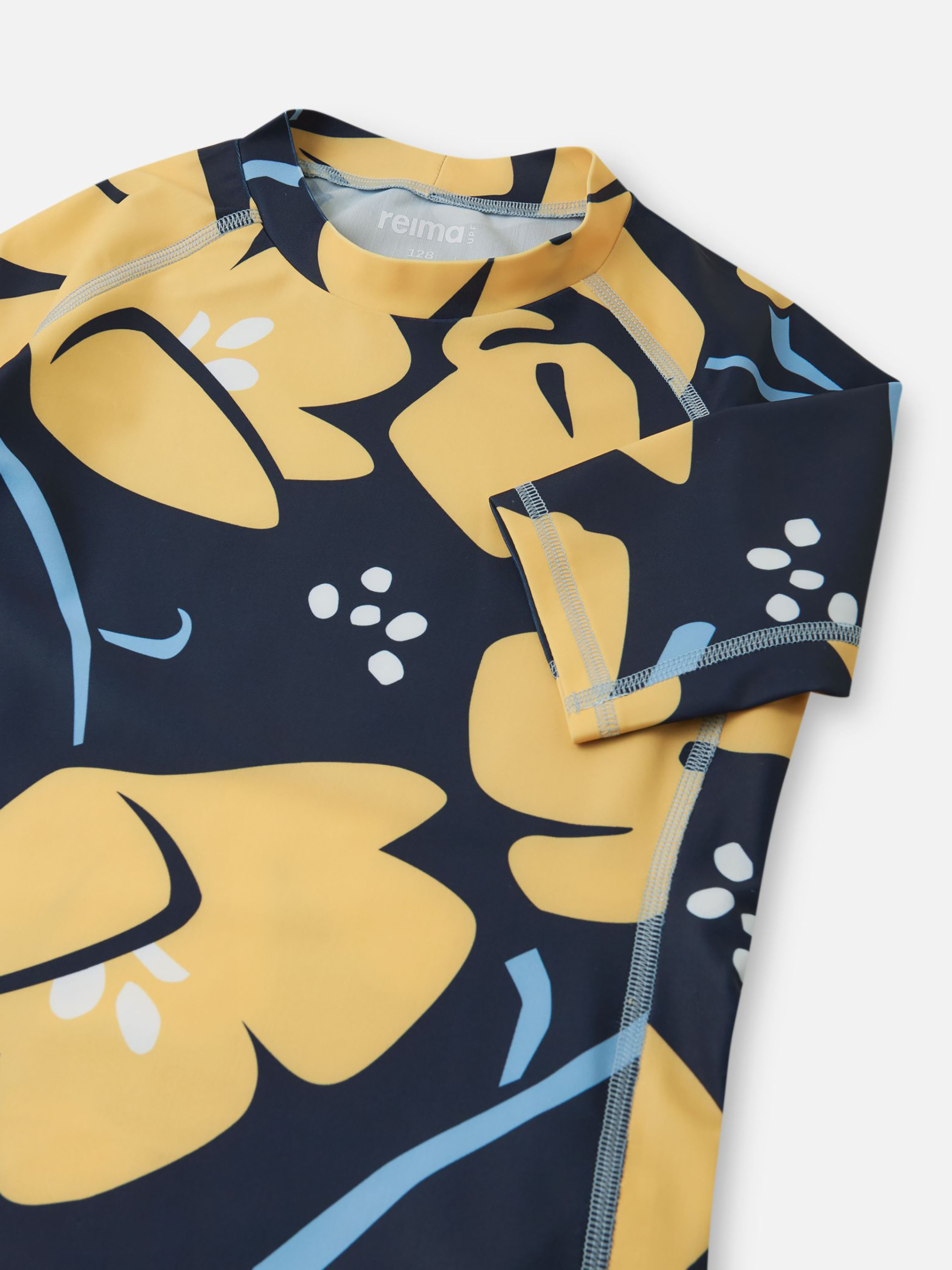 Футболка для плавання . Склад: 83% поліестер, 17% еластан Матеріал: SunProof jersey rec УФ захист 50+ Еластичний матеріал Відводить вологу від шкіри Швидковисихаючий матеріал Перероблений матеріал Містить перероблені волокна із сертифікатом якості|Reima SunProof: фактор захисту від ультрафіолету 50+|Плоскі шви забезпечують додатковий комфорт|Завужена модель|Додаткова підкладка для кращого захисту|Бокові вставки на рукавах та тілі для повної свободи рухів|Принт по всій поверхні Догляд: Прати з білизною однакового кольору, вивернувши навиворіт. Прати у спеціальному мішку. Прати миючим засобом, що не містить відбілюючих речовин. Полоскати без спеціального засобу. Сушити у захищеному від сонця місці. Після застосування прополоскати чистою водою. Дитяча футболка для плавання Joonia забезпечує комфорт та захист дітей під час активних ігор у воді. У сухому стані еластичний, швидковисихаючий матеріал відводить зайву вологу зі шкіри під час активностей. Він також забезпечує природний захист SPF 50+, тому діти можуть довше насолоджуватися сонцем. Ця футболка для плавання створена для свободи рухів та має додаткову підкладку спереду для зручності. Футболка Joonia ідеально підходить для купання в басейнах, озерах або океанах, дає дітям зручність та спокій батькам. Сонцезахисна футболка захищає лише шкіру під нею, тому не забудьте використовувати на відкритих ділянках шкіри лосьйон.