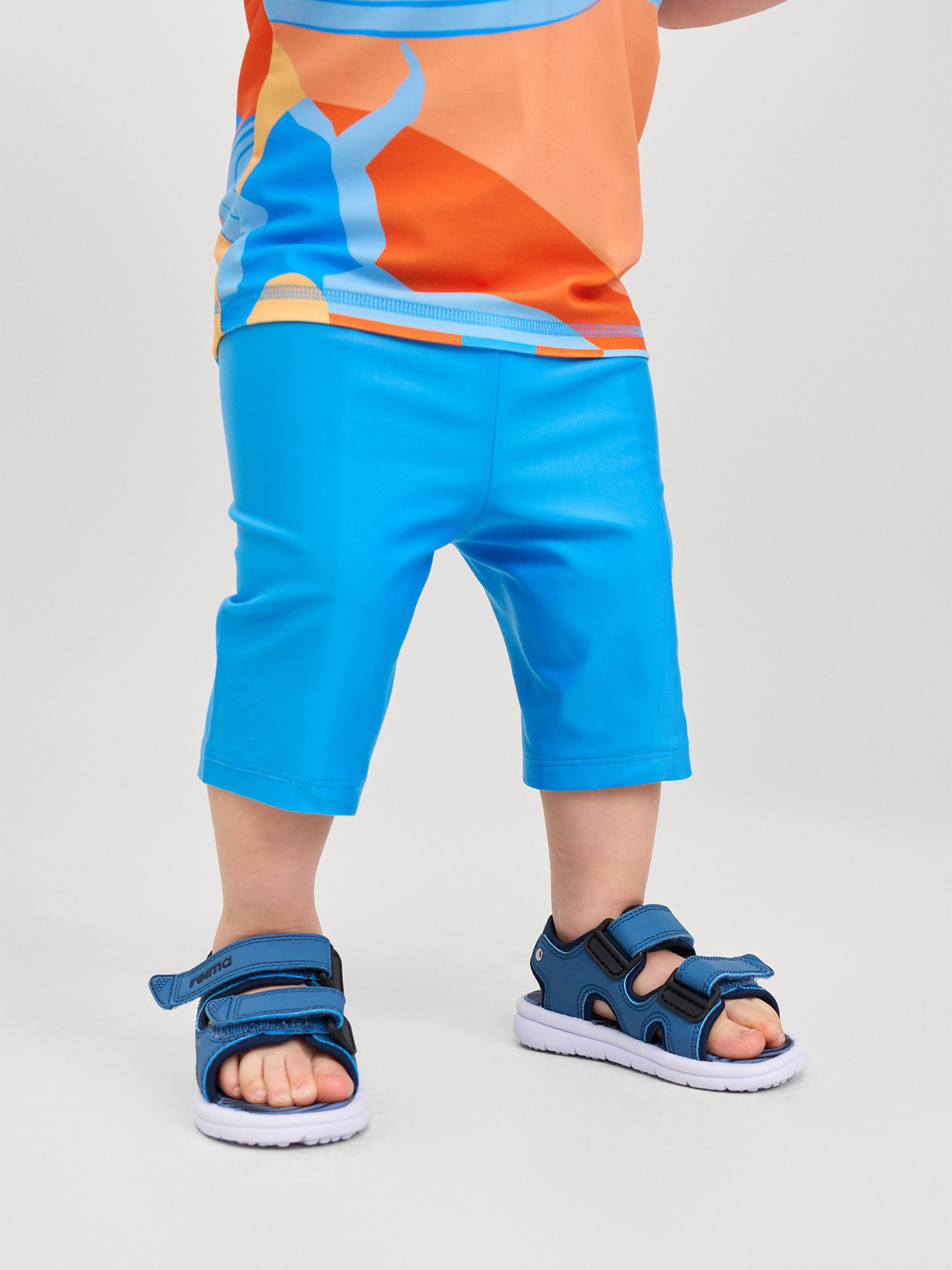 Склад: 83% поліестер, 17% еластан Повітропровідність: >7000 Повітропровідність основного матеріалу: >7000 Матеріал: SunProof jersey rec УФ захист 50+ Еластичний матеріал Відводить вологу від шкіри Швидковисихаючий матеріал Перероблений матеріал Містить перероблені волокна із сертифікатом якості|Reima SunProof: фактор захисту від ультрафіолету 50+|Шорти для плавання до коліна|Еластична підкладка спереду|Регульований пояс зі шнурком Догляд: Прати з білизною однакового кольору, вивернувши навиворіт. Прати у спеціальному мішку. Прати миючим засобом, що не містить відбілюючих речовин. Полоскати без спеціального засобу. Сушити у захищеному від сонця місці. Після застосування прополоскати чистою водою. У цих плавках малюкам буде зручно як у воді, так і на березі. Еластичний матеріал та шнурок на талії забезпечують ідеальну посадку, а фактор захисту від ультрафіолету SPF 50+ дозволяє годинами веселитися на сонці. Тканина відводить вологу зі шкіри, зберігаючи дітей сухими під час ігор на сухій землі. Ці універсальні плавки довжиною до коліна перетворюють басейн та пляж на ігровий майданчик. Не забувайте наносити сонцезахисний лосьйон на ділянки неприкритої тканою шкіри.