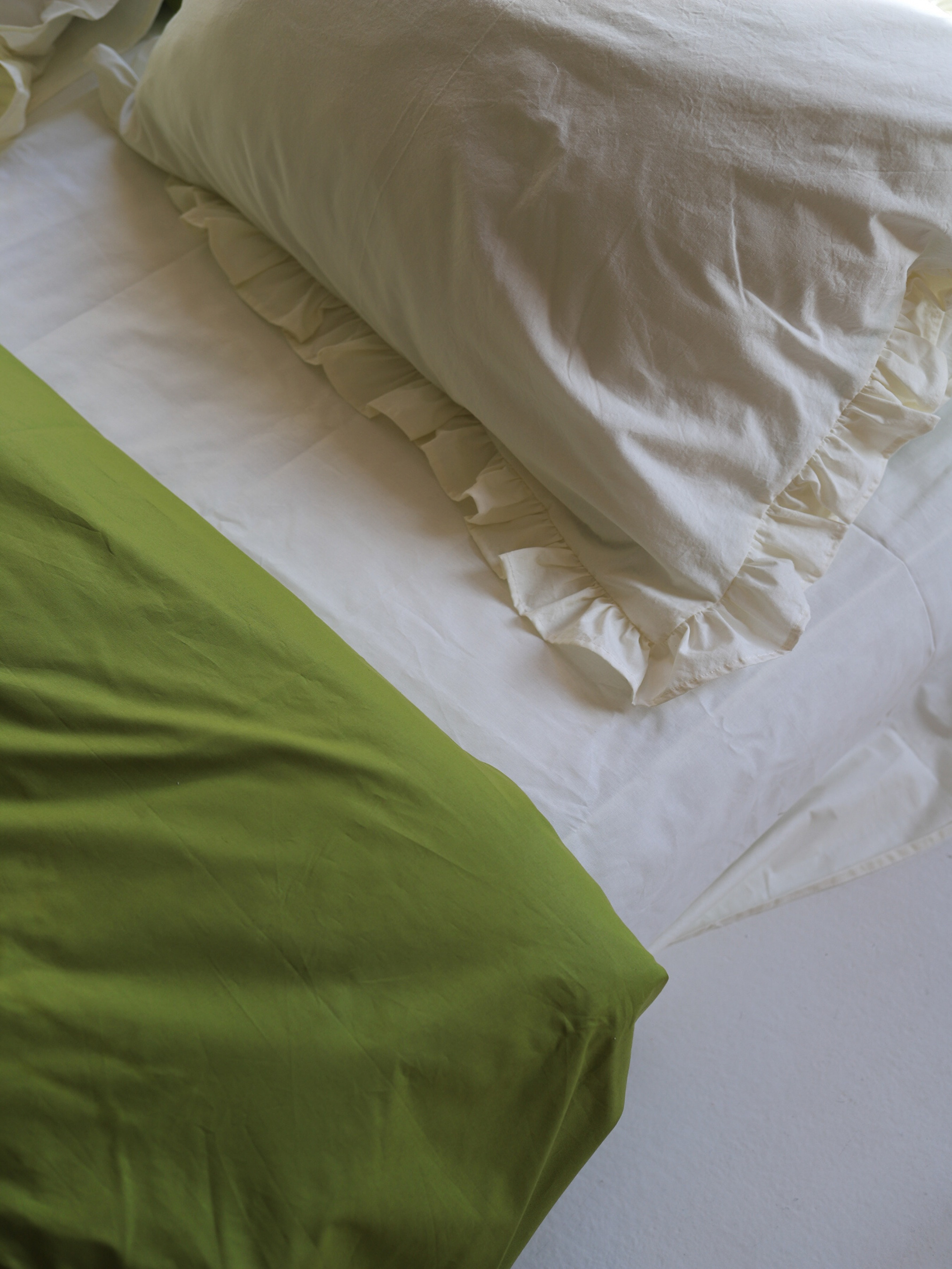 Комплект постільної білизни з тканини ранфорс молочний+матча з рюшами BedclozZzes модель 16355