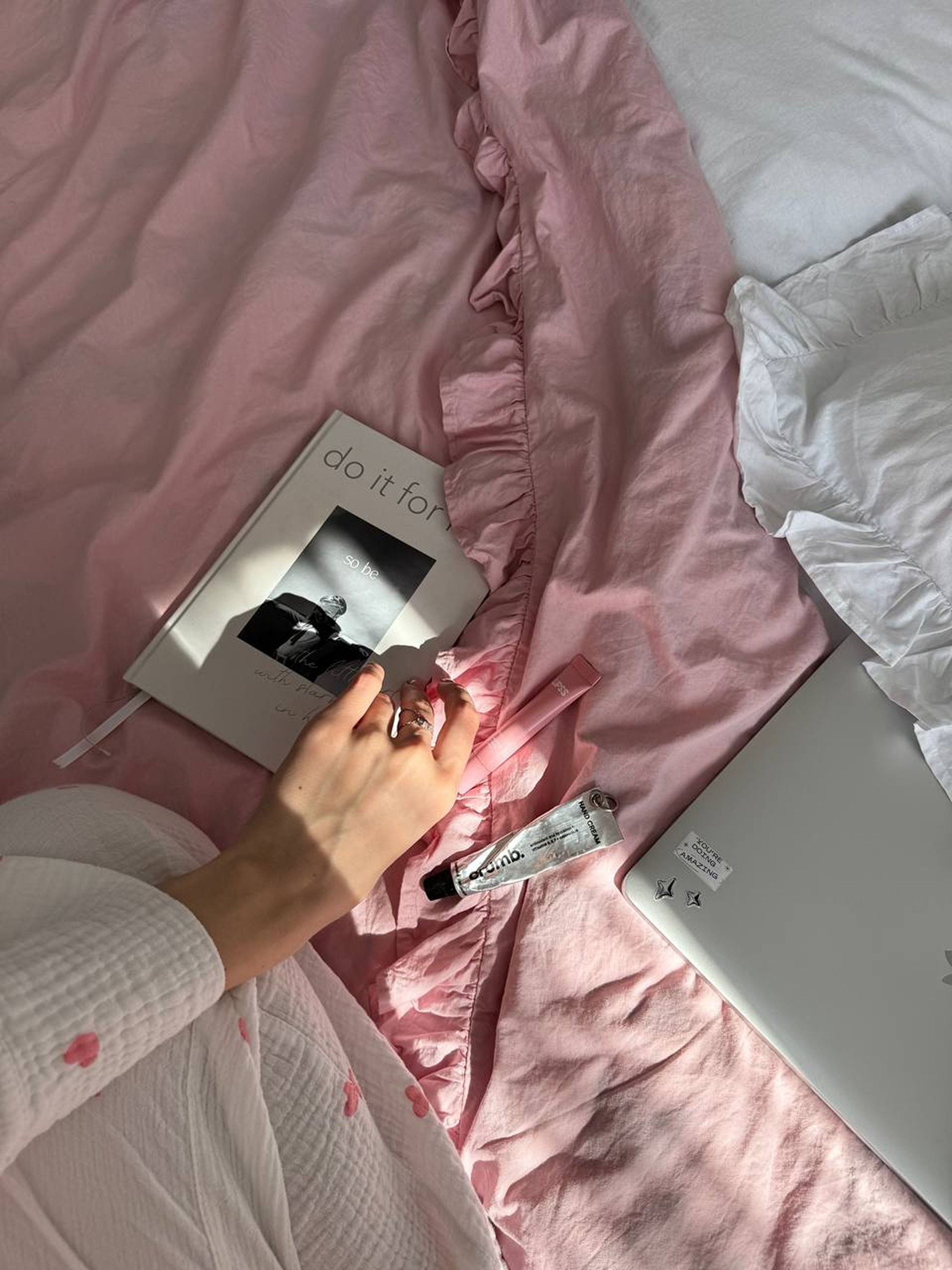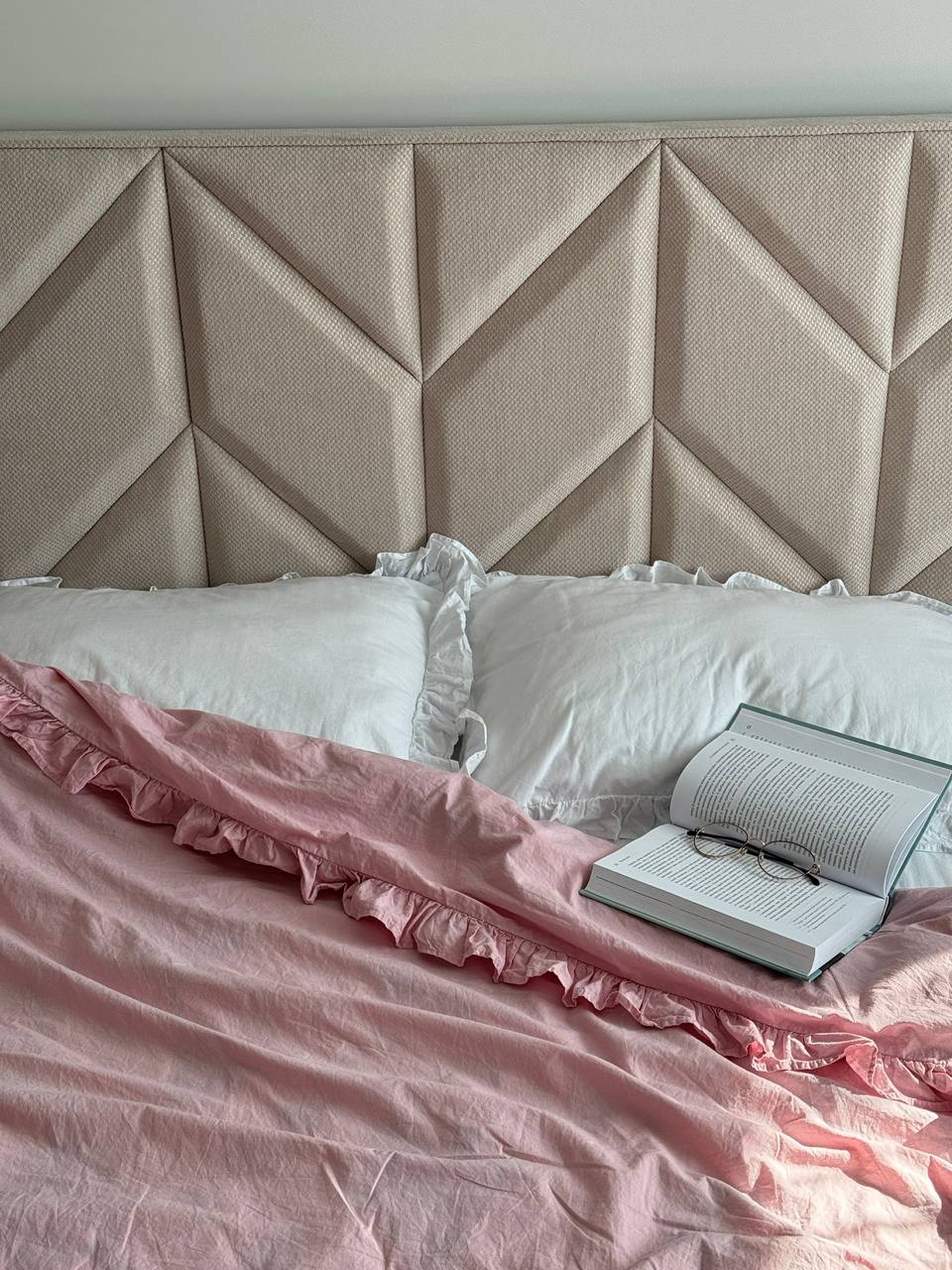 BedclozZzesКомплект постільної білизни з тканини ранфорс білий+розовий з рюшами