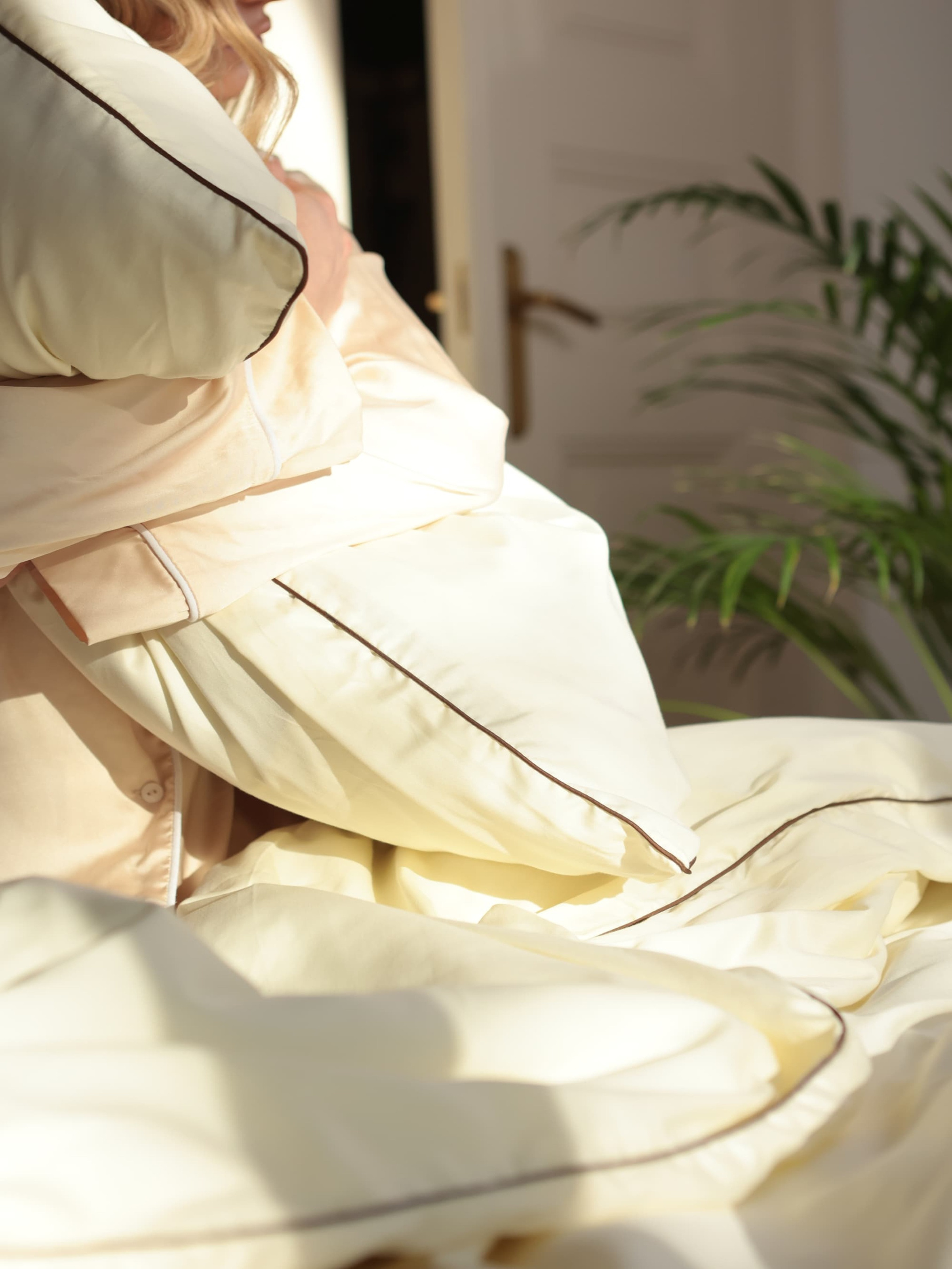 BedclozZzesКомплект постільної білизни з тканини сатин молочний з шоколадним кантом