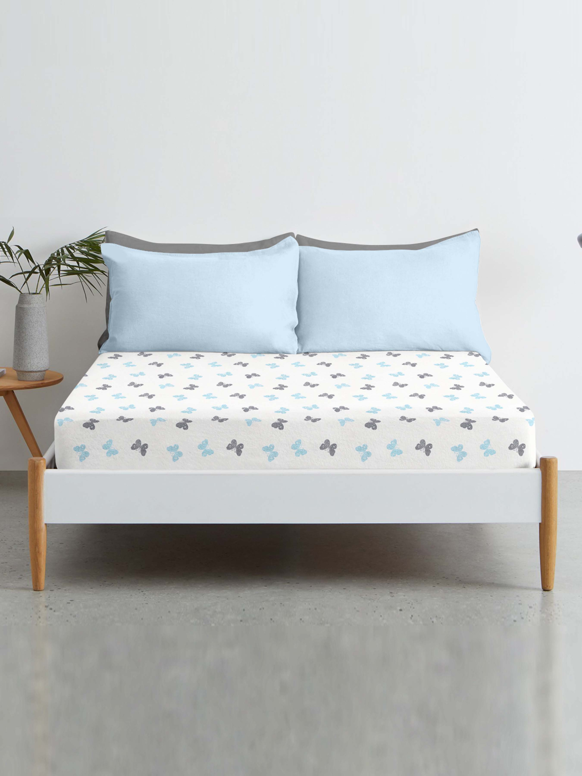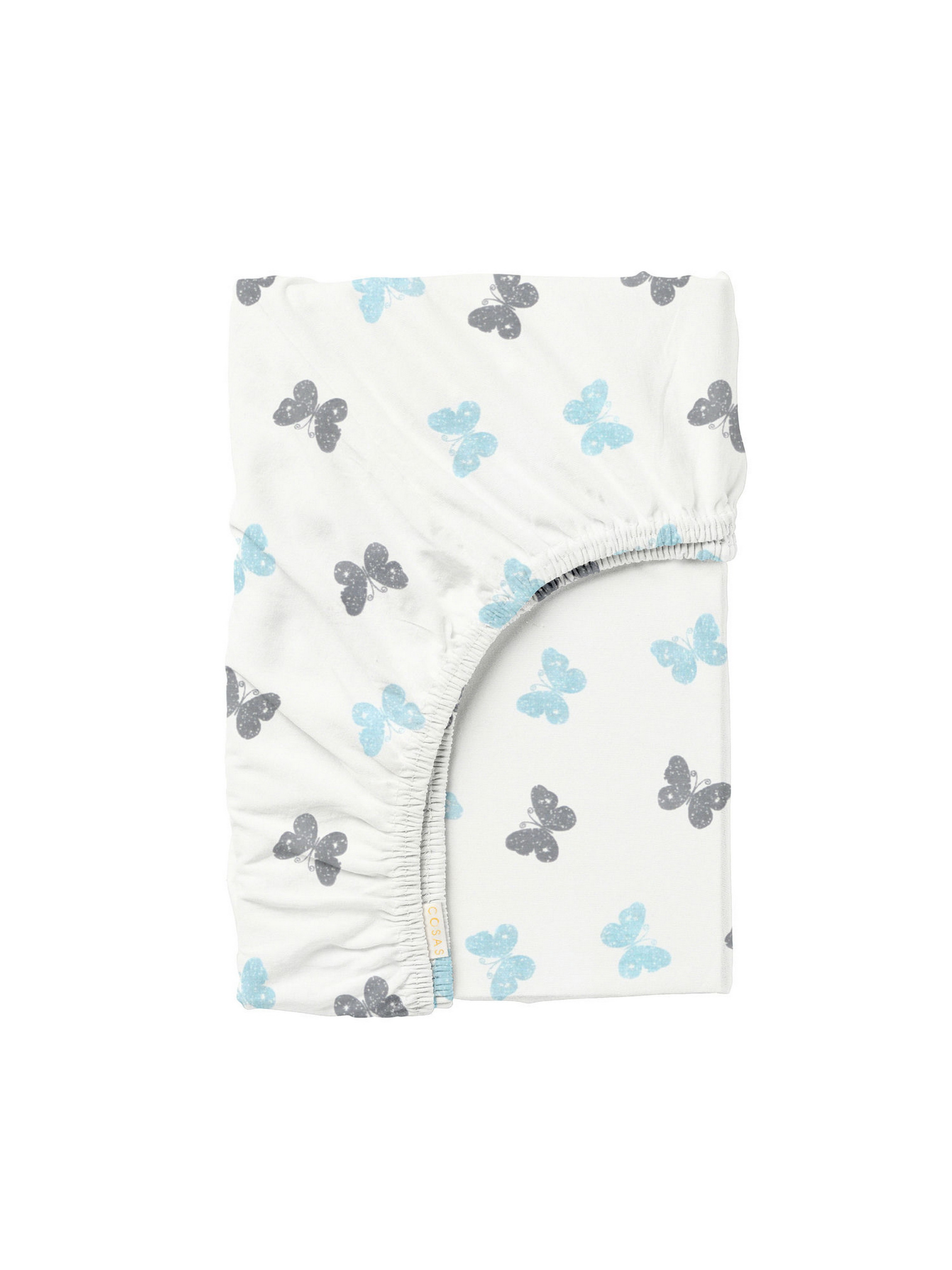 Простирадло на резинці ранфорс BUTTERFLY Cosas модель ButterfliesGrayLBlue_120