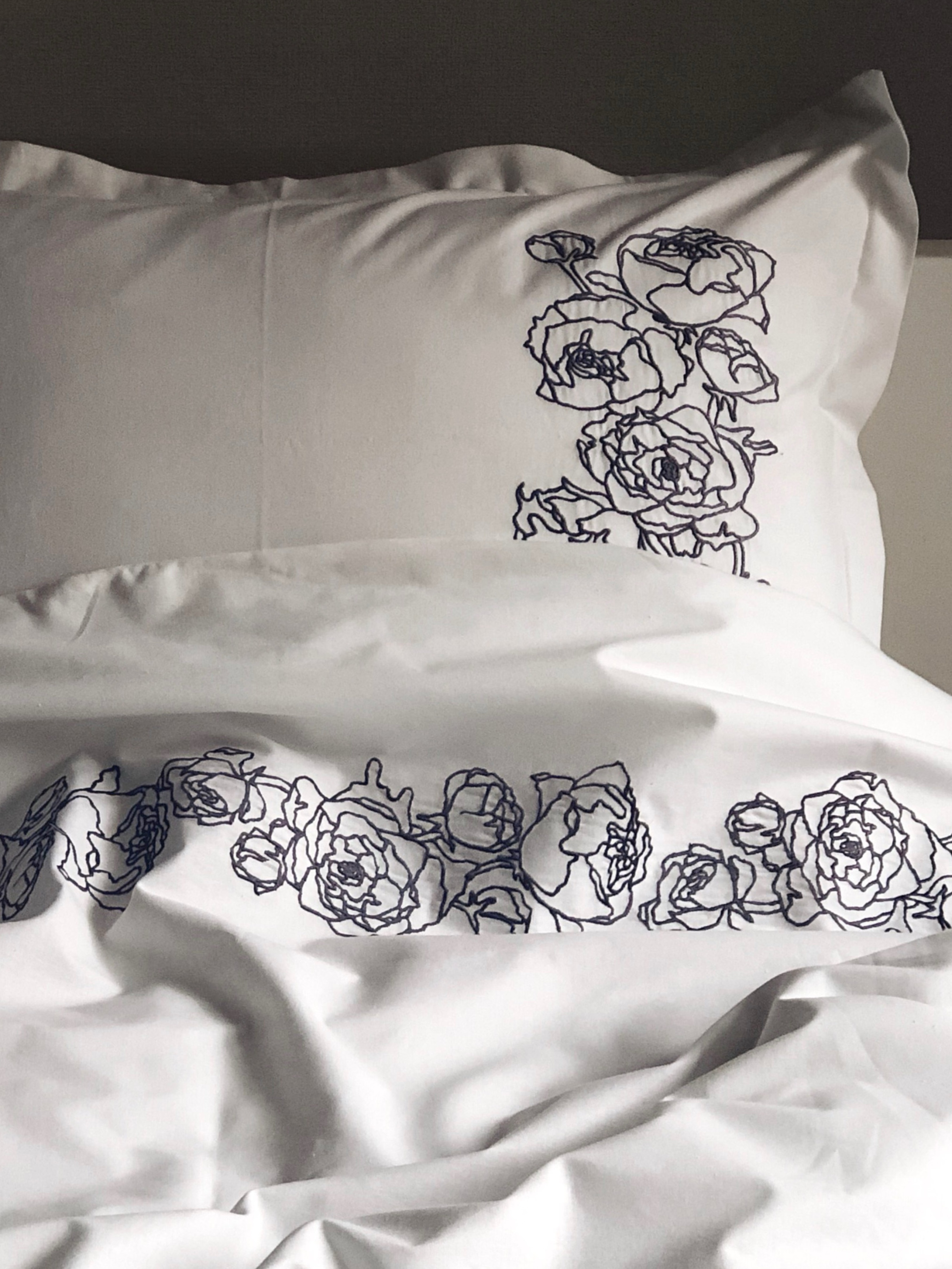 Наволочка біла з вишитими сірими півоніями Cozy модель 8008573