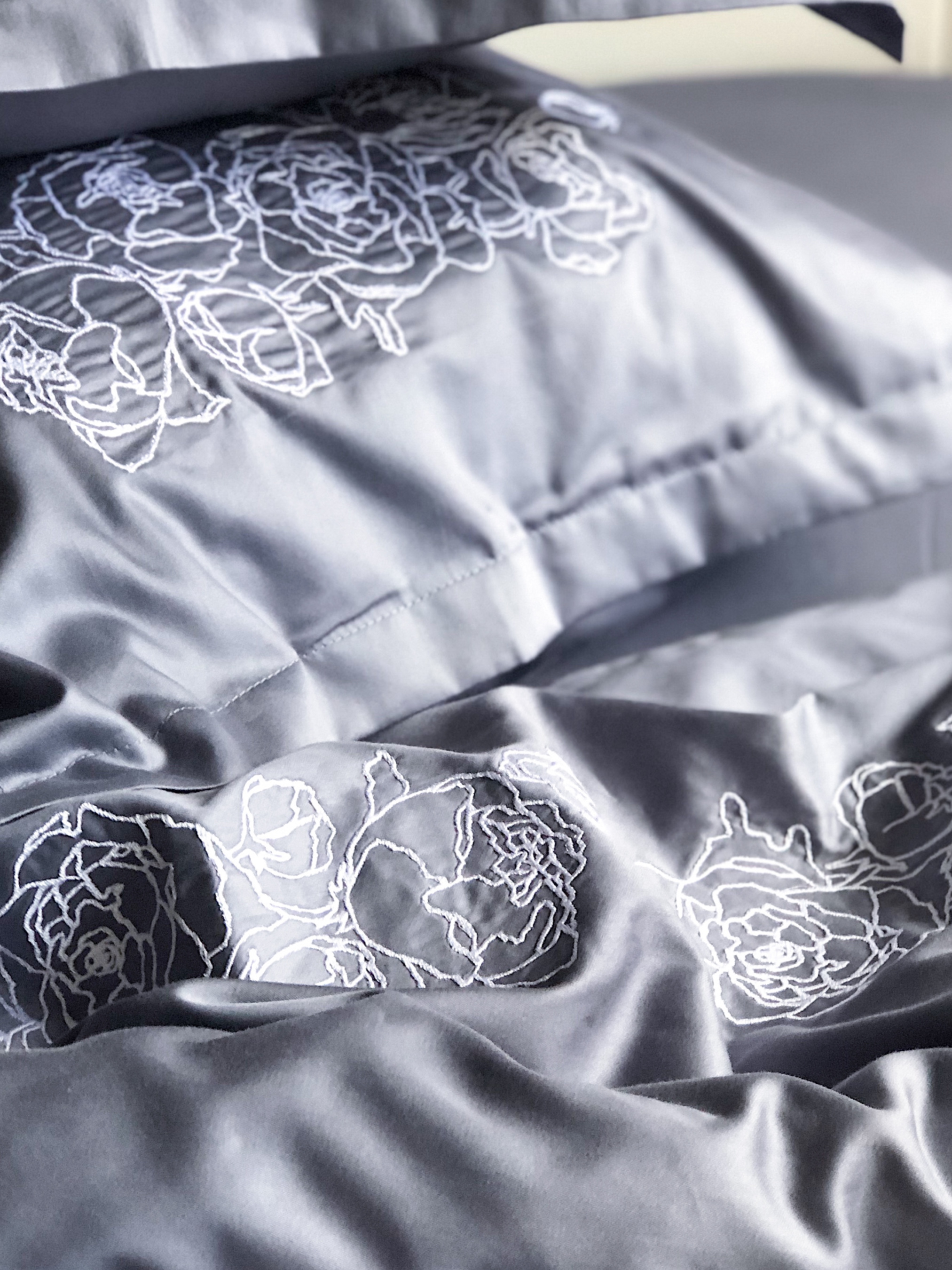 Наволочка темно-сіра з вишитими білими півоніями Cozy модель 8008493