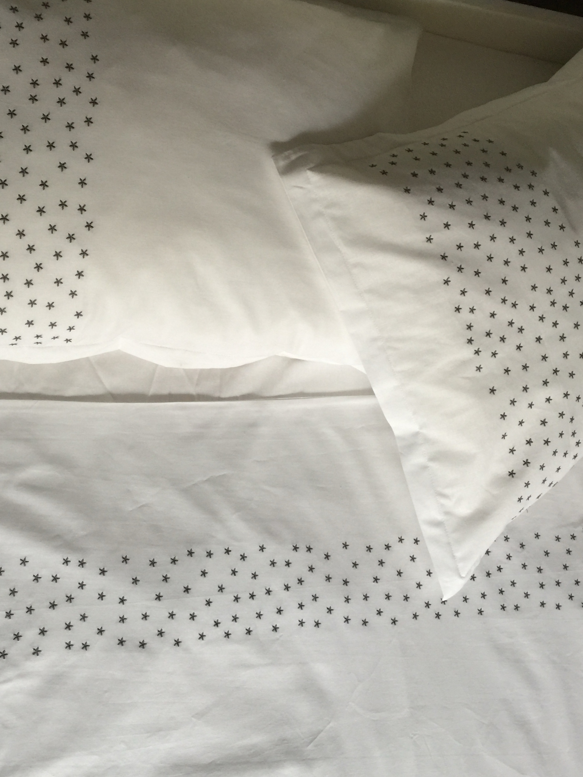 Наволочка з вишитими зірками виготовлена зі 100% бавовни, щільність (130г/мкв), плетіння сатин з мерсеризацією, застібка - на запах. Рекомендації по догляду: - Перед першим використанням обов'язково виперіть постіль. Вона пройшла тривалий шлях від виробництва тканини на фабриці, пошиву виробу до його пакування і відправлення. - Уникайте завантаження пральної машини постільною білизною разом із іншими речами, особливо з різним складом тканини та кольорами. - Рекомендуємо використовувати режим “бавовна”, з температурою 30 градусів та швидкістю віджиму 400-600 об/хв. Такий режим віджиму дозволить постільній білизні досихати в більш рівному положенні, щоб вона виглядала свіжо прасованою. - Змінюйте постіль раз на 7-10 днів в холодну пору року та 1 раз в 5-7 днів у теплу.