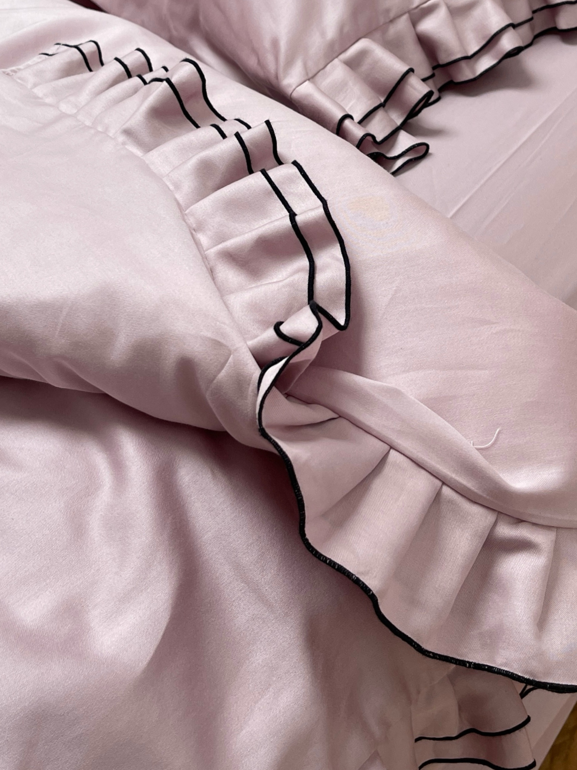 Підковдра з рюшами рожева з чорним кантом Cozy модель 11504560